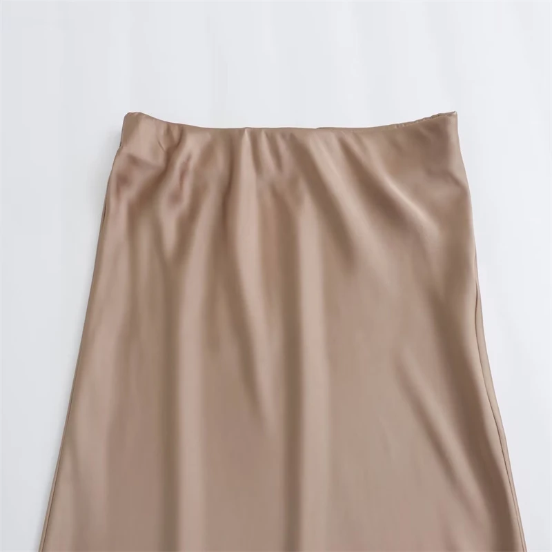 Women 2025 New Fashion Solid Sweet Breathable Satin A-line High-waisted Midi Skirt