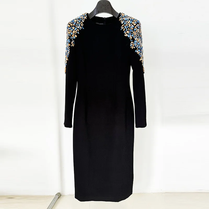 ZYHT 73902 Dark Green Blue Long Sleeve Simple Elegant Evening Dress Customize High End Women Clothing Manufacturer