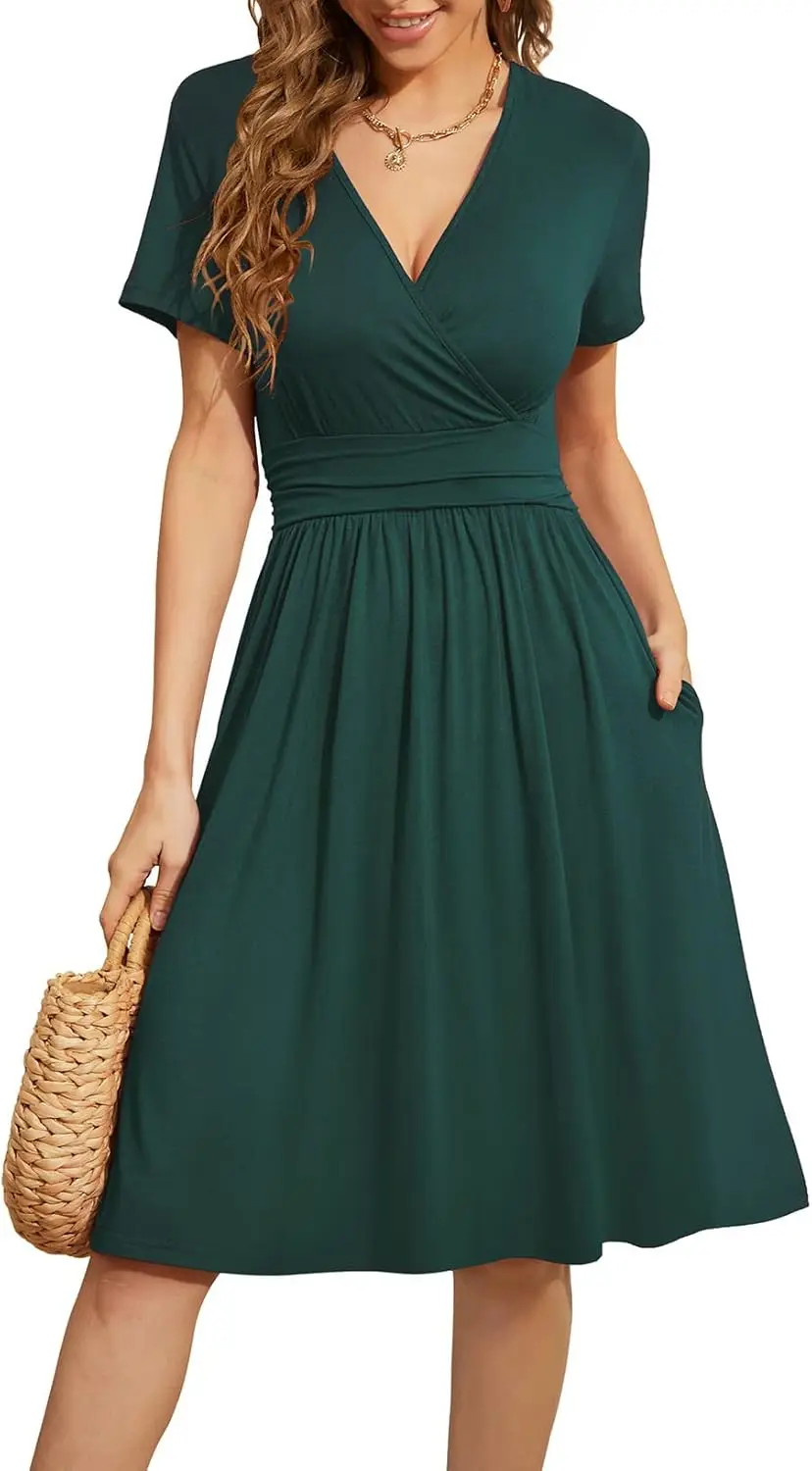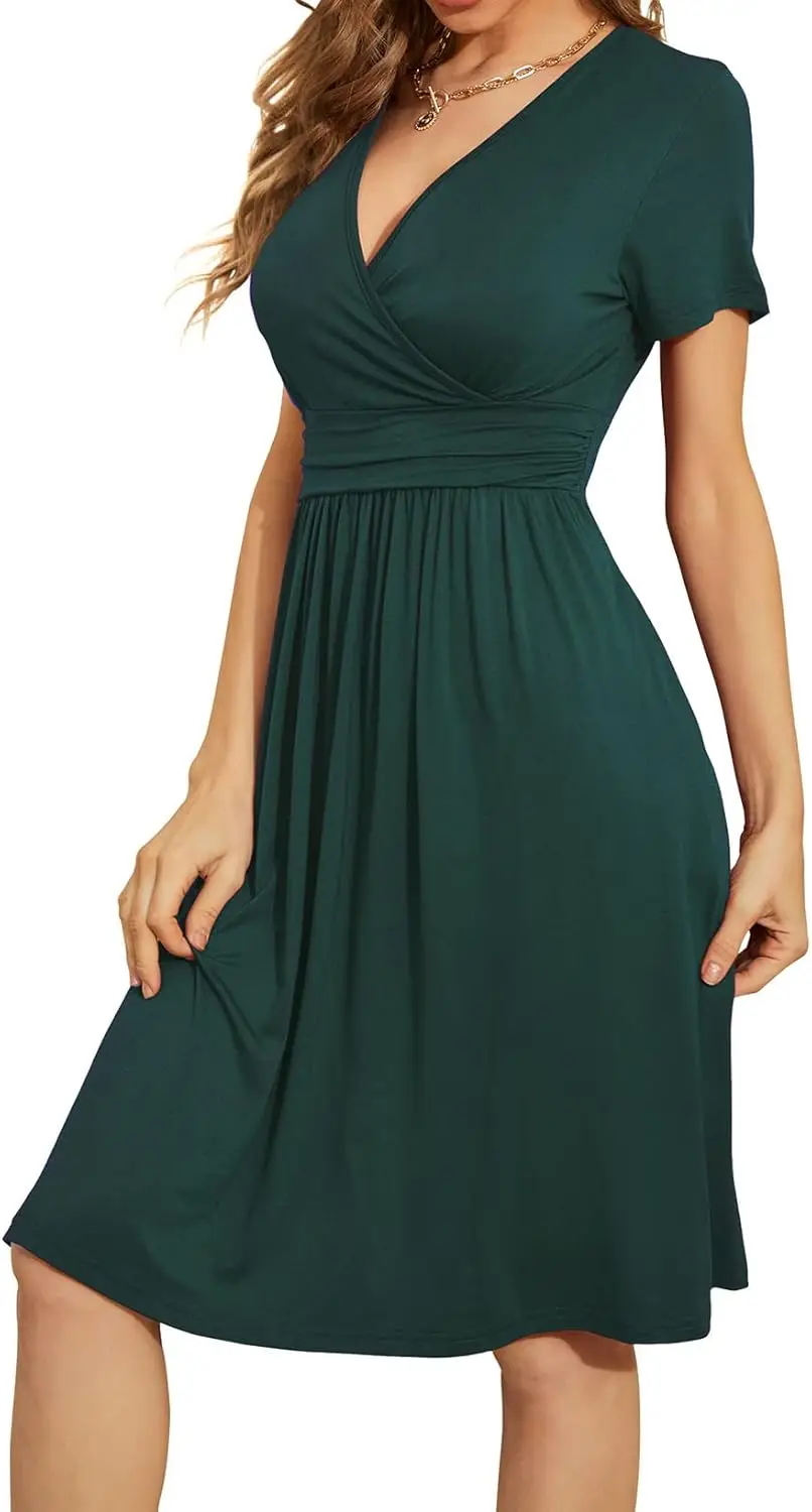 2025 New Women's Floral V-Neck Dress Summer Short Sleeve Casual Sundress Woven Digital Printed for Beach Party Cocktail Events