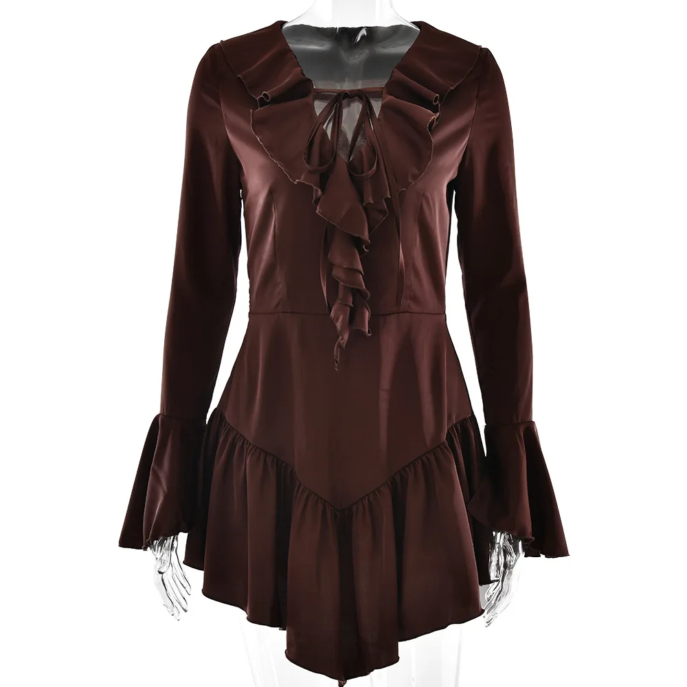 Hot-selling Spring Satin Streetwear High Waist Stitching Ruffled Slim-fit Short Skirt Fashion Sexy V-neck Strappy Women's Dress