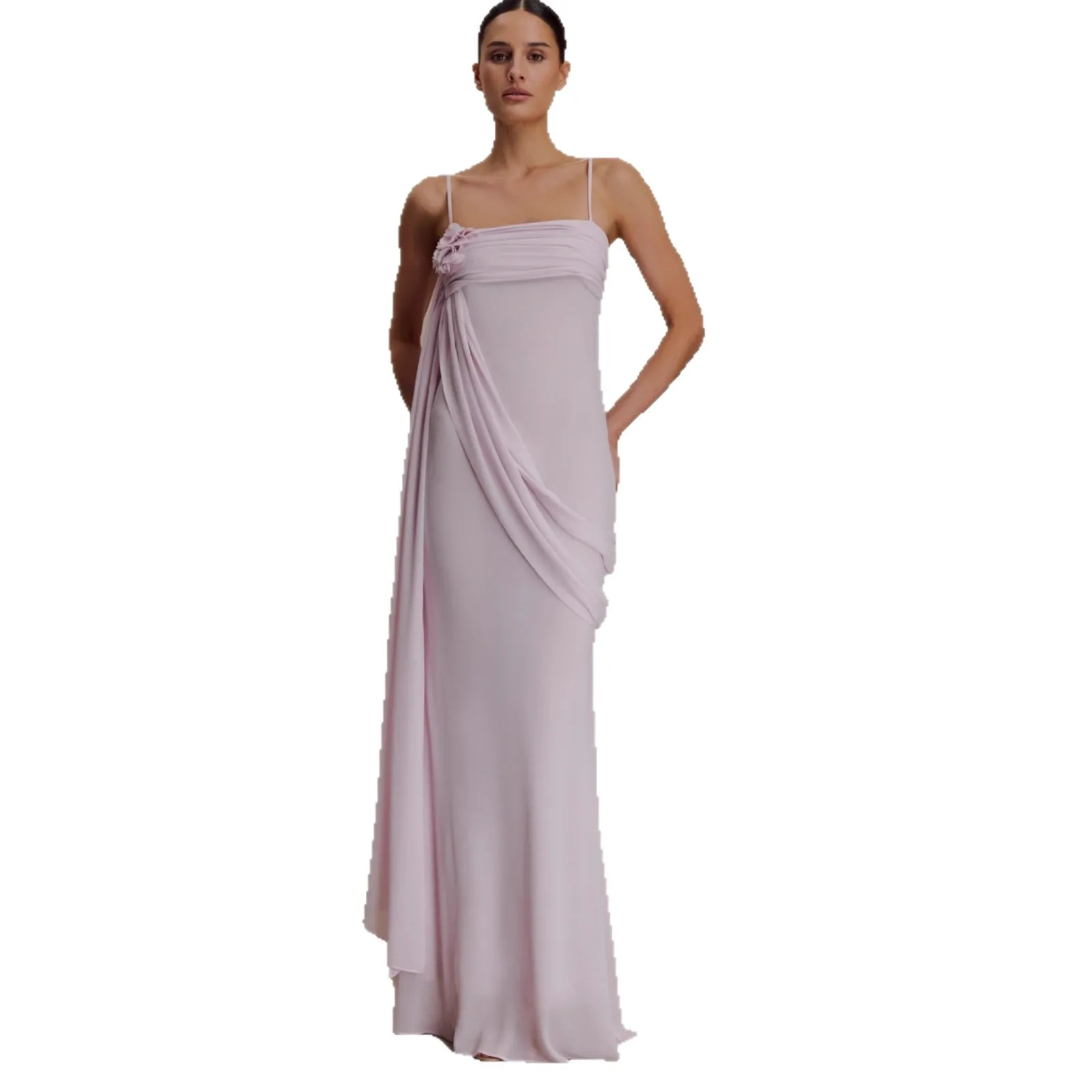 ZYHT 73849 European Wholesale Fashion Casual One Shoulder Ruched Maxi Dress Side Slit Pleated Long Sleeve Dresses for Women