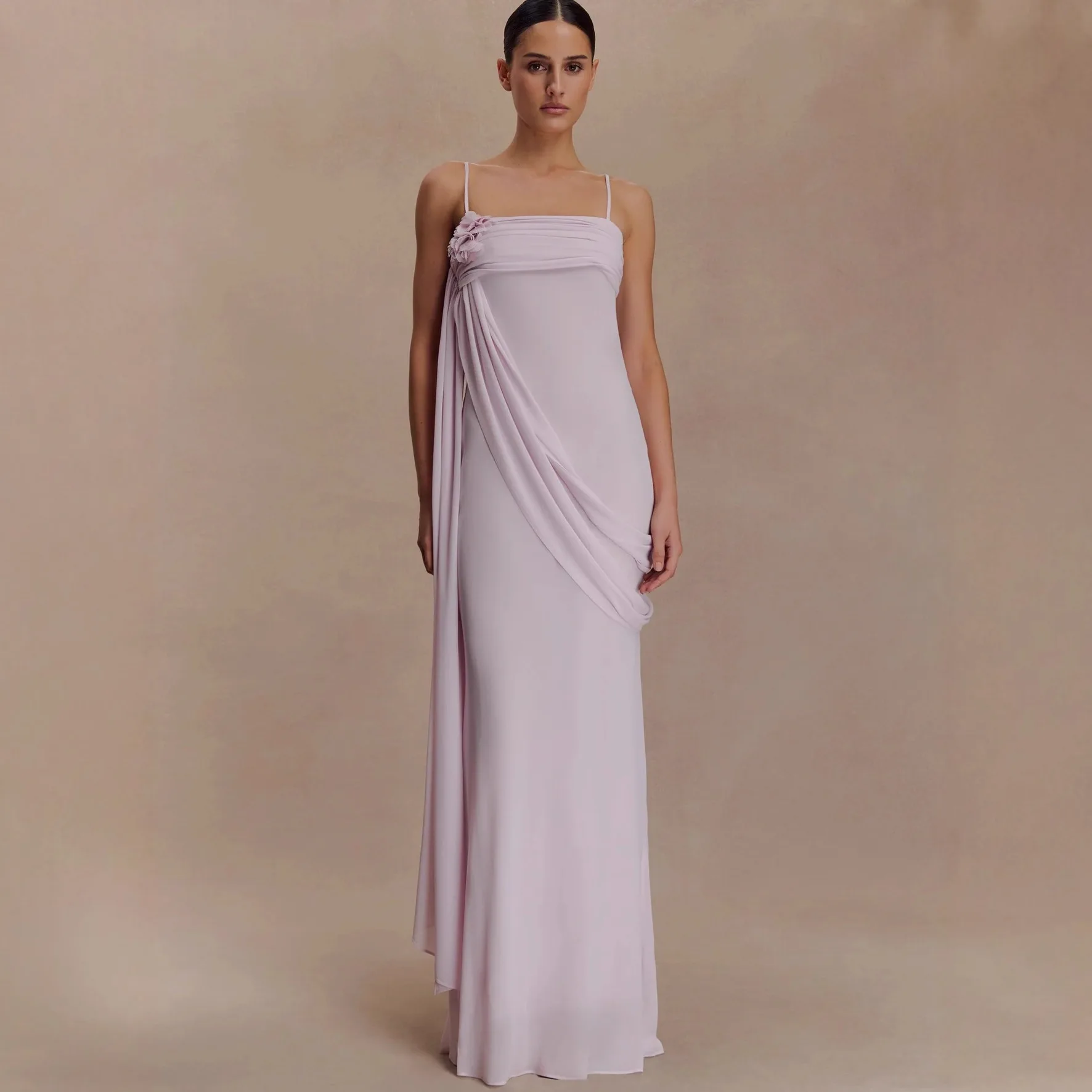 ZYHT 73957 Hot Selling Women Lady Printed Satin Beige Mermaid Fish Tail Floor Length Party Cocktail Evening Dress Gown