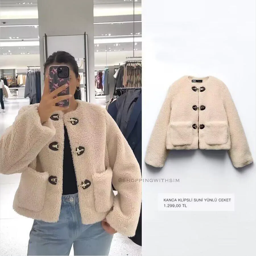 Spring Women's Vintage Casual Short Woven Single Breasted Buckle Fleece Poncho