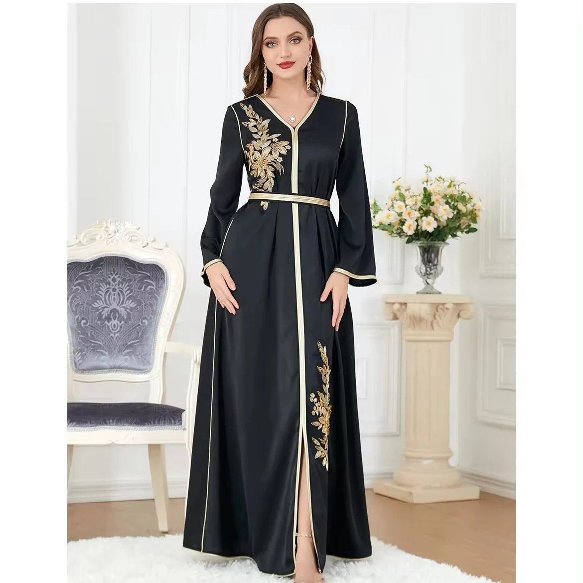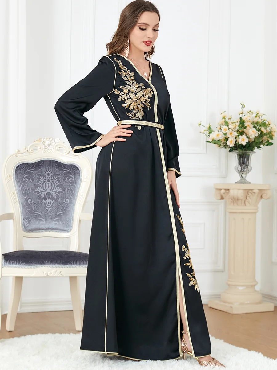 Wholesale Split Women Embroidery Dubai Maxi Abaya Long Women Muslim Dress Casual Dress Kaftan Dresses