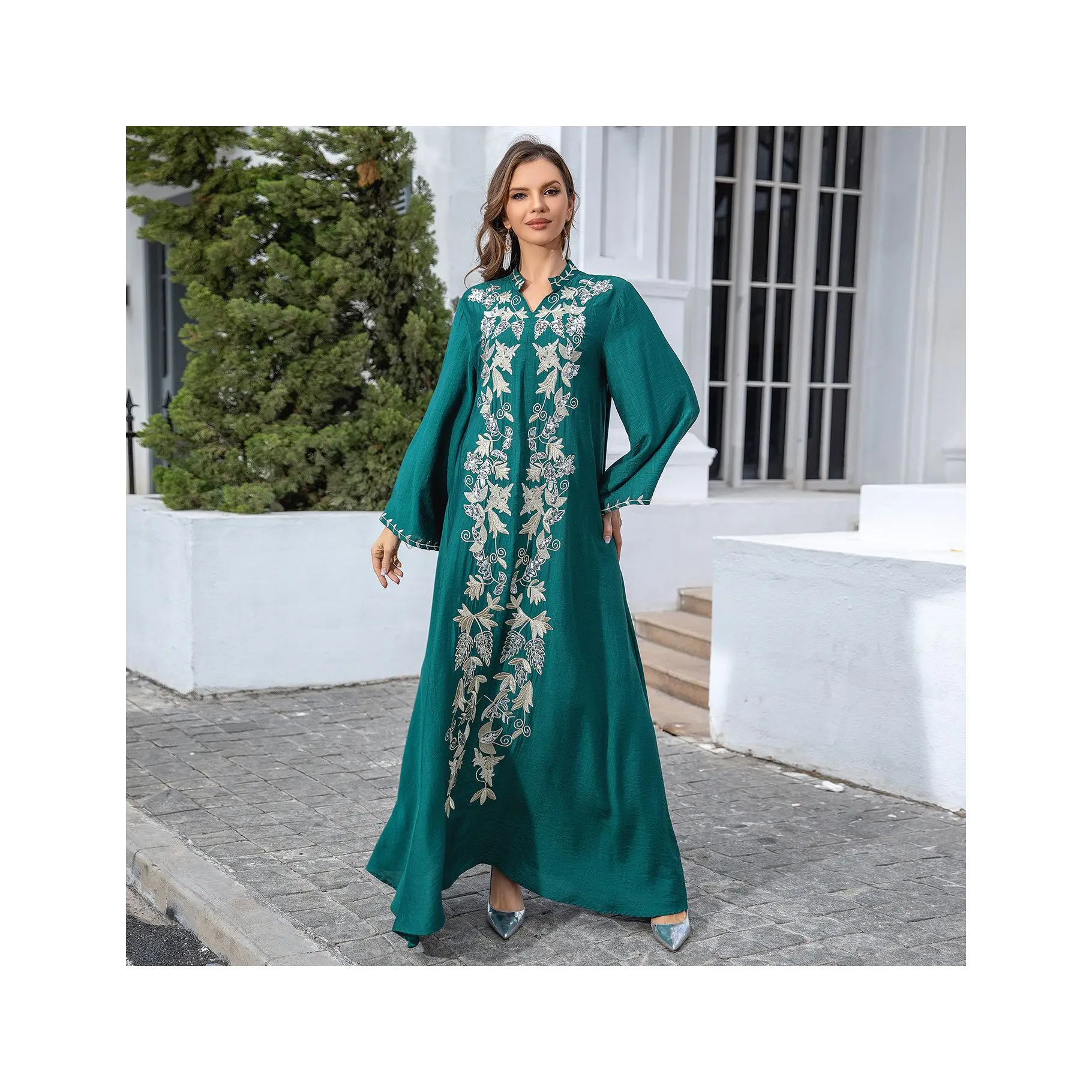 Embroidered Abaya Women Muslim Dress Robe Ethnic Clothing Plus Size Kaftan Dresses