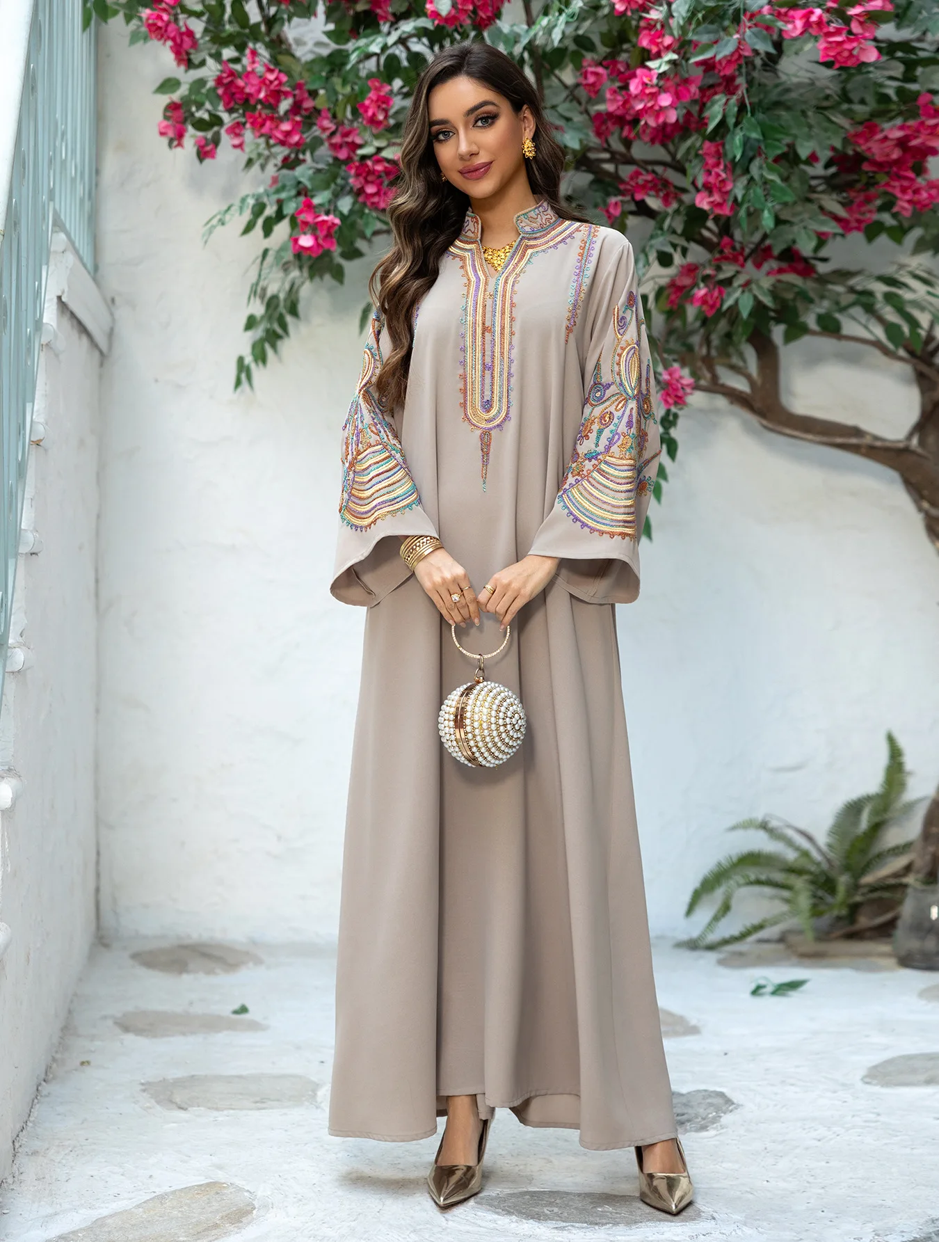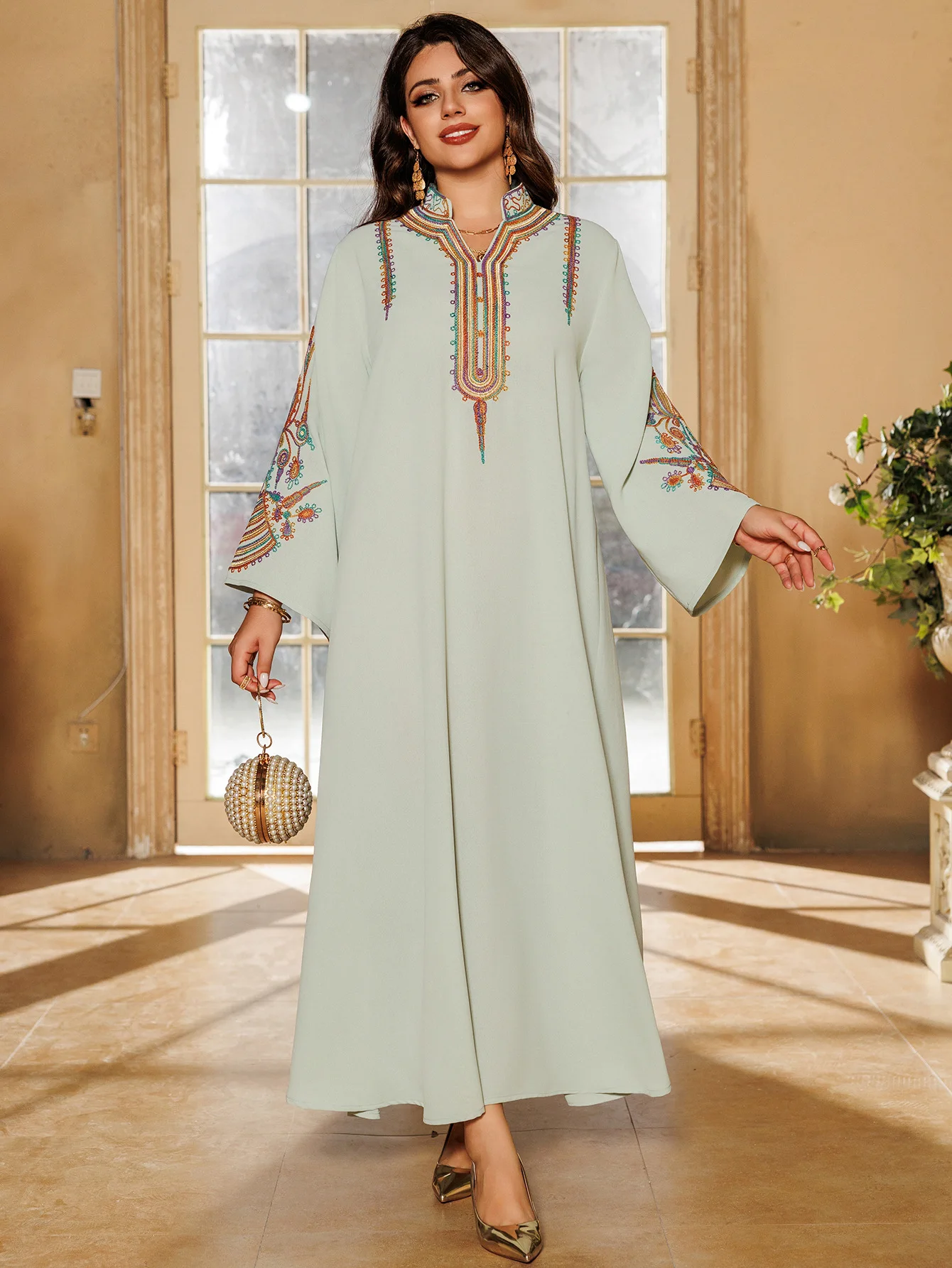 Wholesale Abaya 2025 Embroidered Traditional Muslim Clothing Stand Collar Women's Kaftan for Women