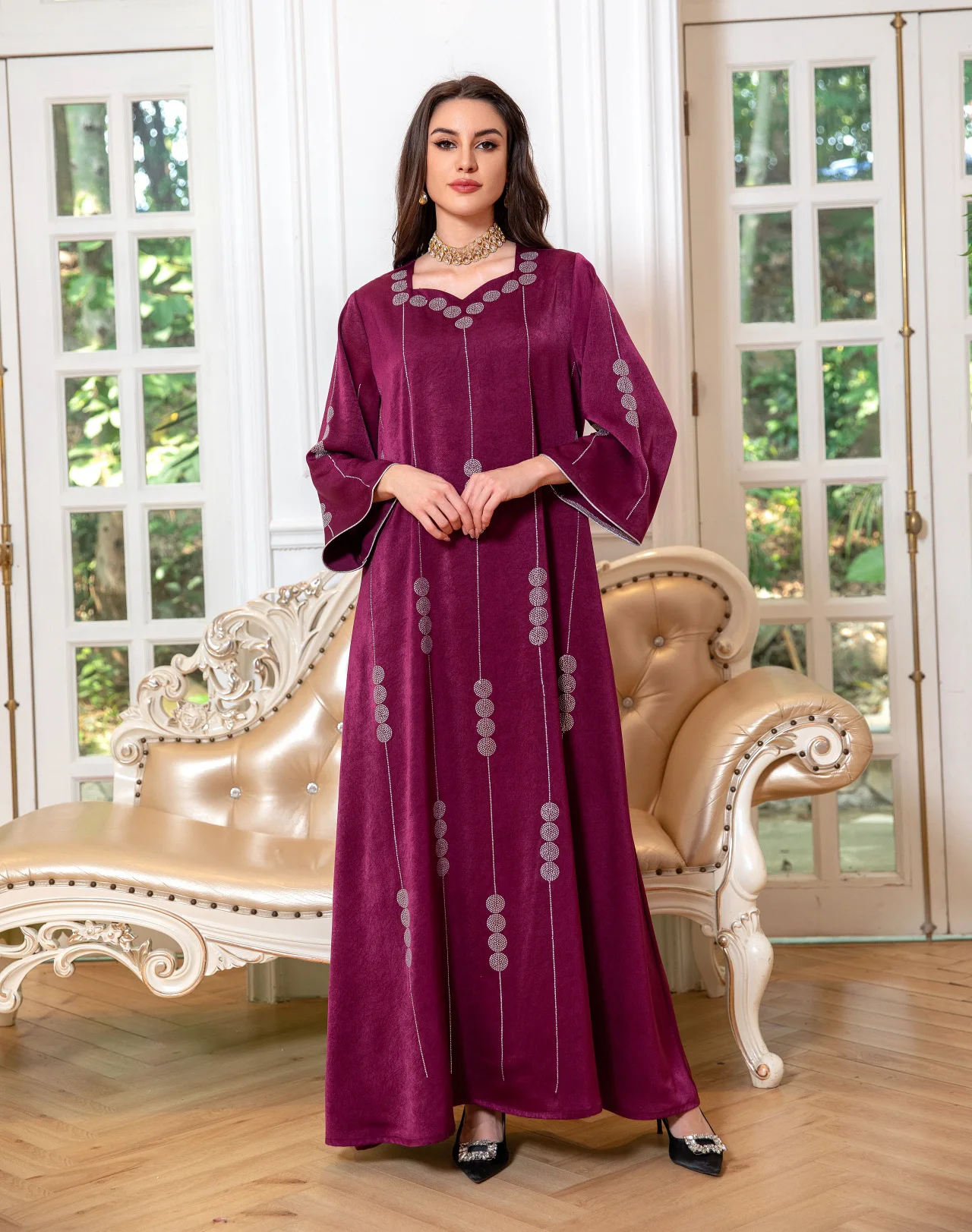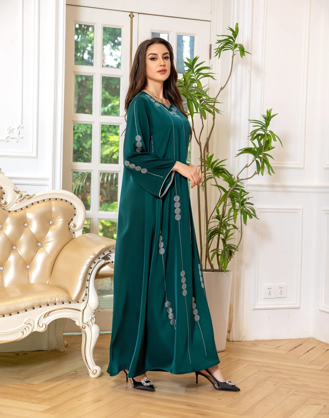 Solid Color Satin Robe Pressed Diamond Fashion Women Kaftan Dresses Dubai Stylish Elegant Muslim Abaya for Women