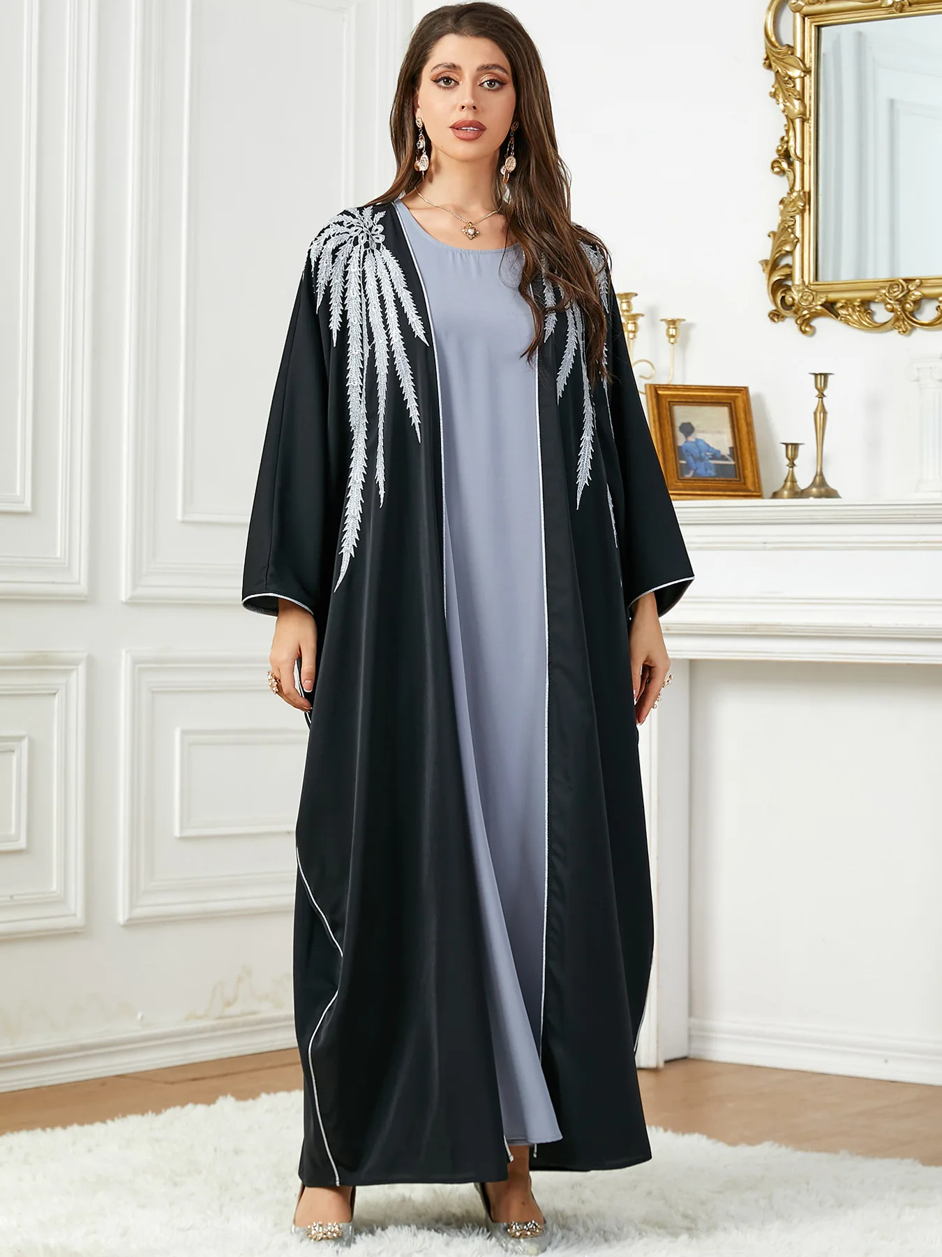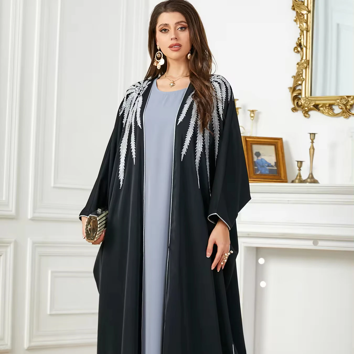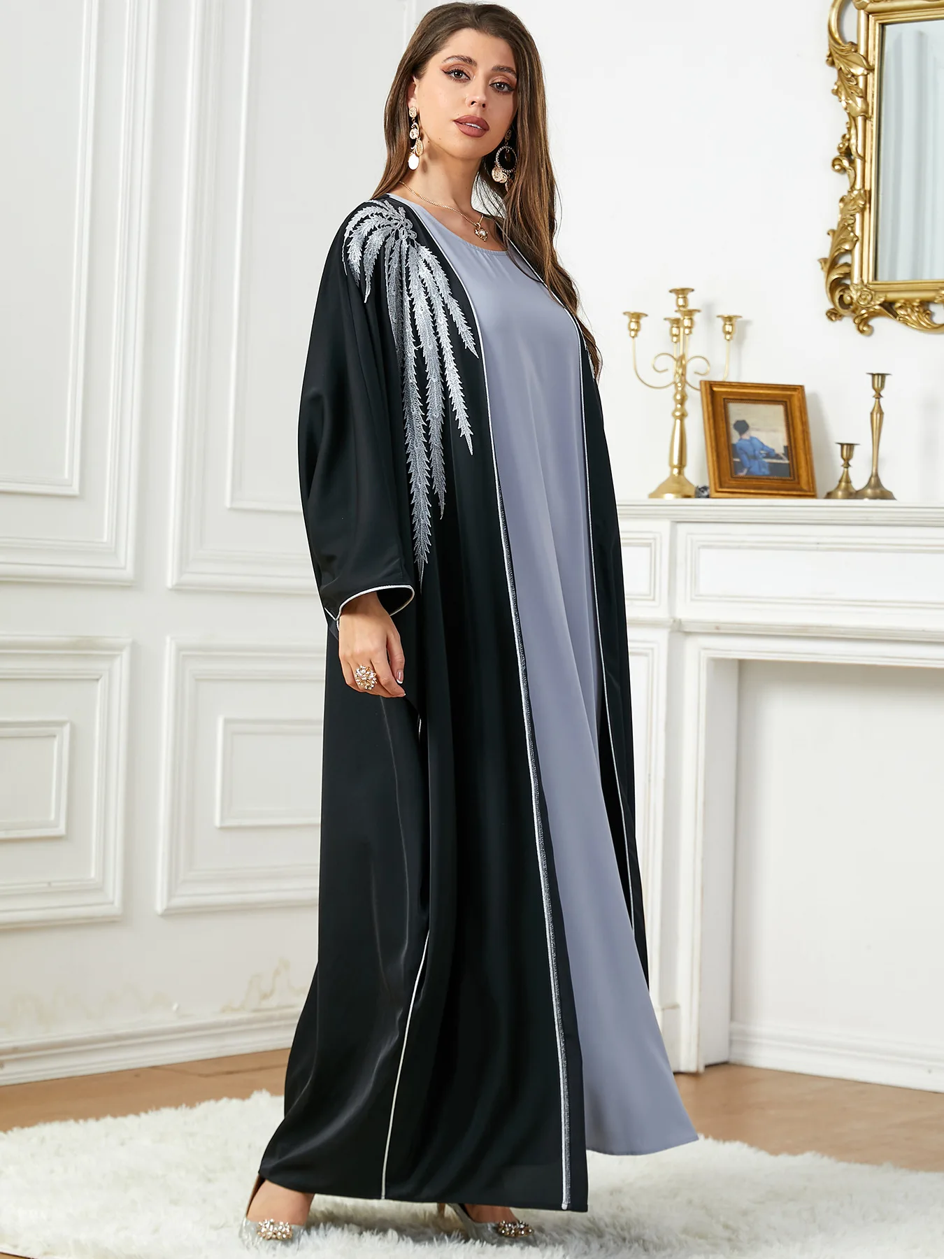 High Quality 2 Piece Sets Open Abaya Women Muslim Dress