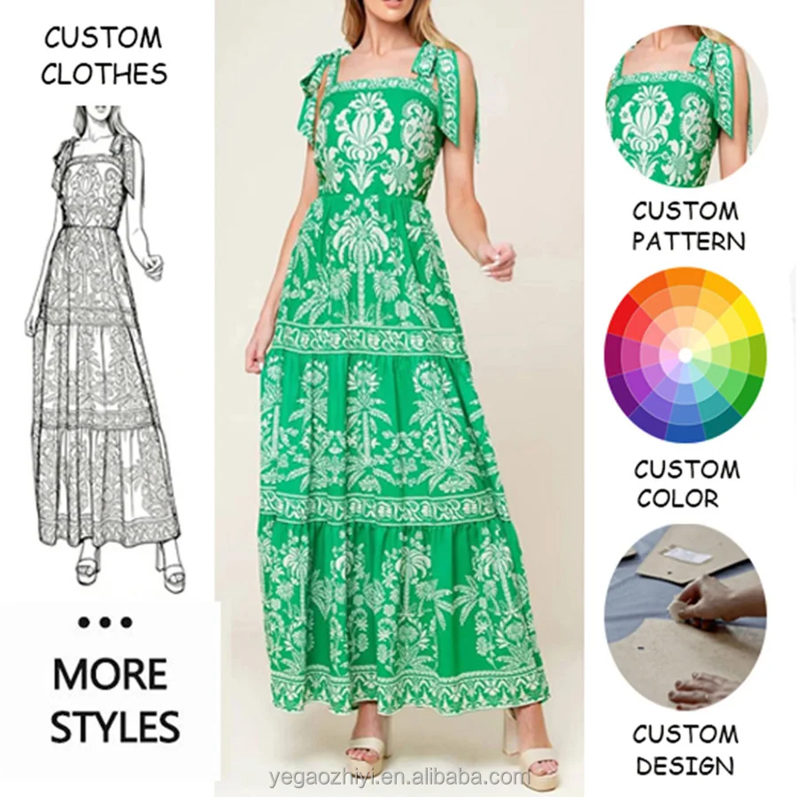 Custom Square Collar Floral Summer Midi Woven Digital Printed Breathable OEM Vestidos Undefined Dresses Women Casual