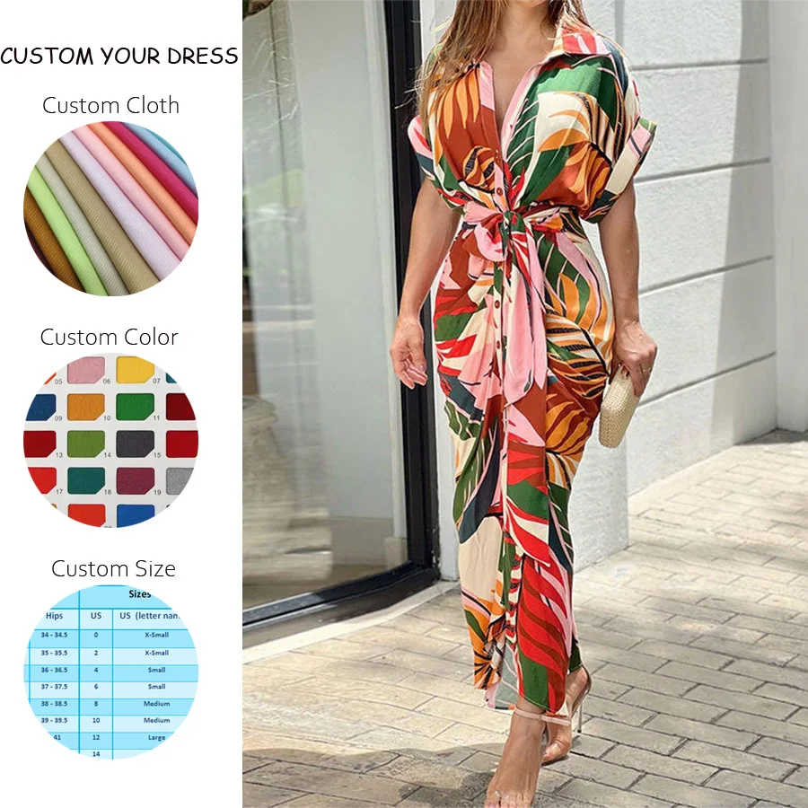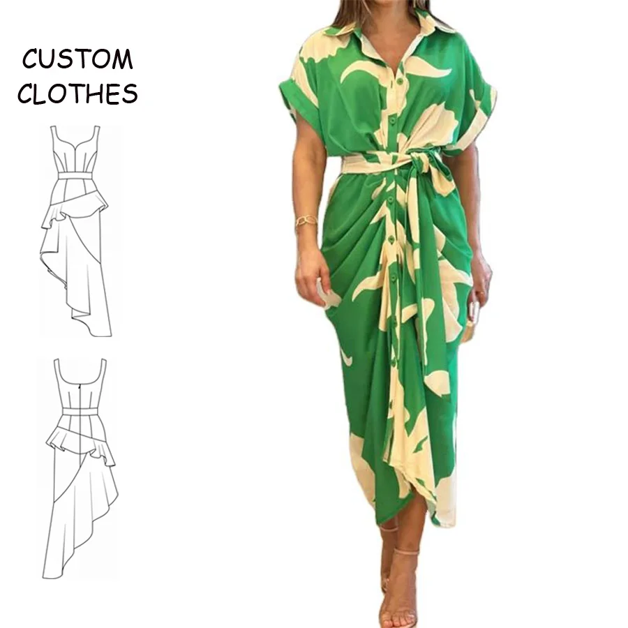 2025 Custom Short-Sleeved Floral Summer Breathable Woven Chiffon Ruffle Midi Dresses Women Casual Natural Waist Dresses European