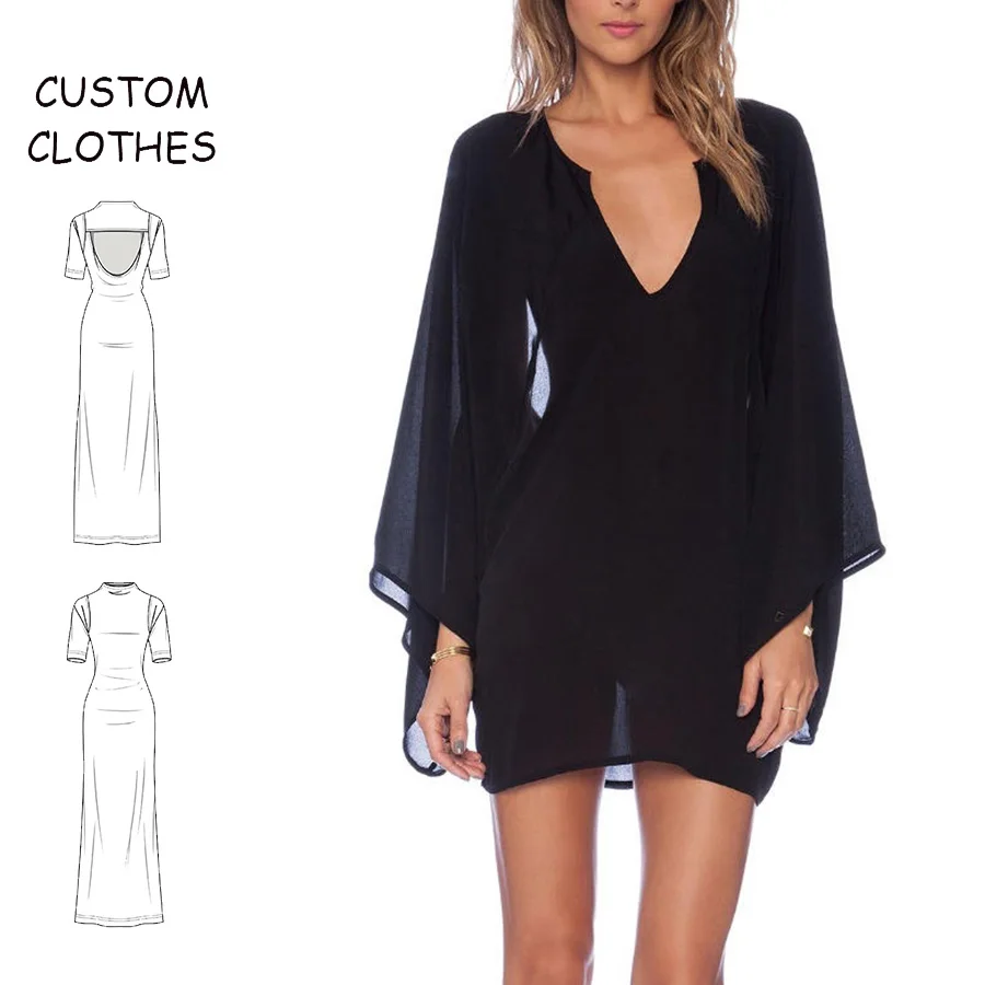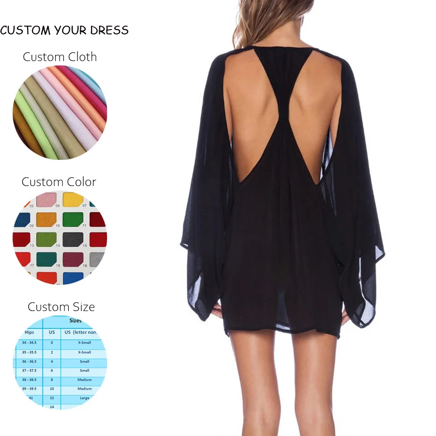 New Arrival Cutout Back Custom A-Line Chiffon V-neck Ladies Dresses for Daily Long Sleeve Mini Sexy Black