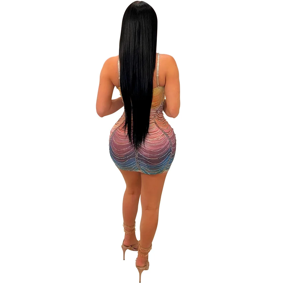 Hot Sale Colorful Mini Dress Women's Bodycon Nightclub Party Dress