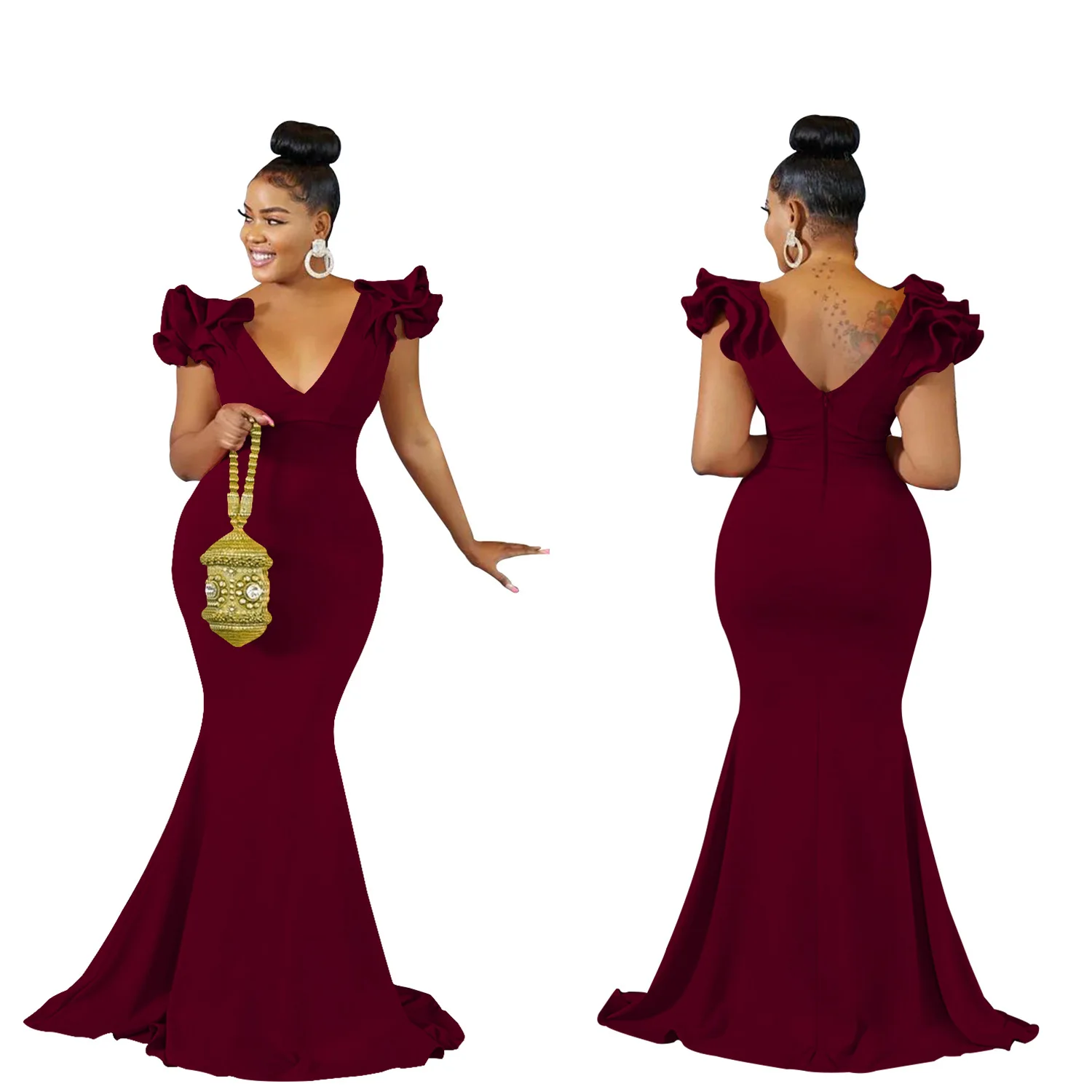 High Quality Royal Sexy Party Dresses Solid Color Slim Backless Maxi Evening Dress Gown Ball Dress