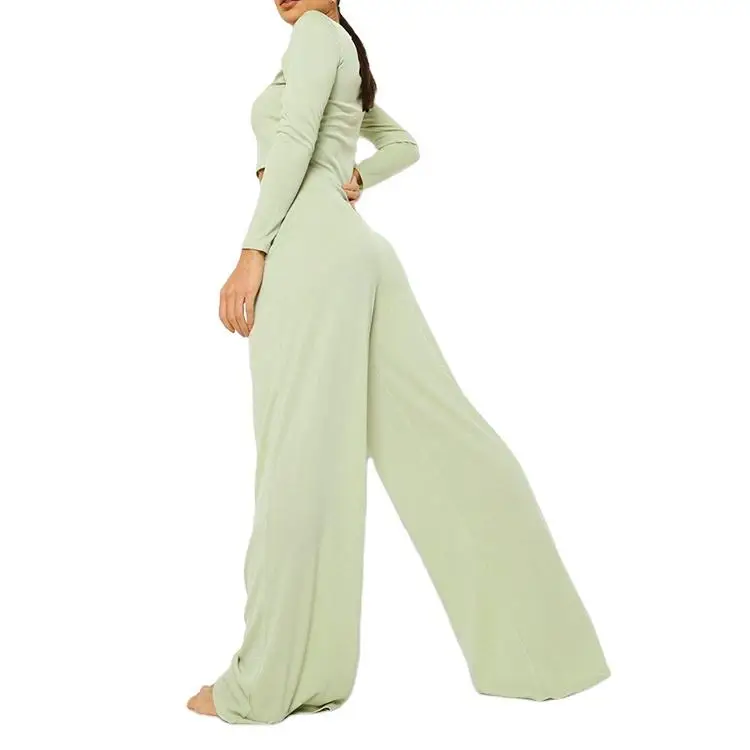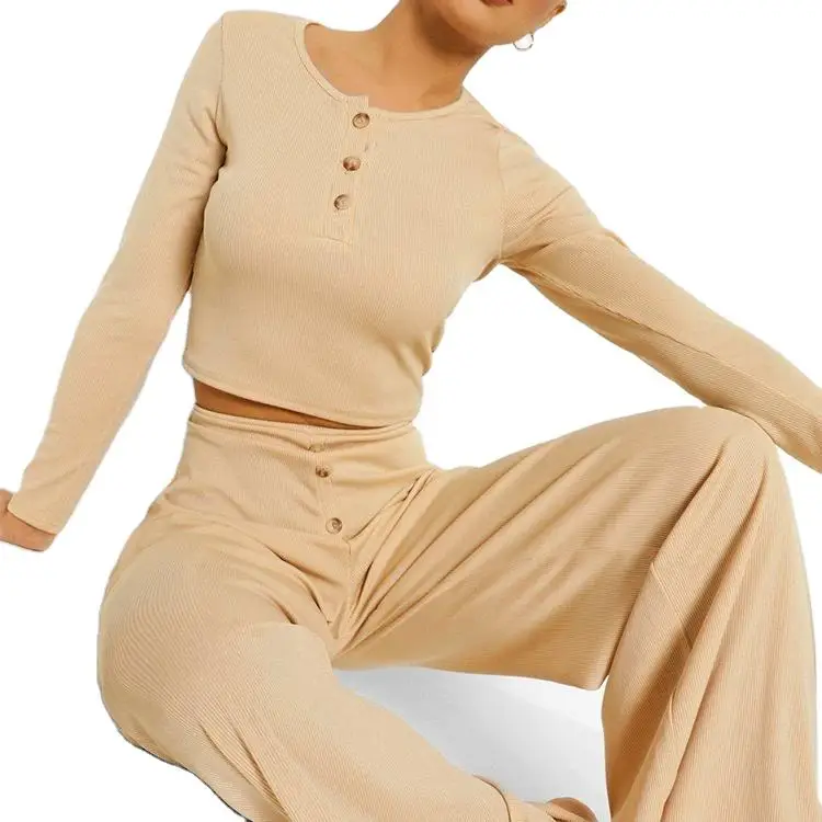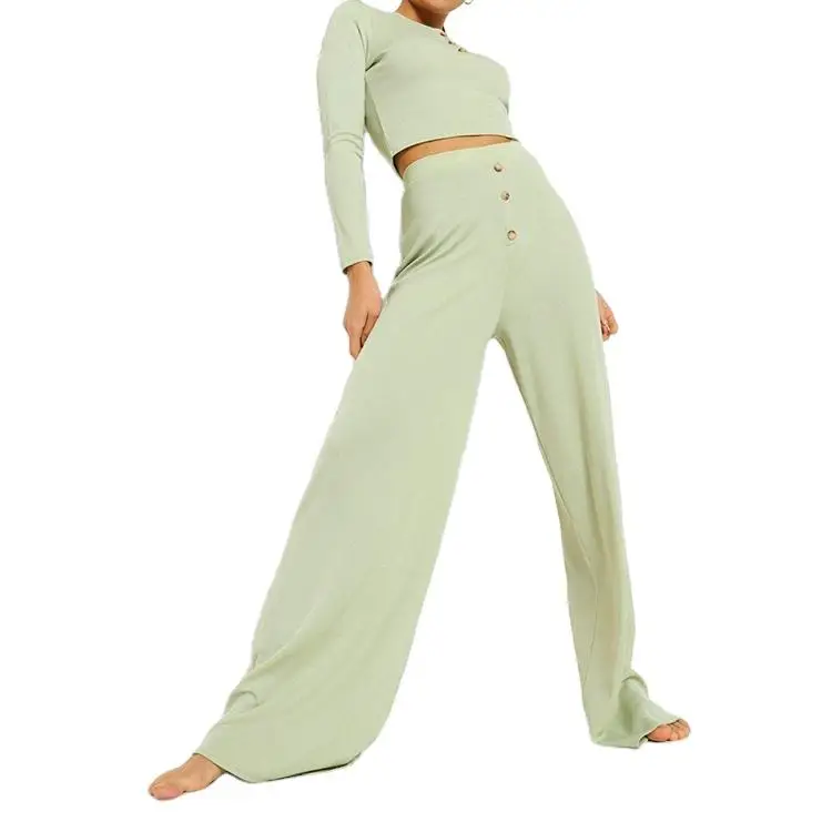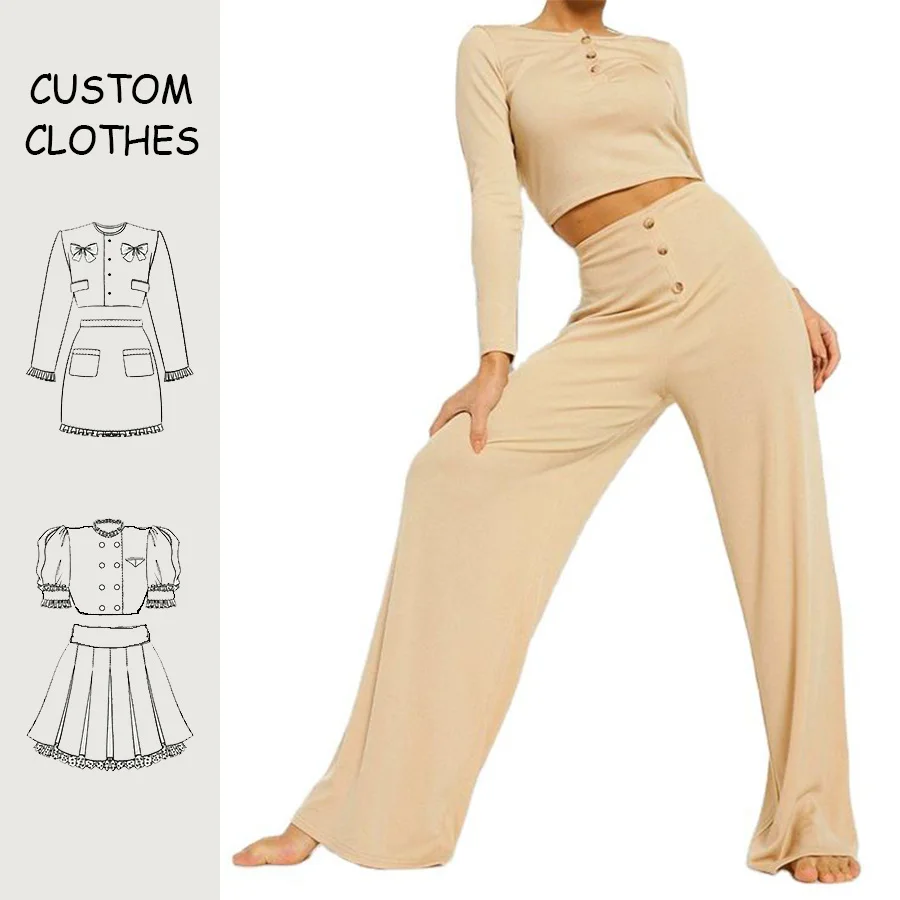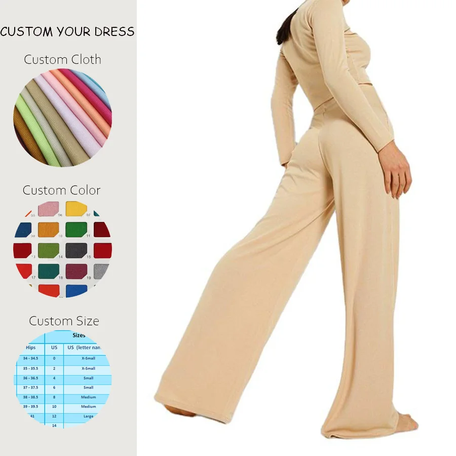 Fashion Two Piece Ladies Lounge Wear Fall OEM Women Retail Wide Leg Pants Clothes Customized Bodycon Women 2 Piece Casual Sets