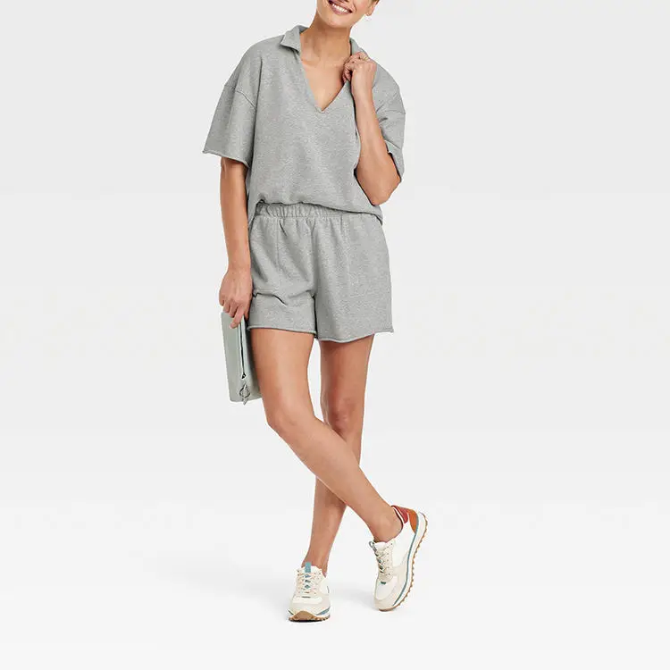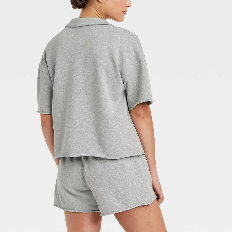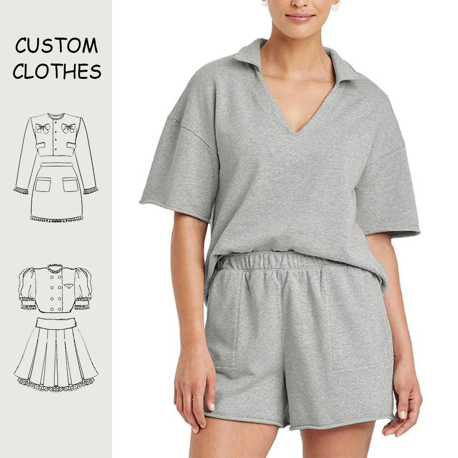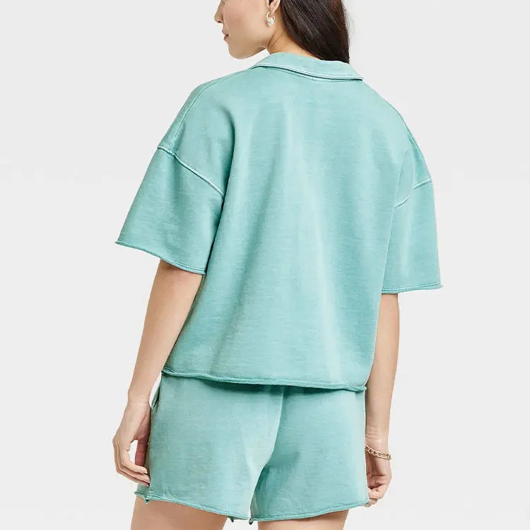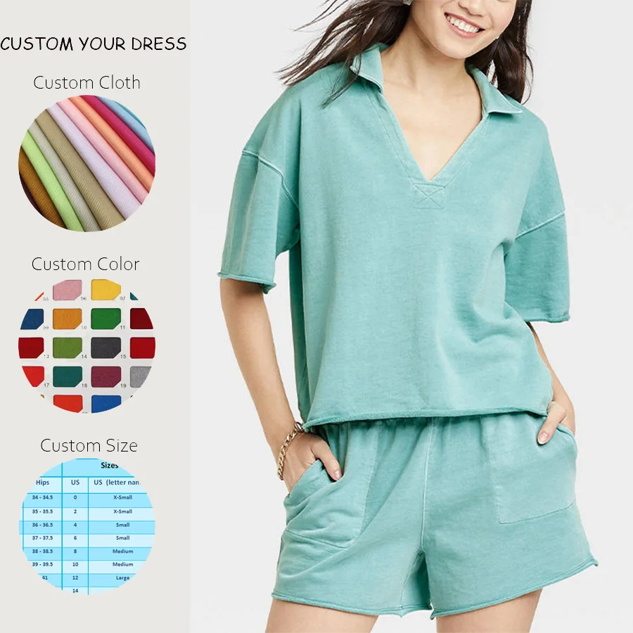 OEM Summer Woven 2-Piece Sets Wholesale Loungewear Custom Terry Women's T-Shirts & Shorts Matching Set Casual Plain Dyed