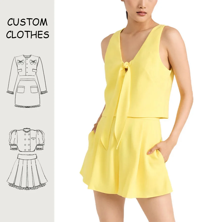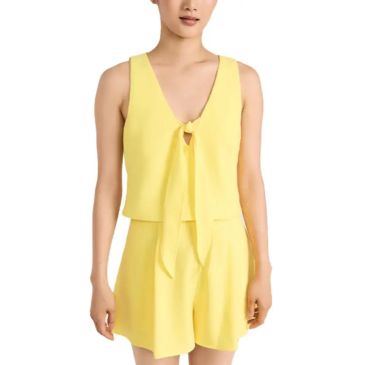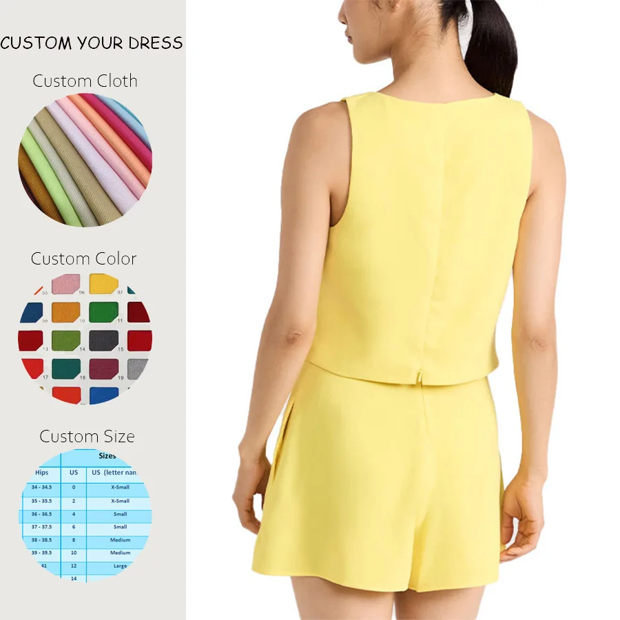 OEM Womens Sets Custom Logo Sleeveless Blouse & Side Pockets Shorts Set Two Piece Chiffon Sets for Women