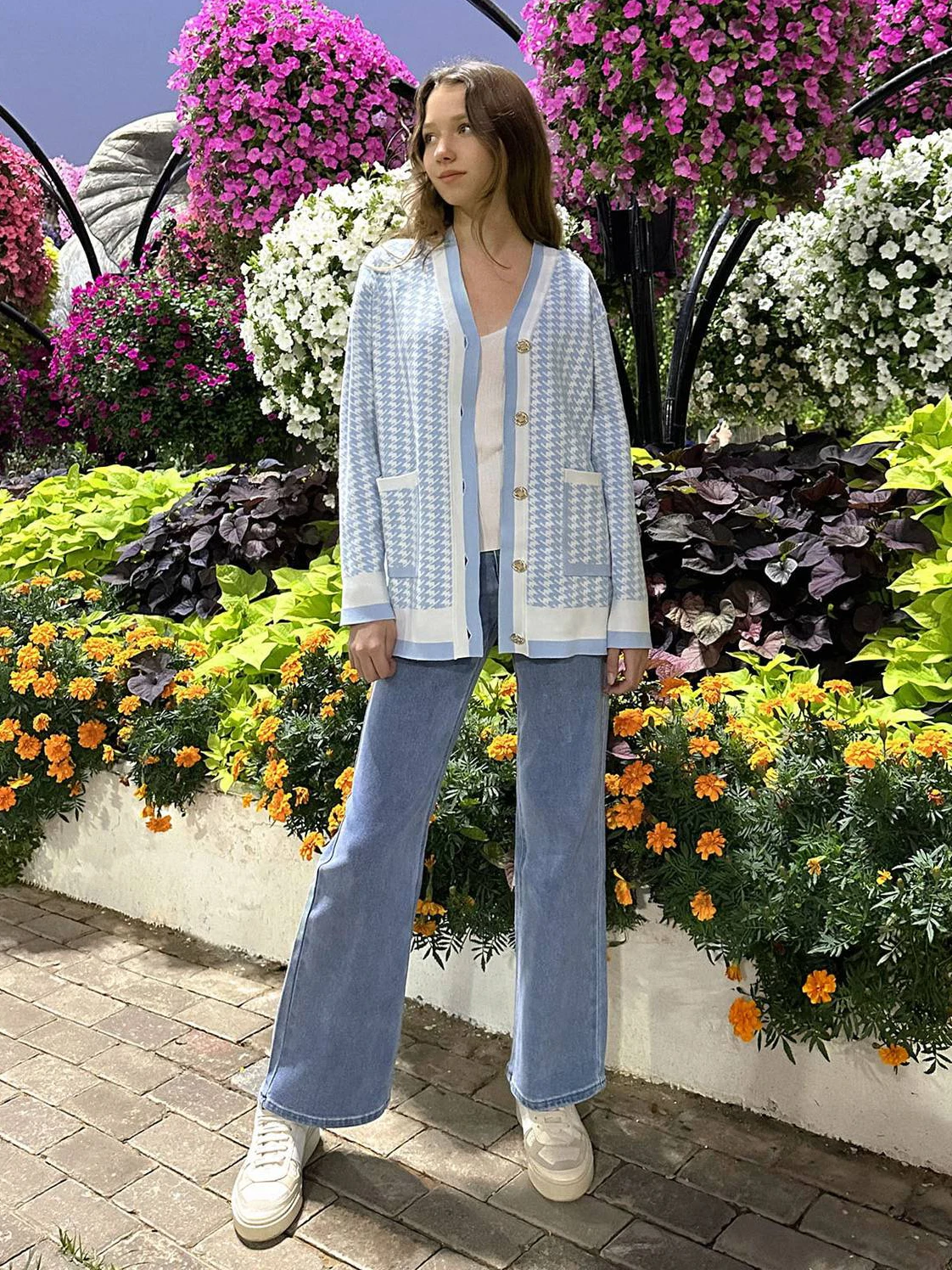 Blubelle Women's Casual Houndstooth Print Oversize Soft V-Neck Anti-Wrinkle Vintage Cardigan Woven Winter Button