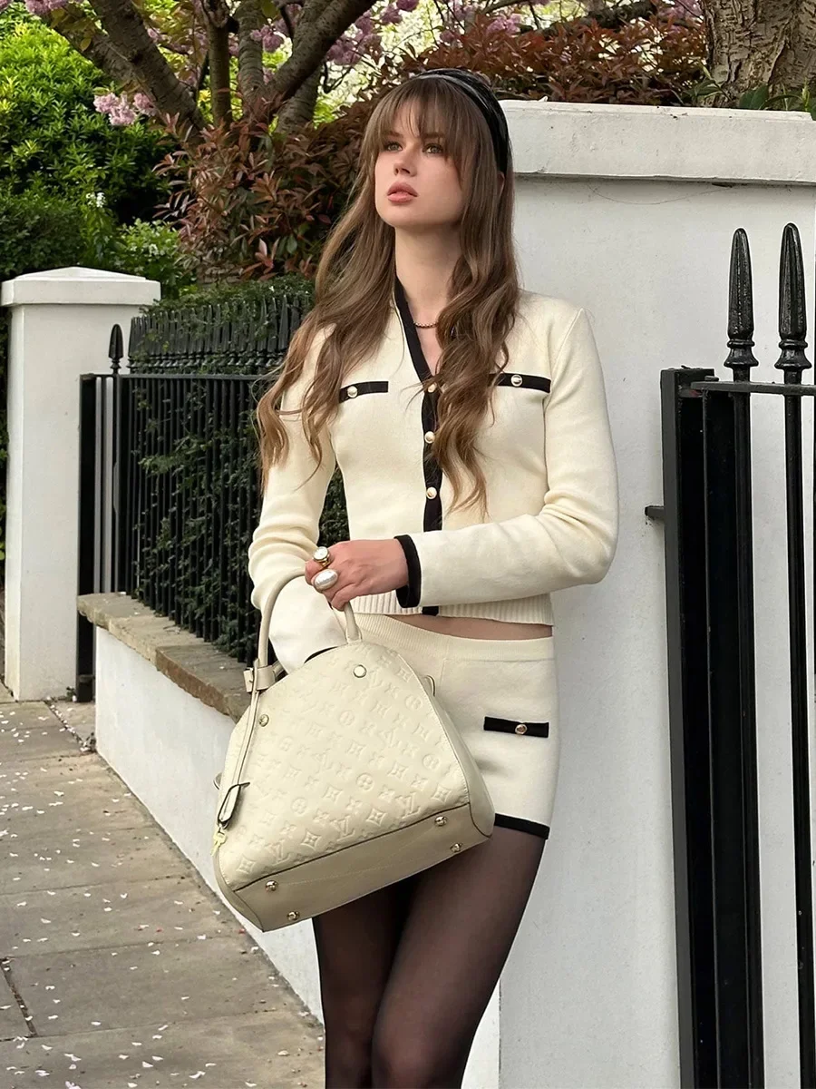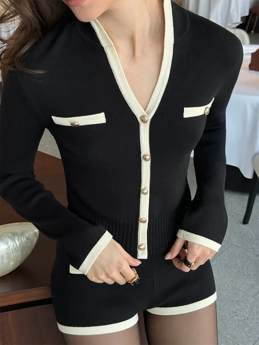 Blubelle Women's Sexy V Neck Long Sleeve Woven Knit Button Cardigan Shorts Set High Waist Elegant Casual Outfit for Autumn