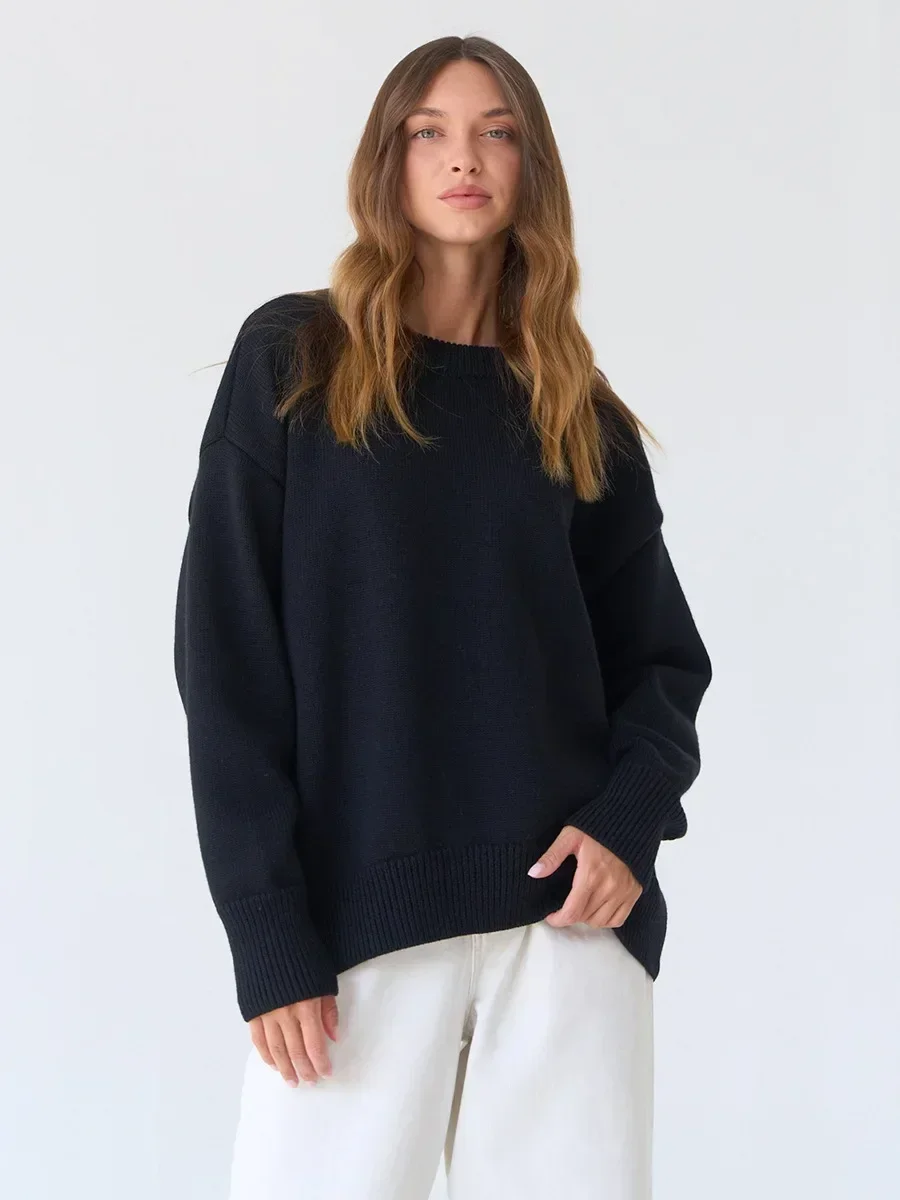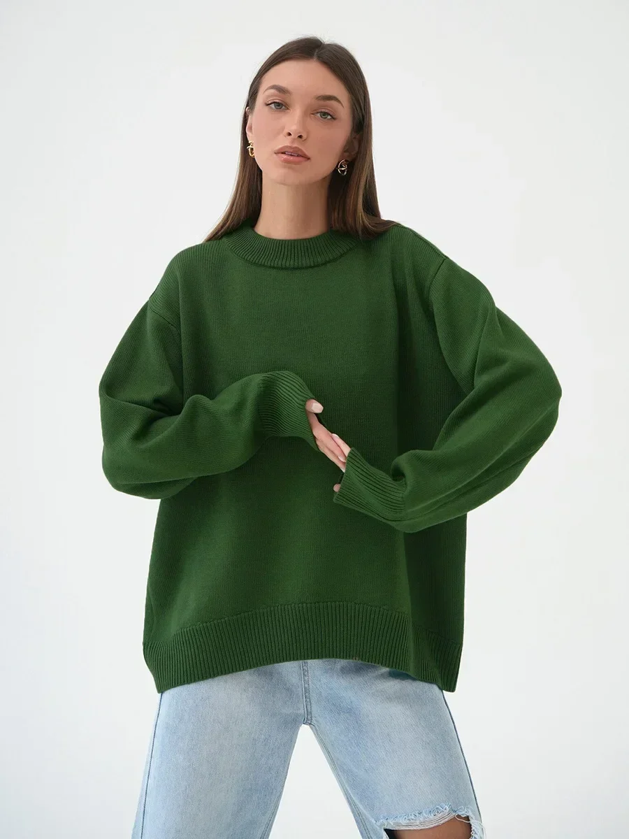 Blubelle Premium Oversized Women's Autumn Winter Jumper O-Neck Thick Warm Casual Loose Knitted Pullover Anti-Wrinkle Midi Full