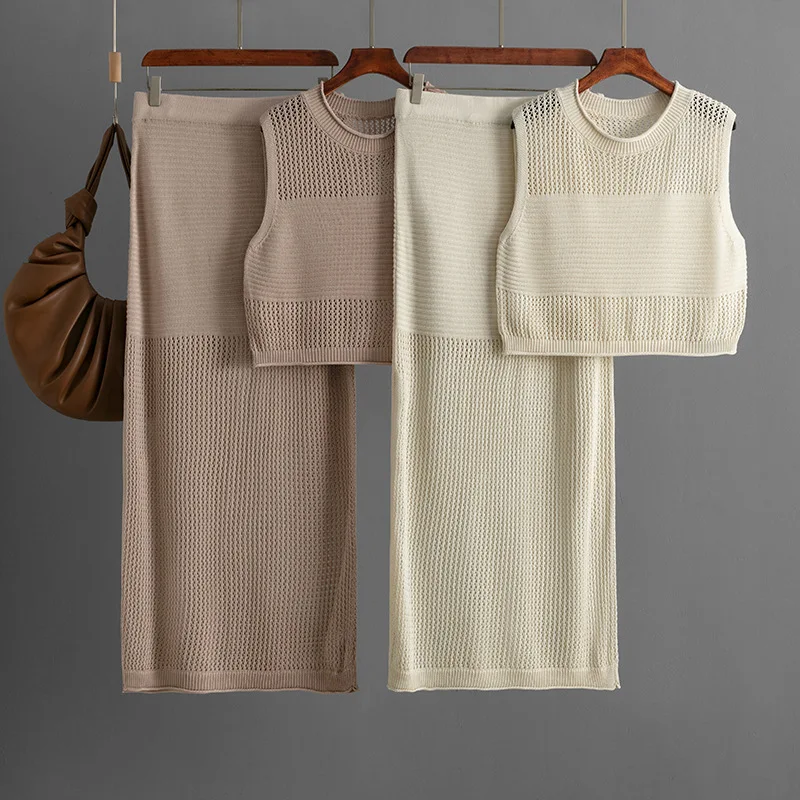 Blubelle Women's Summer Casual Two-Piece Set-Relaxed Fit O-Neck Tank Top Ankle-Length Skirt Viscose/Polyester/Nylon Knitting