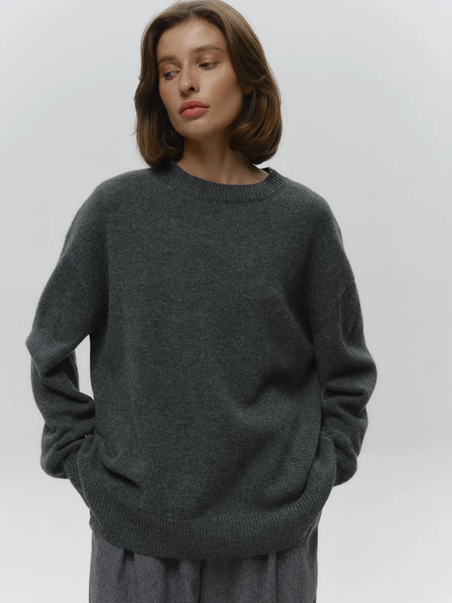 2025 Autumn Winter Release European American Style Casual Women's Sweater Solid Color Warm Loose Pullover Front Cross-Border