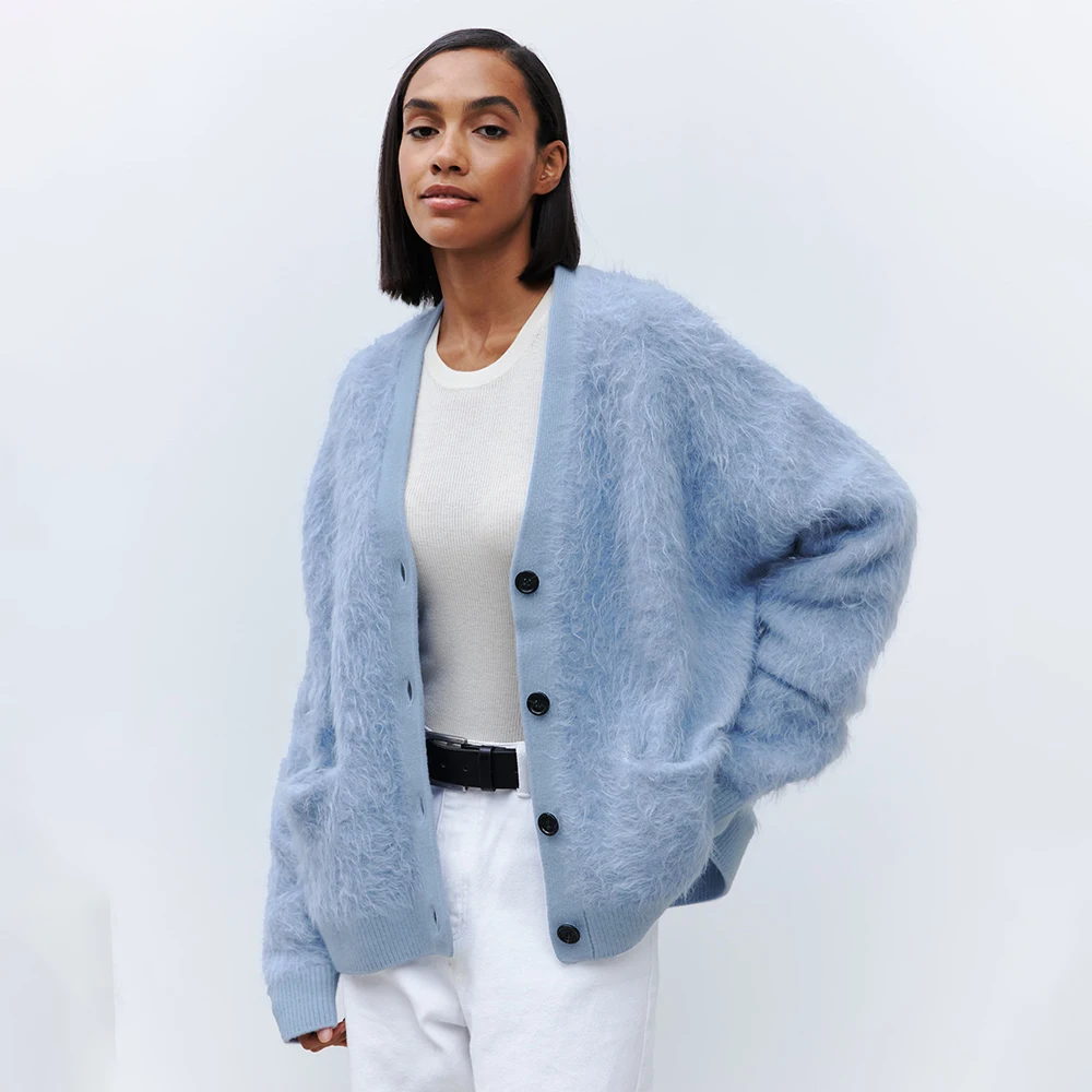 Blubelle Women's Woven Thick Fashion Cardigan for Autumn Winter Casual Single-Breasted Button Design New Loose-Fit Soft Sweater
