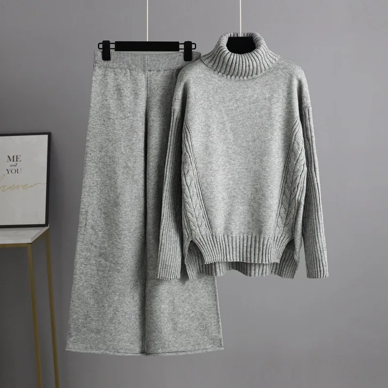 Blubelle Cross-Border Euro-American Winter Casual Solid Ribbed Knit Set Women's Turtleneck Sweater + Washable Full-Length