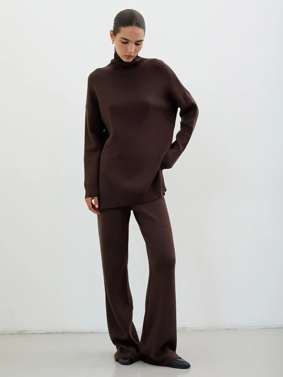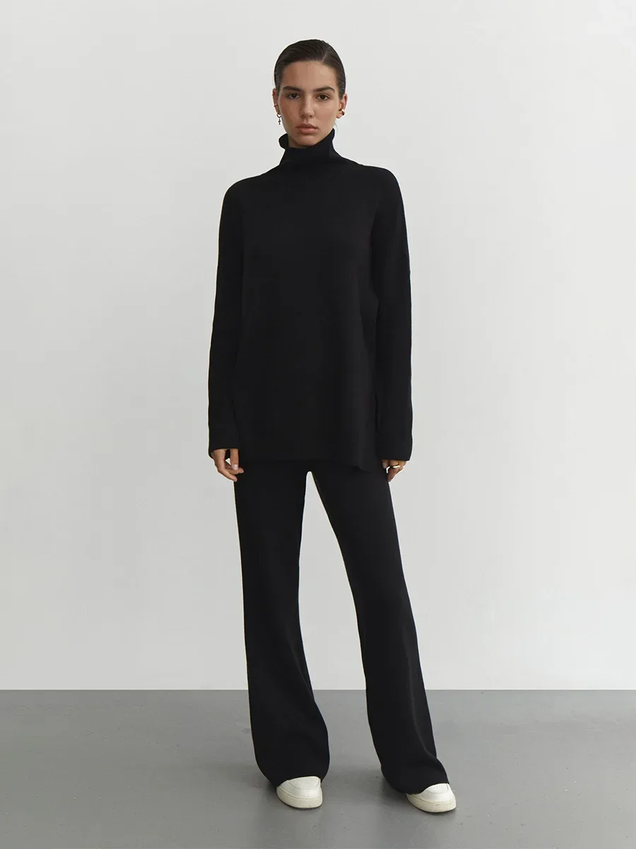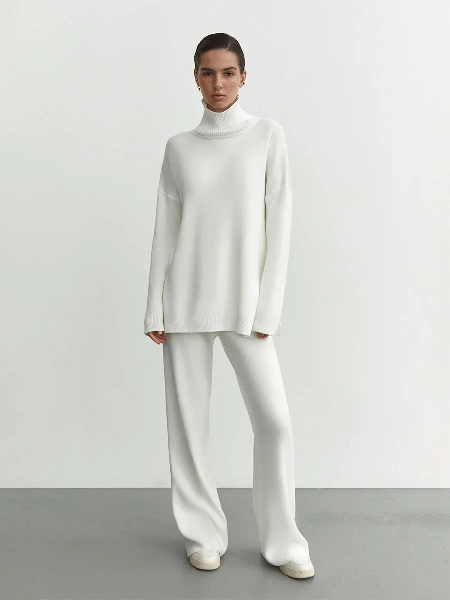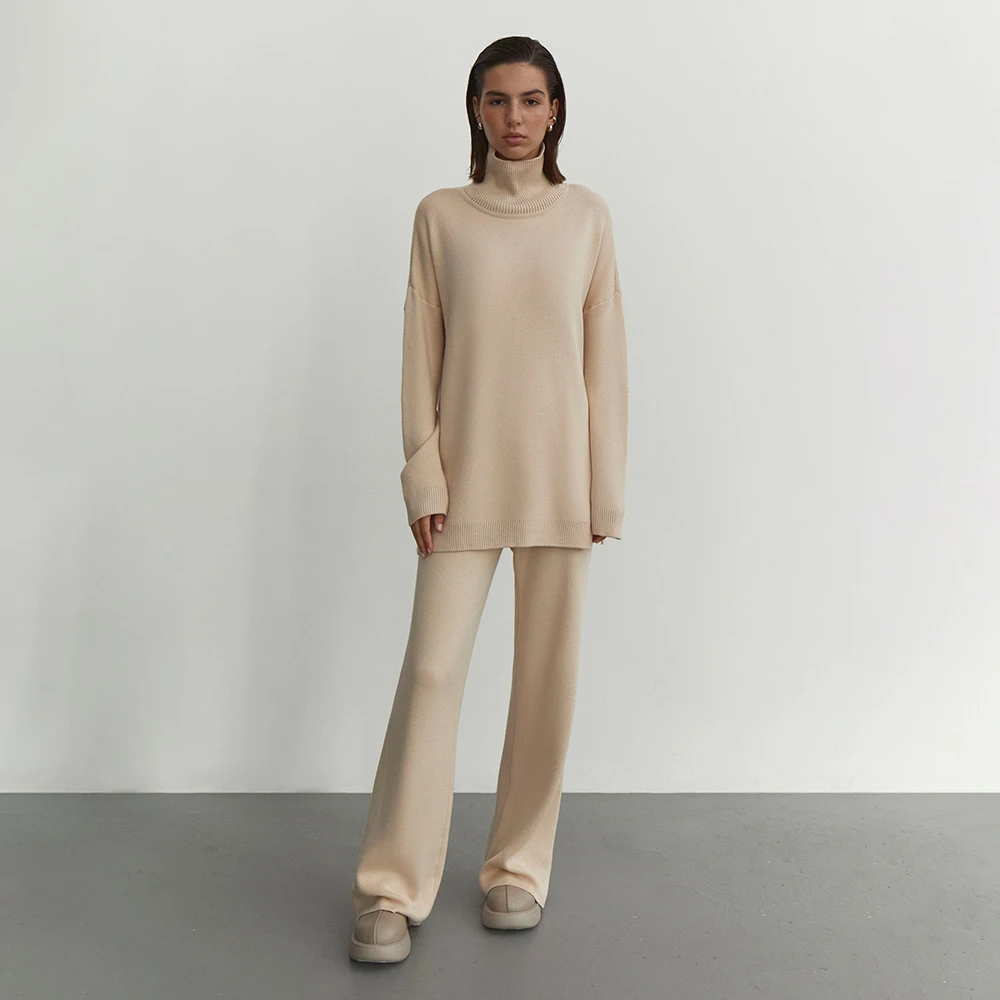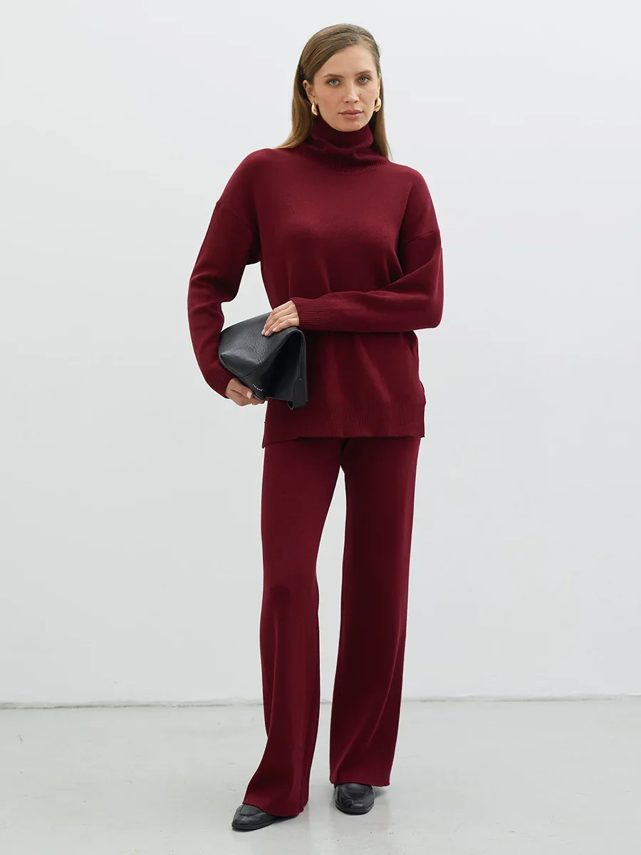 Blubelle Women's Casual Autumn Winter Sweater Set New Turtleneck Knit Pullover Solid Color Wide Leg Knit Pants High Waist Soft