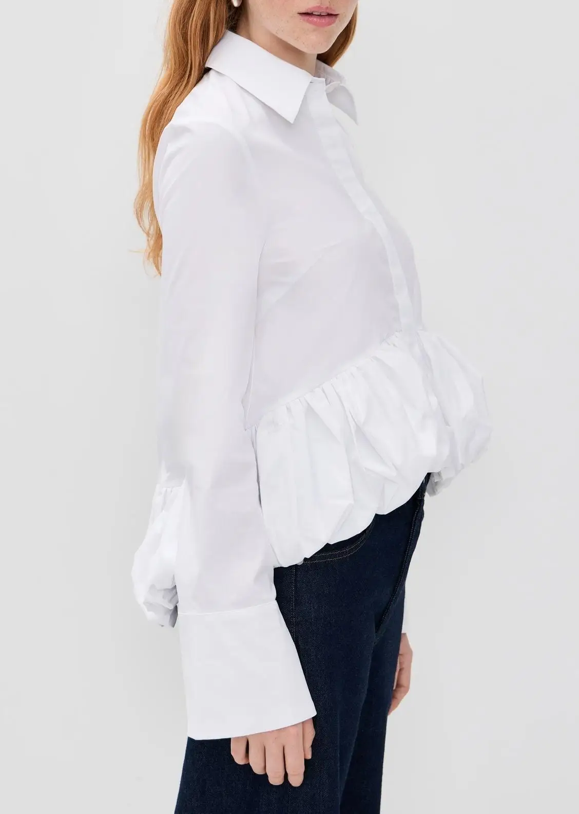 ZYHT 82024 White Blouse with Ruffled Cap Sleeves V-Neck Blouses Et Chemises Pour Femmes White Blouses for Women