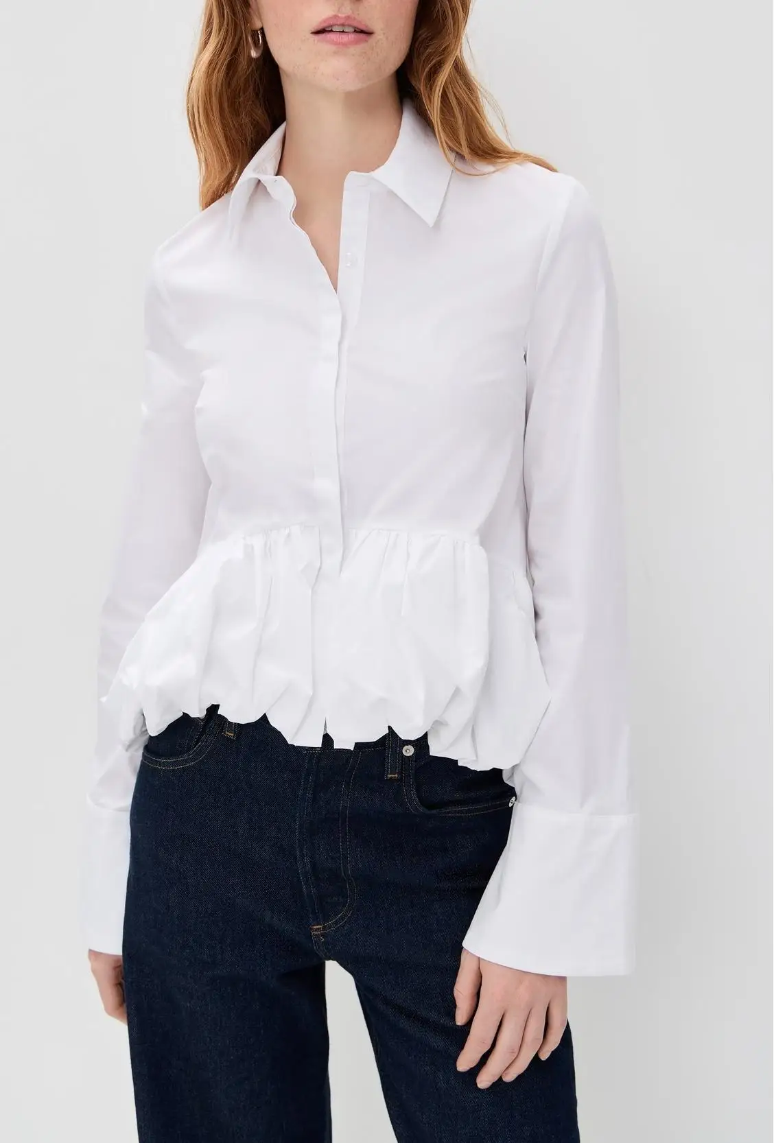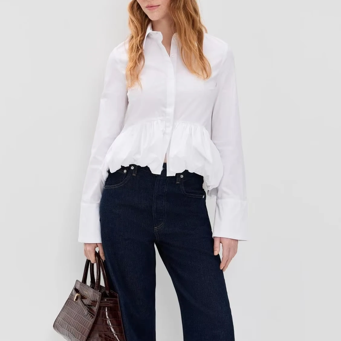2025 Women's Cotton Long Sleeve Shirt with Chic Button Simple Design Breathable Outwear for Autumn Woven Solid Pattern
