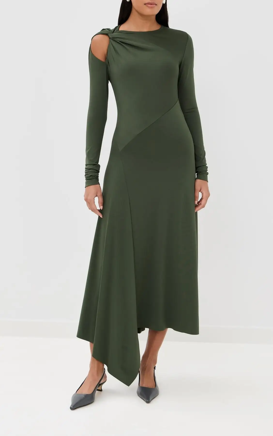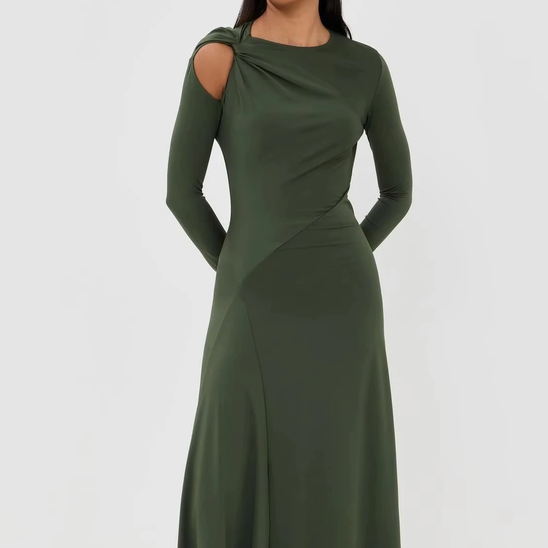 ZYHT 73849 European Wholesale Fashion Casual One Shoulder Ruched Maxi Dress Side Slit Pleated Long Sleeve Dresses for Women