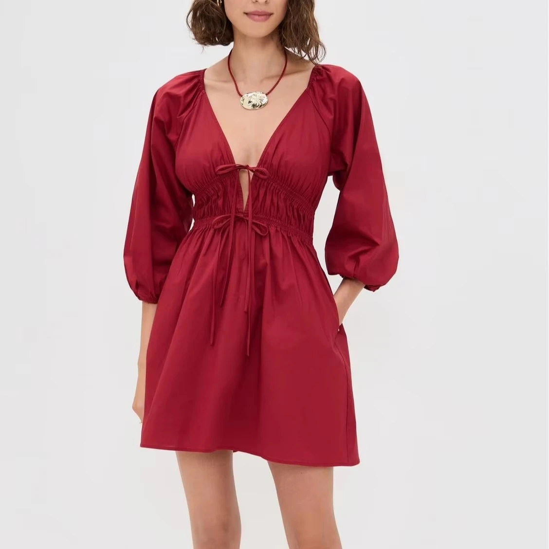 ZYHT 21541 Wholesale Crew Neck High Waist Casual Dresses Elegant Lace Velvet Mermaid Hem Ruched Long Sleeve Dresses for Women