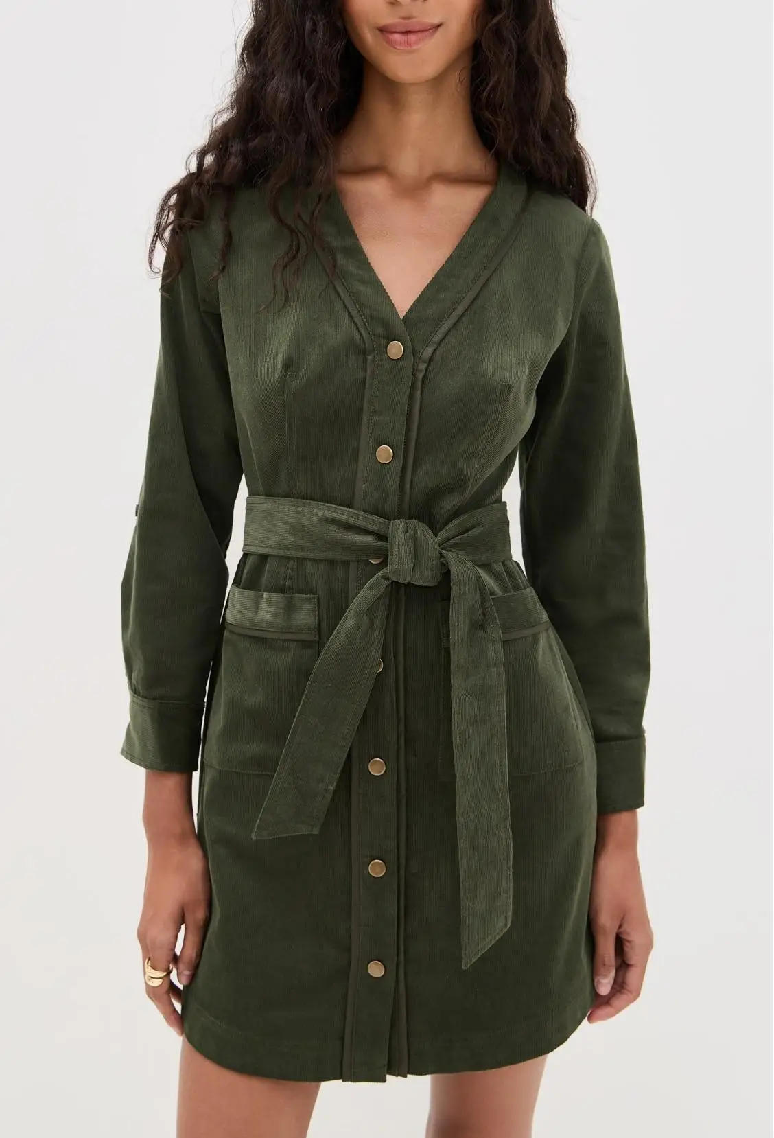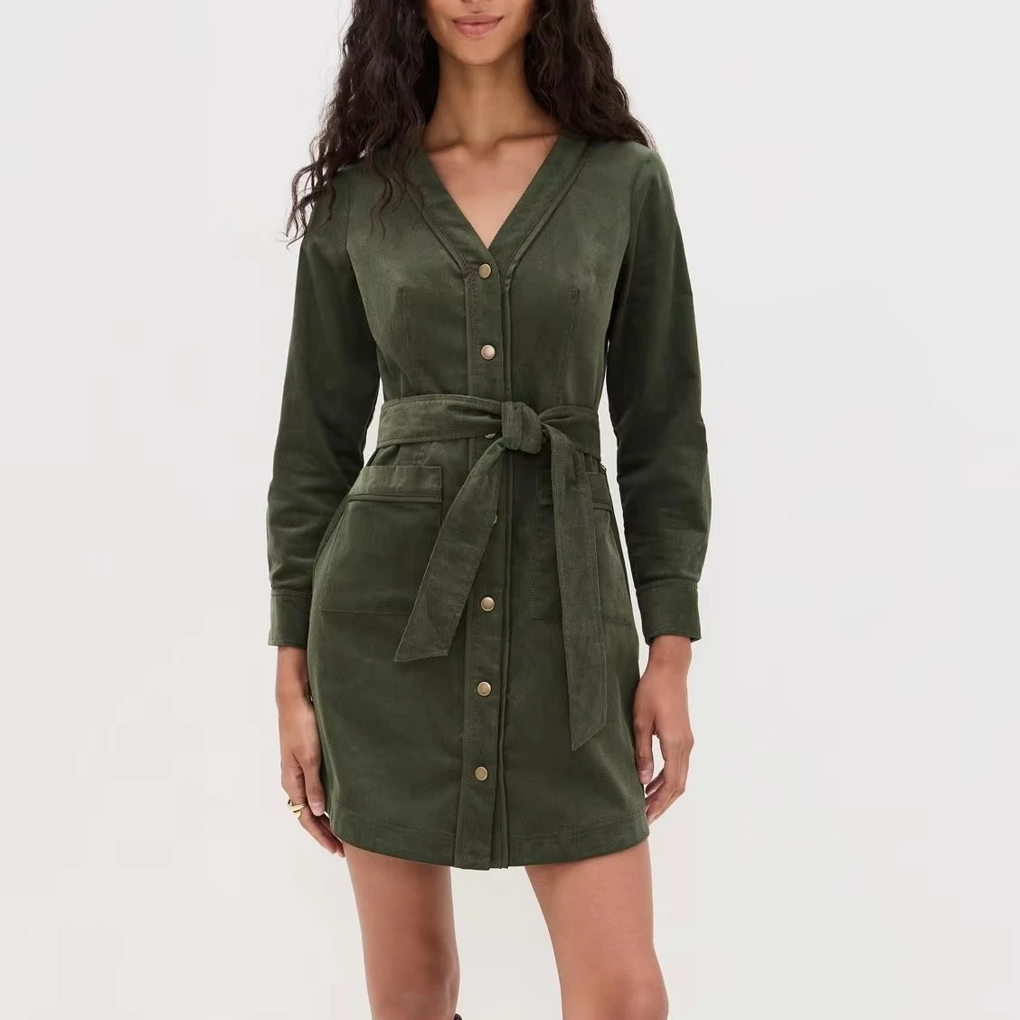 Vintage Elegant V Neck Puff Sleeve Dress Women's Loose Shirt Style Evening Dress