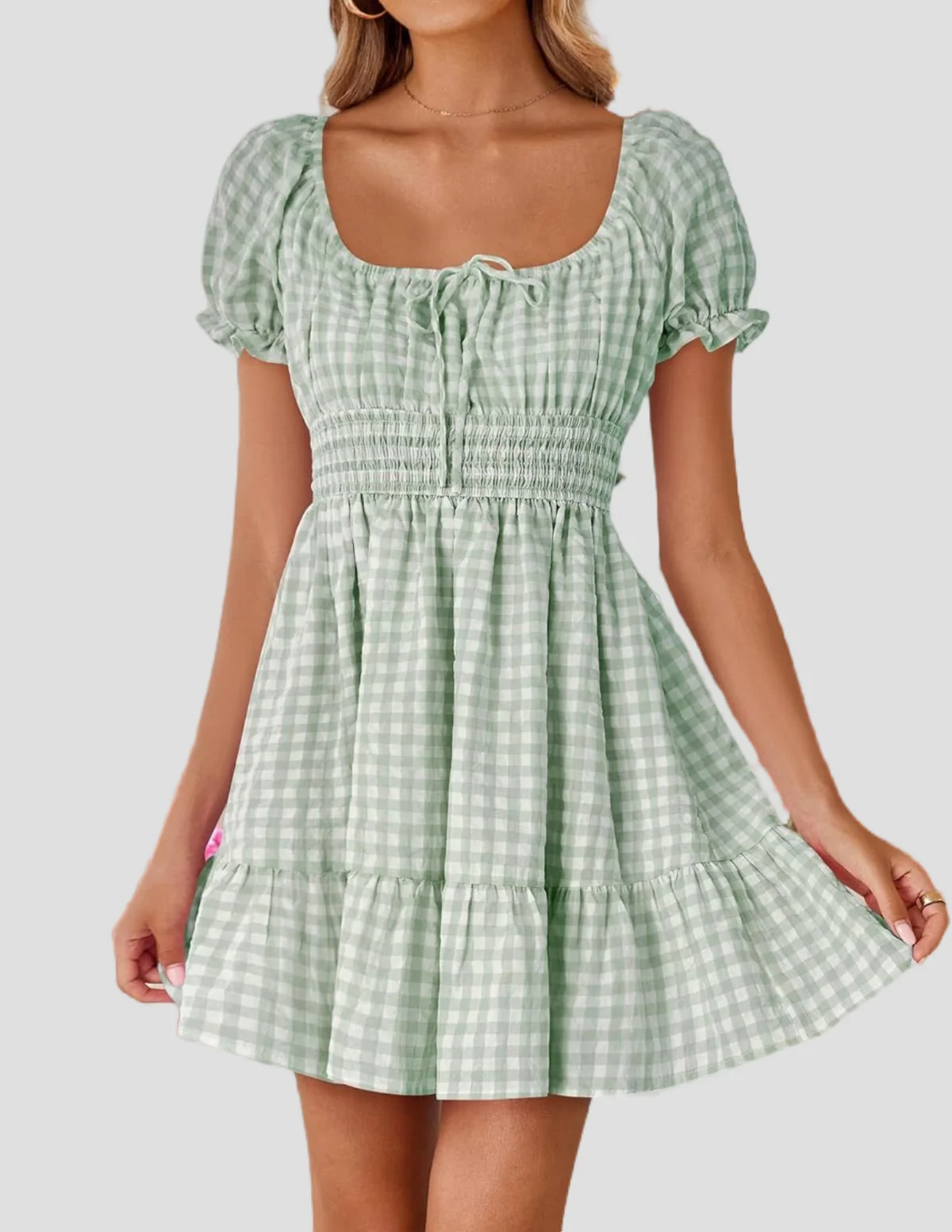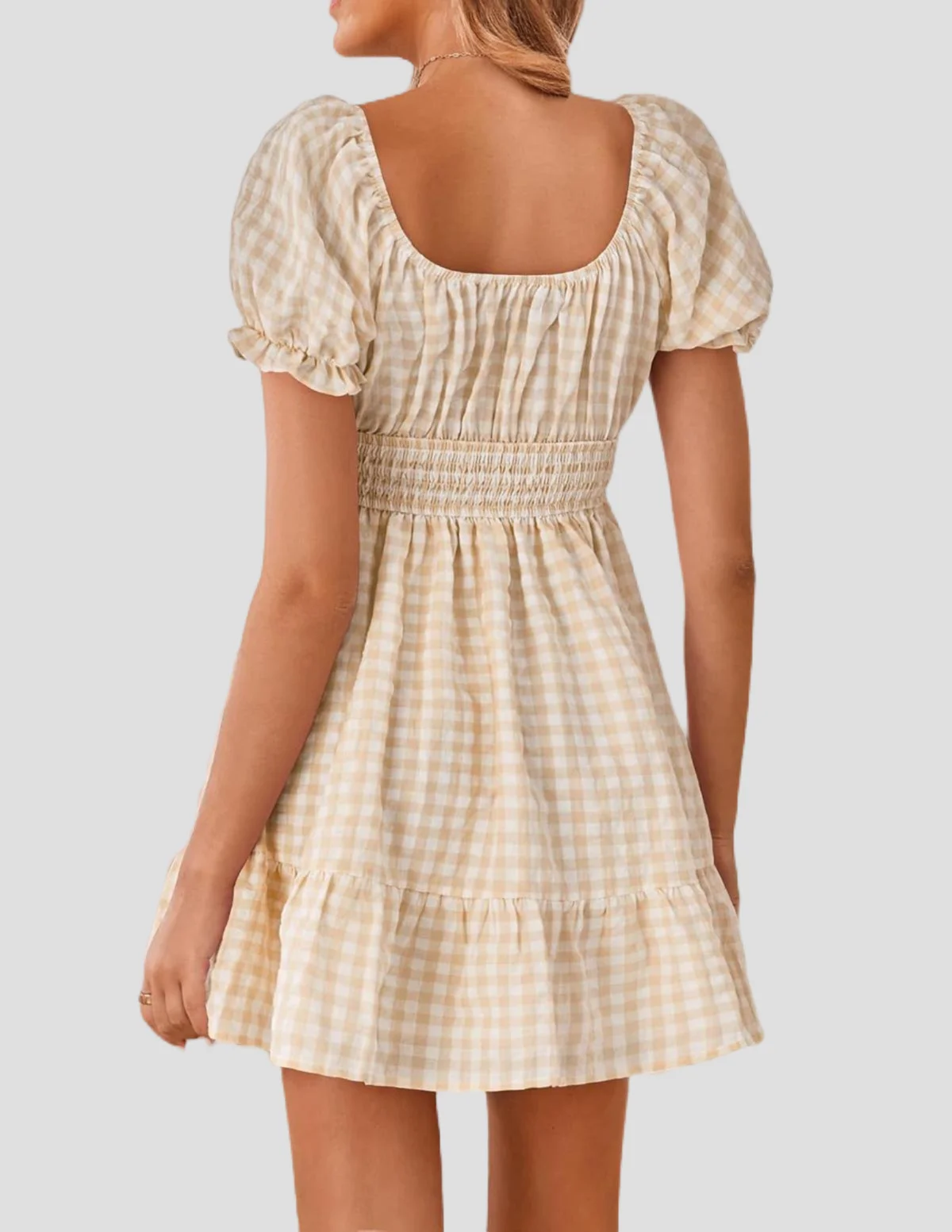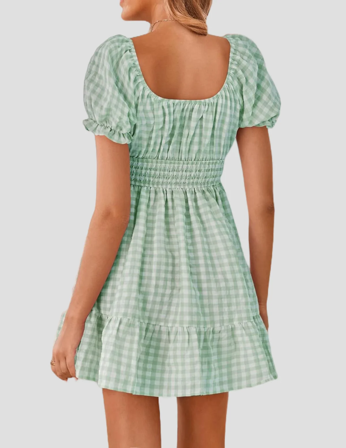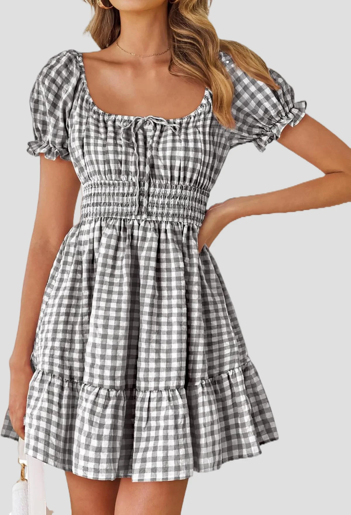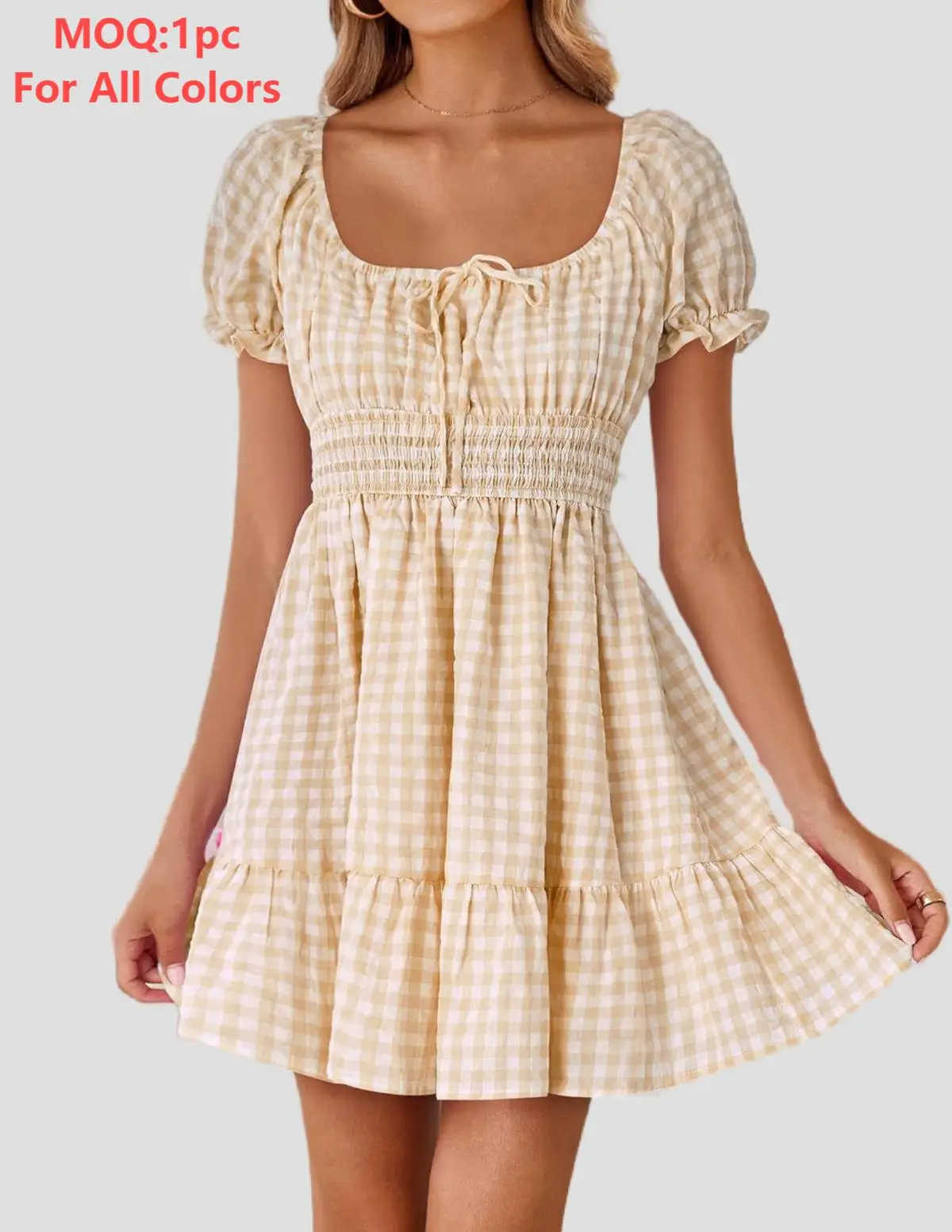 Wholesale Low MOQ Custom Women's Casual Dress with Square Collar Plaid Pattern Midi Length for Summer Beach