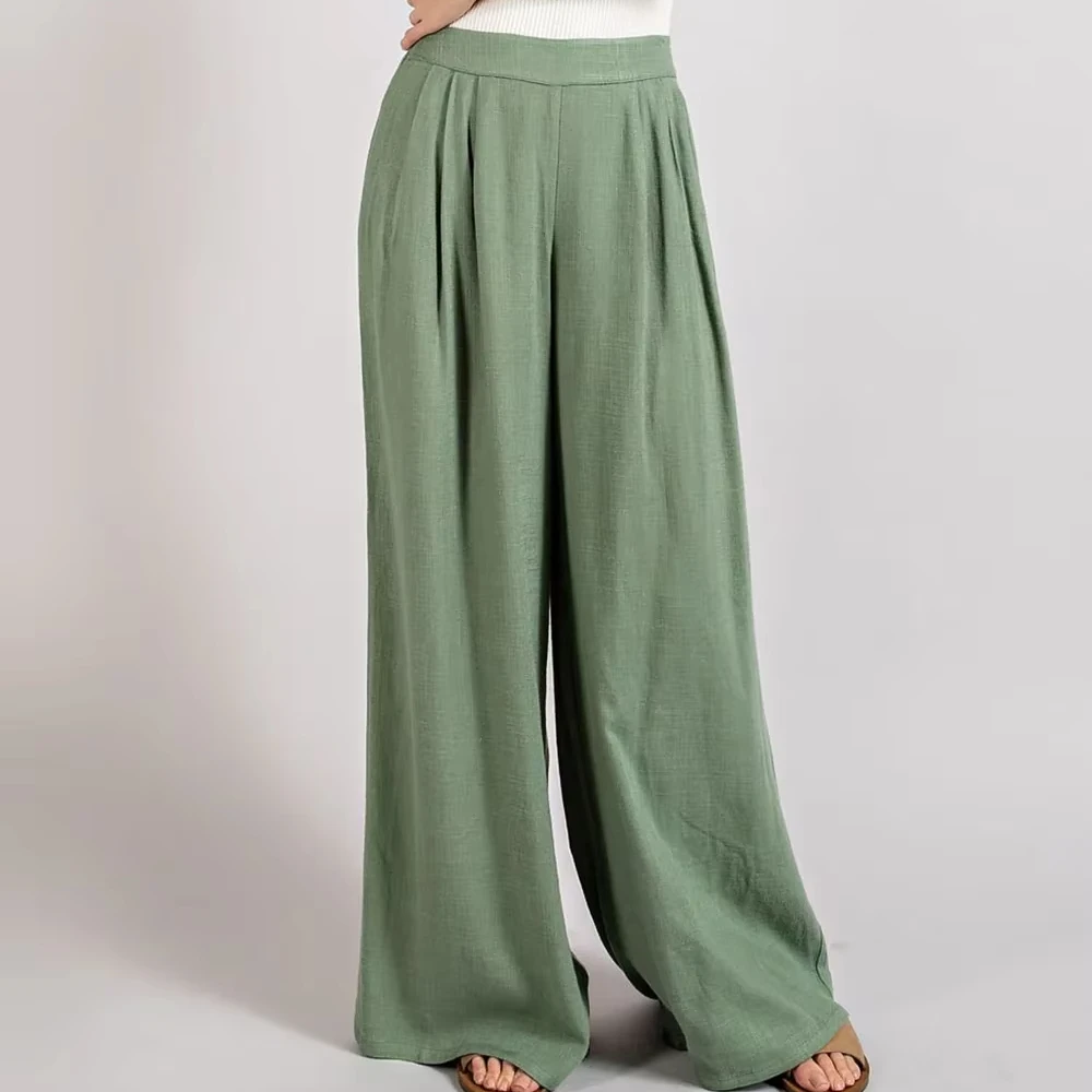 Custom High Quality Women's Loose Trousers for Summer 2025 New Fashion Solid Color Mid Waist Casual Wide-leg Pants Ladies