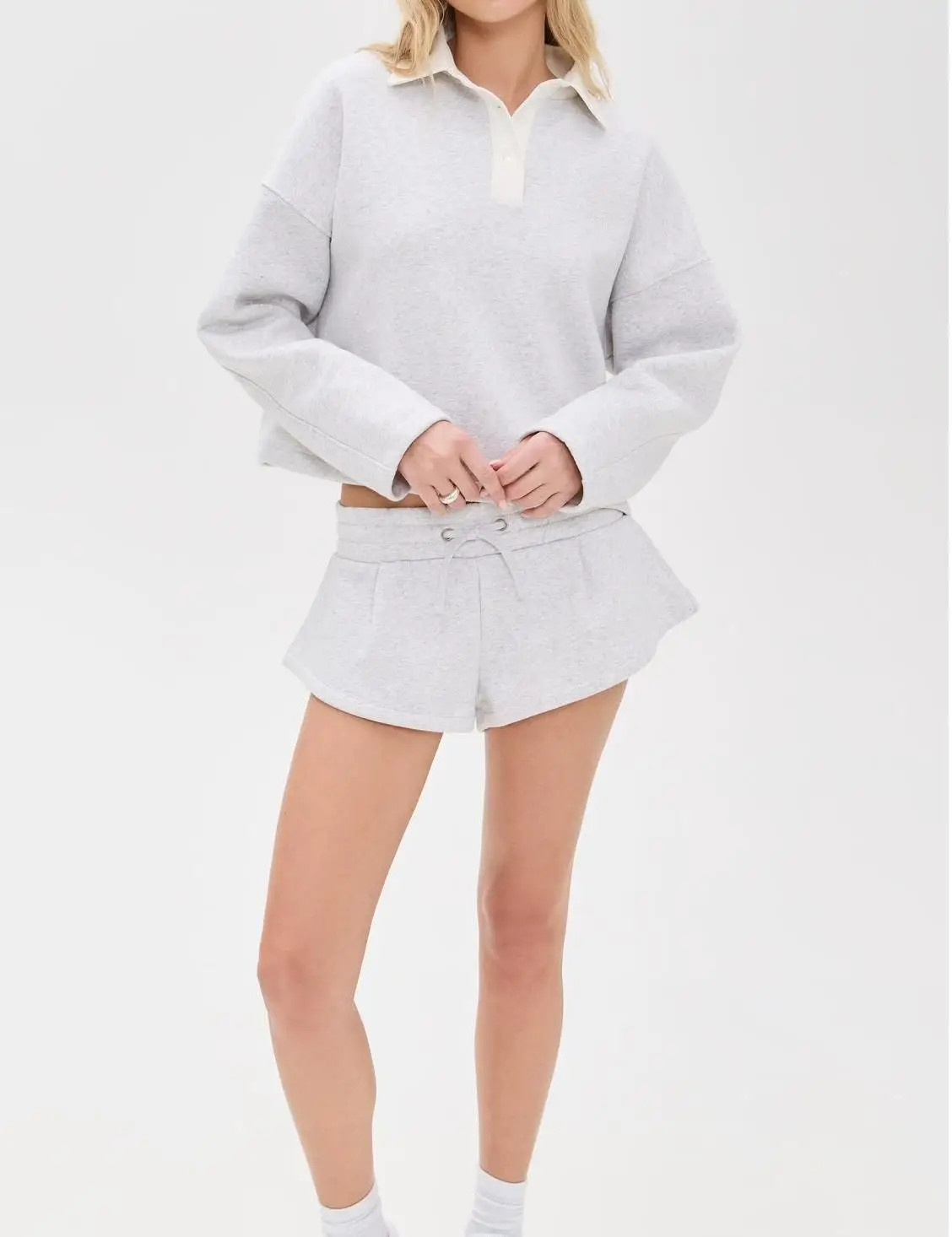 High Quality Women Crop Top Sport Street Wear Custom Logo Cotton Pullover Sweatshirt and Shorts 2 Pieces Set for Gym Clothing