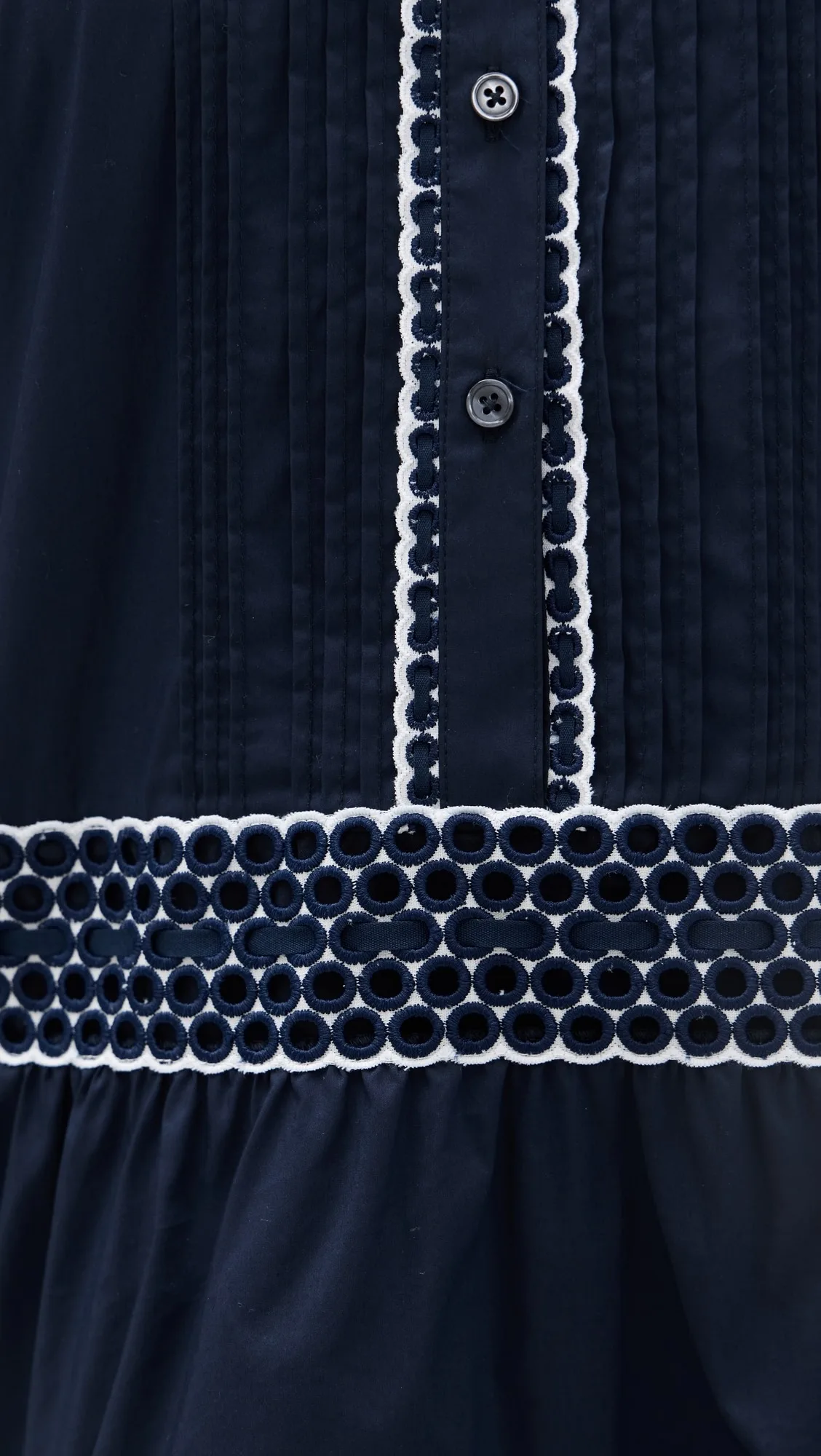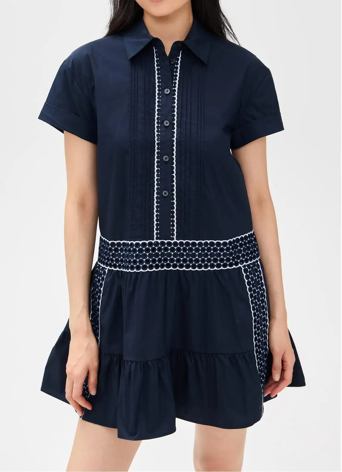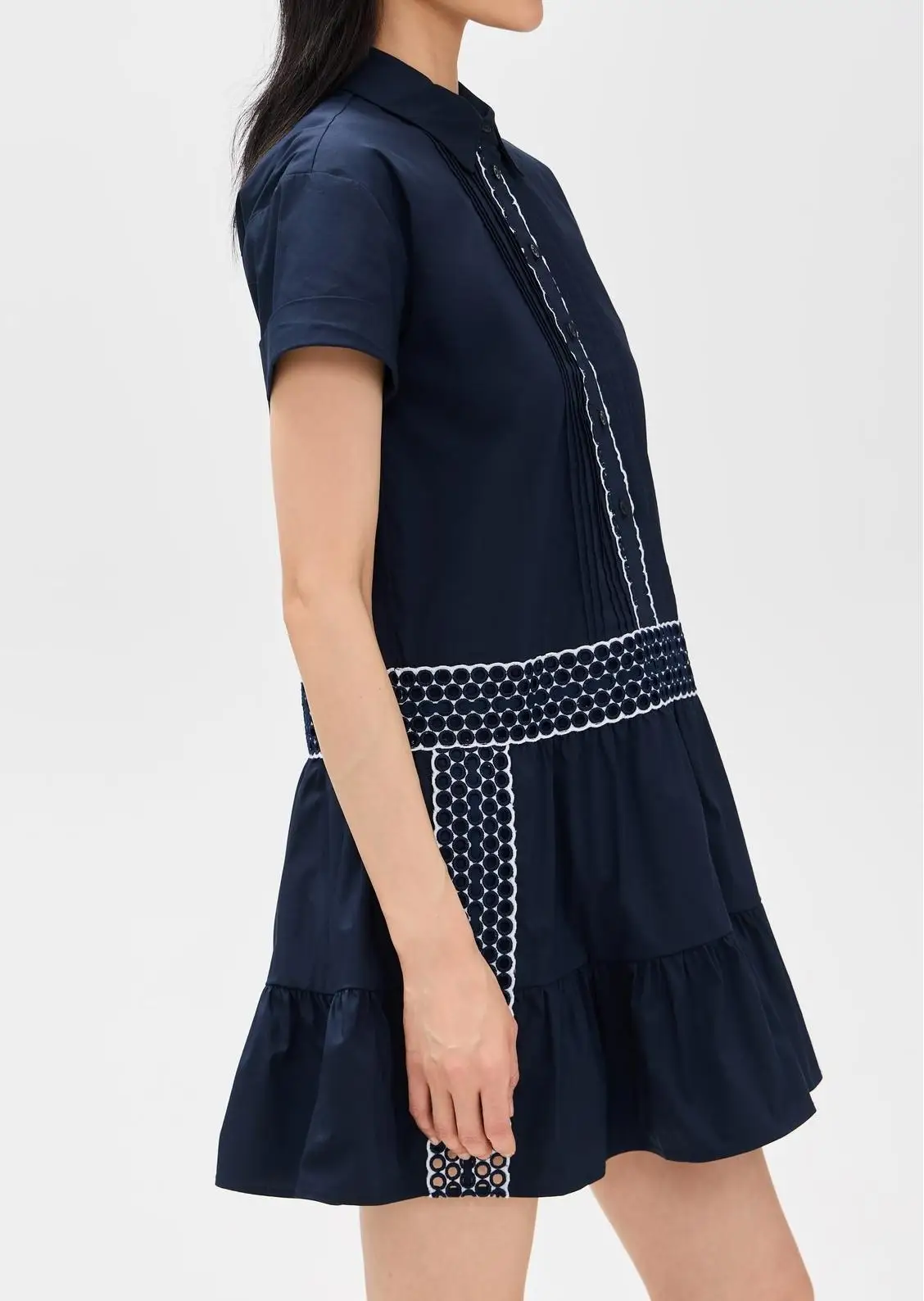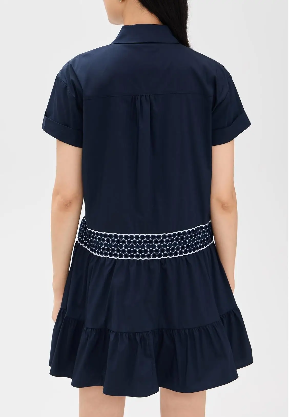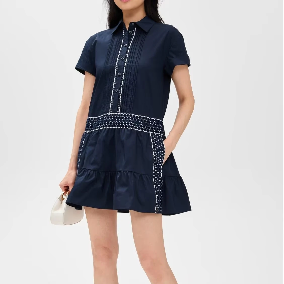Custom Logo Women's Elegant Shirt Dress with Pleats Embroidery Eyelets Manufactured Clothing Casual Mini Dress for Summer