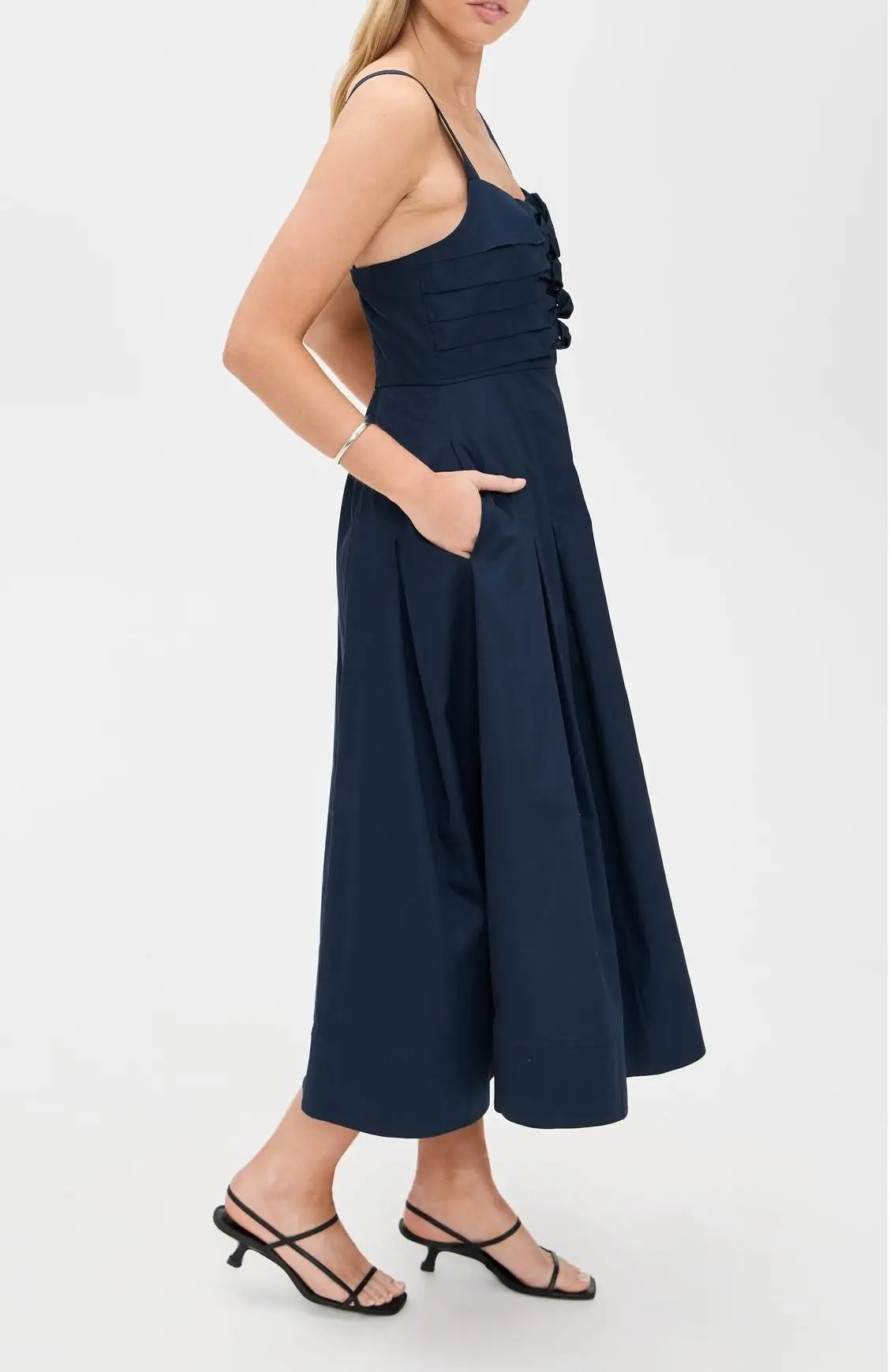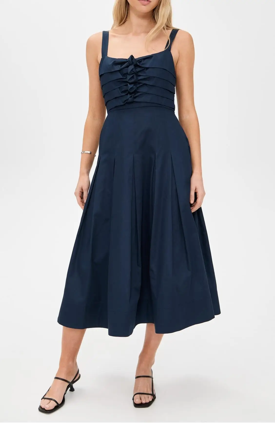 Custom Summer Fashion Casual Ladies Sexy A-Line Dresses Front Ruched Back Smocking Elegant Midi Slip Corset Dress for Women