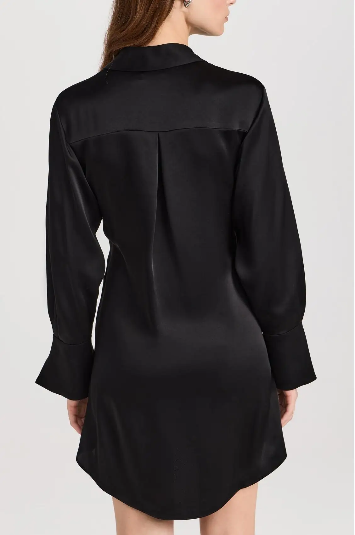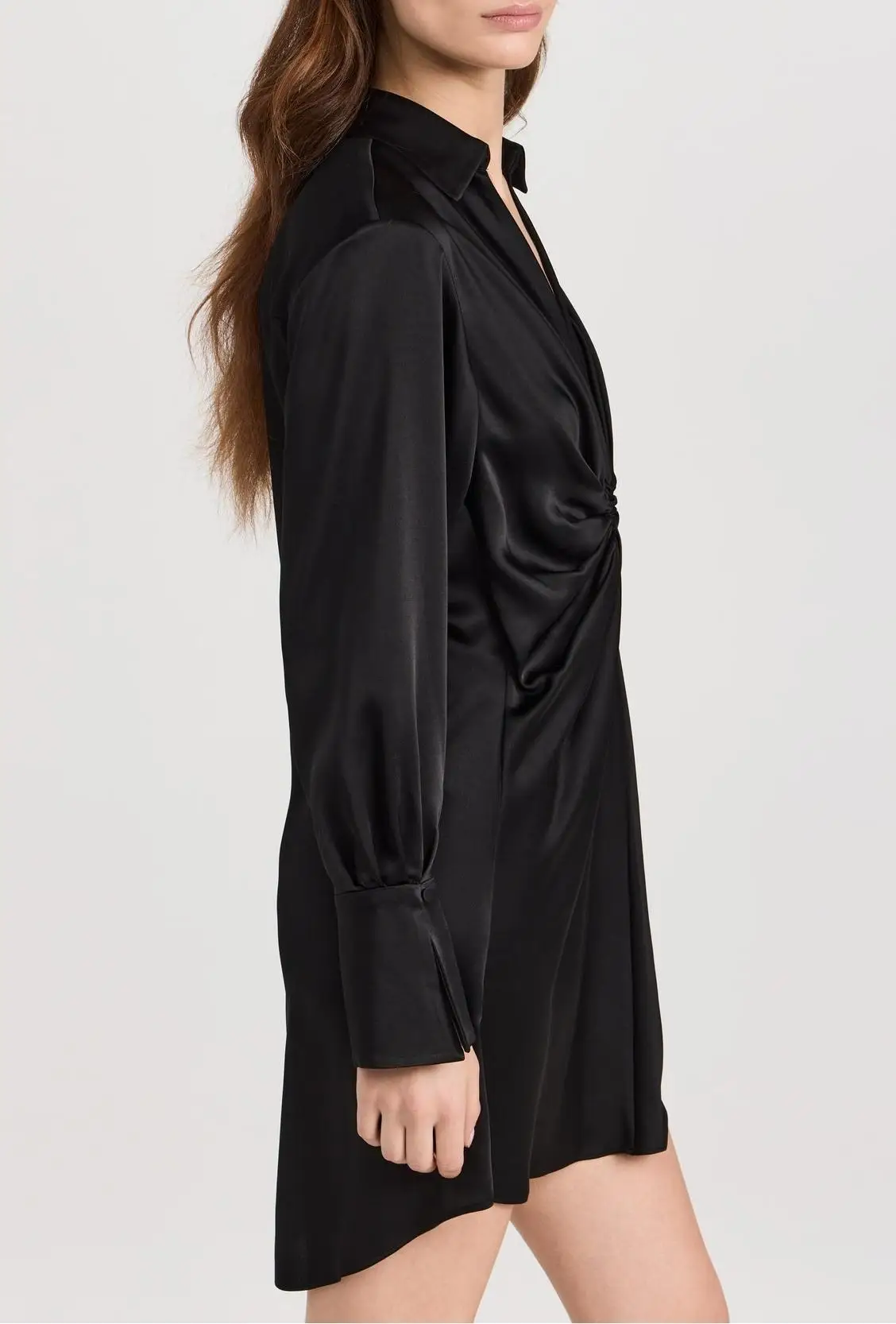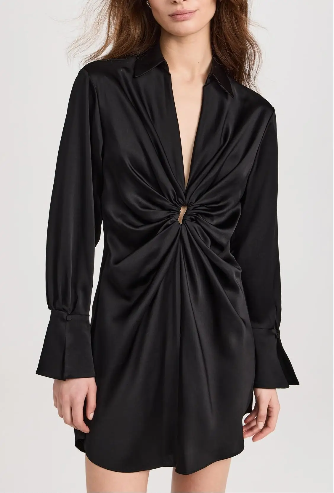 Custom Brand Women's Elegant Shirt Dress Black Satin V-Neck Formal Manufactured Clothing Casual Office Dresses for Autumn