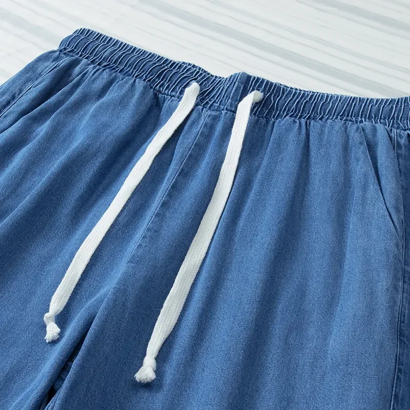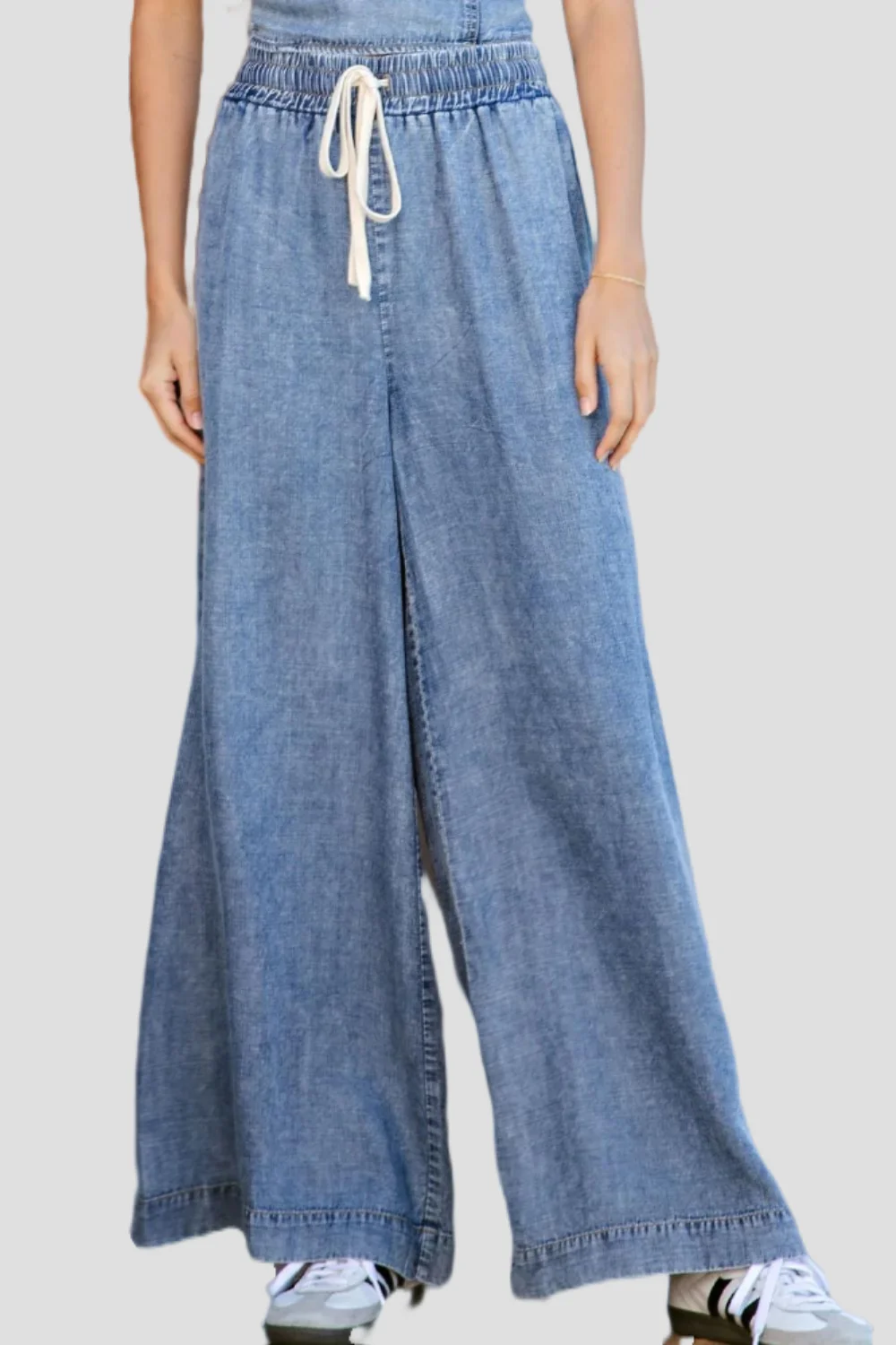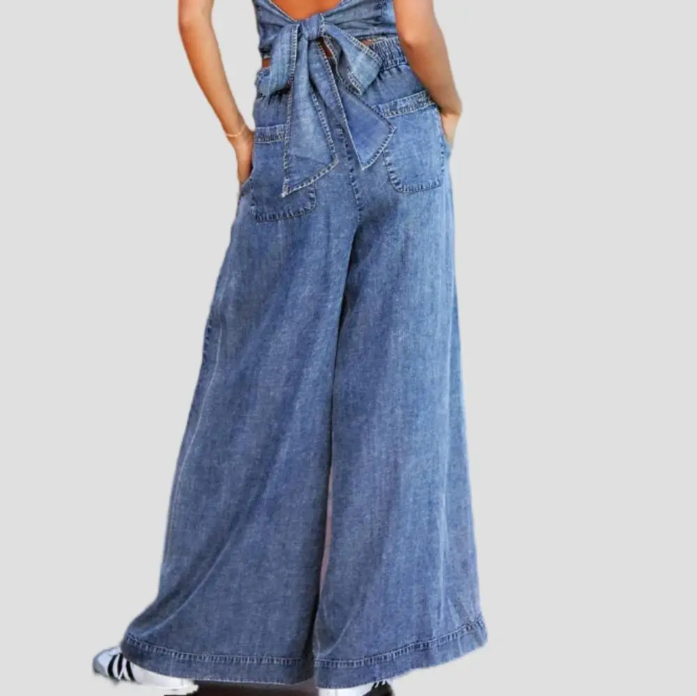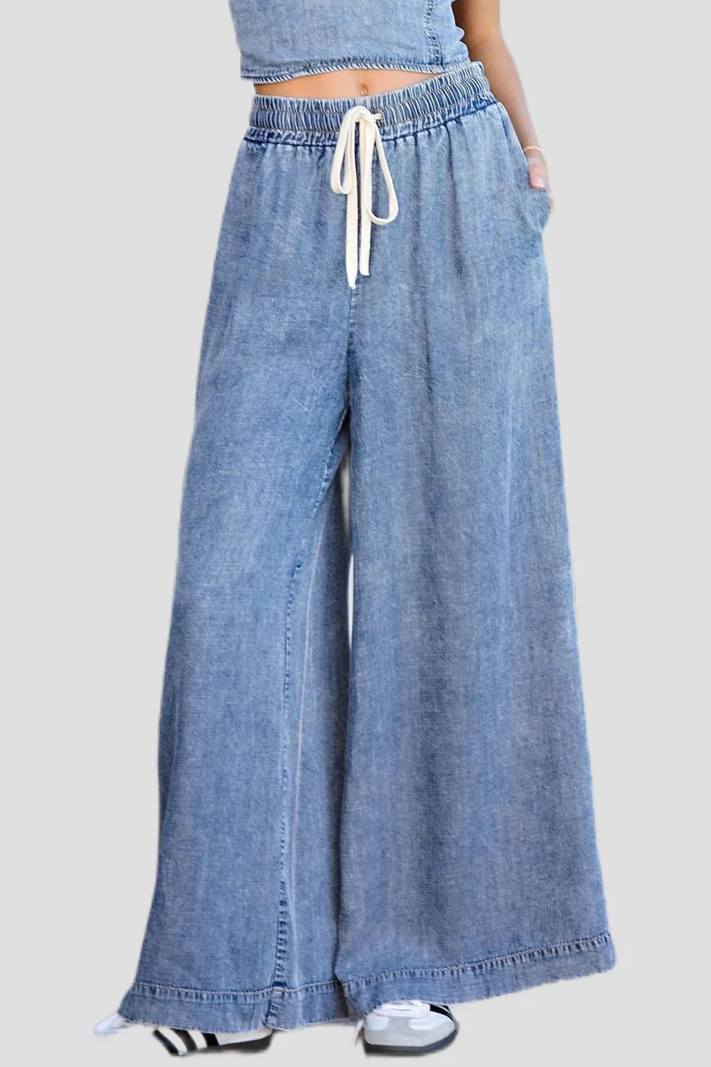OEM Trendy Women's Denim Pants Oversized Wide Leg Mid Waist Drawstring Casual Streetwear Blue Jeans Looser Trousers
