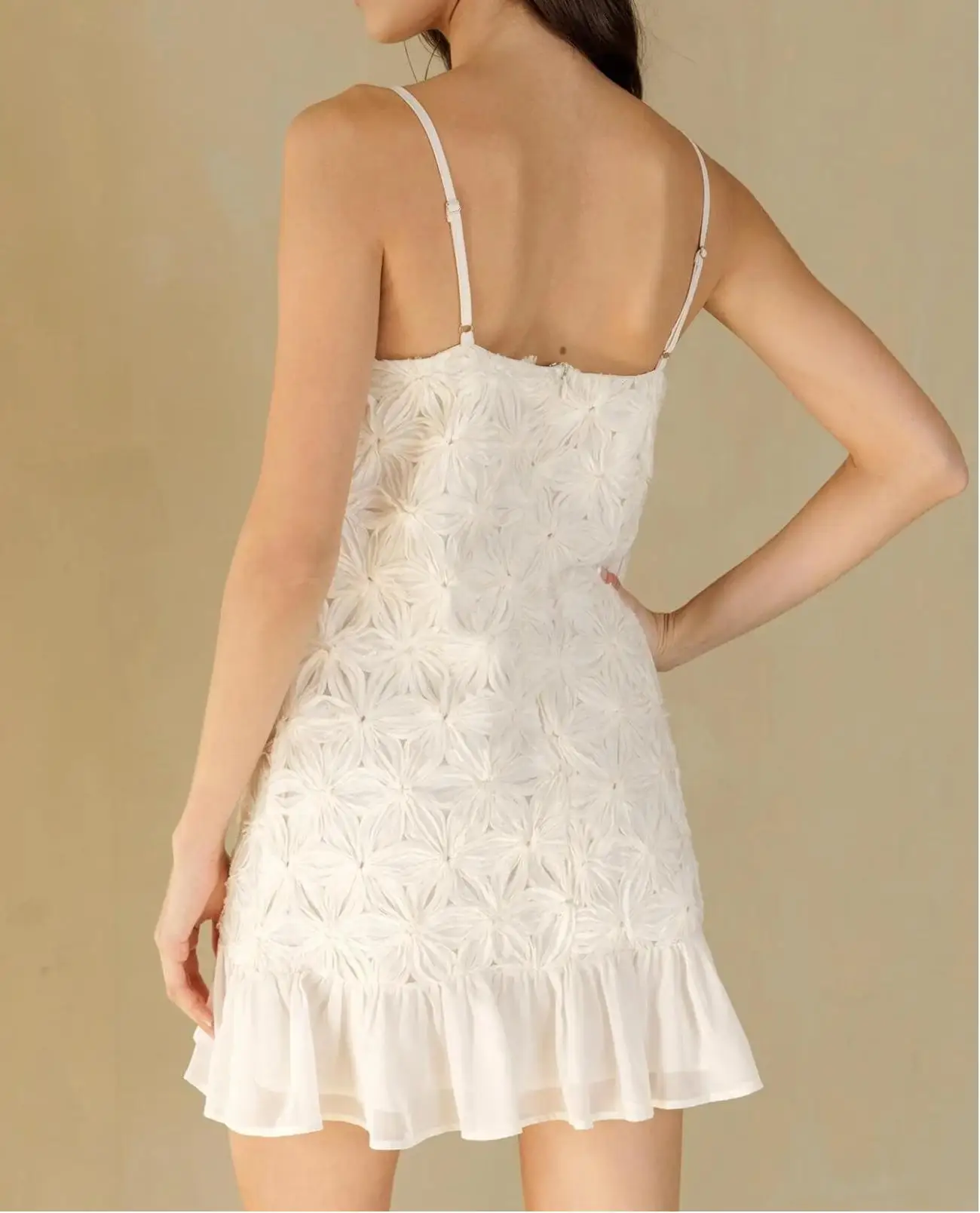 Customized Women Casual Dresses Fashion Elegant 3D Lace Spaghetti slip Short Length Mini Summer Dresses