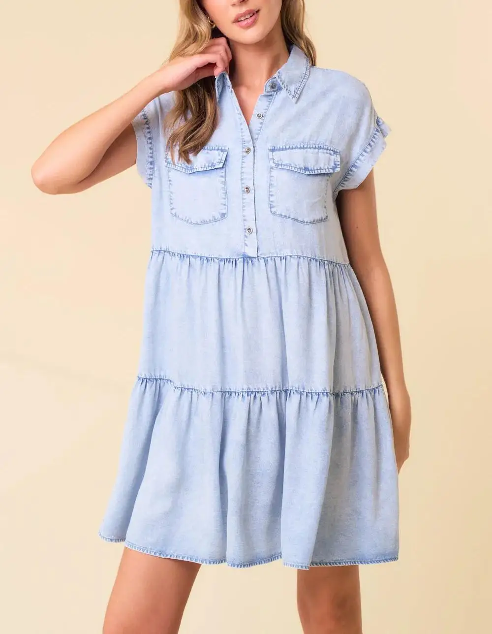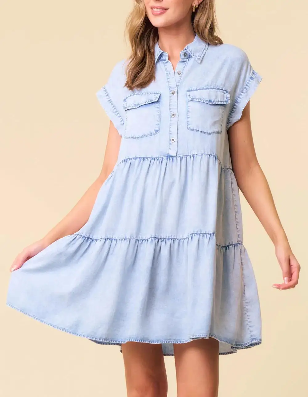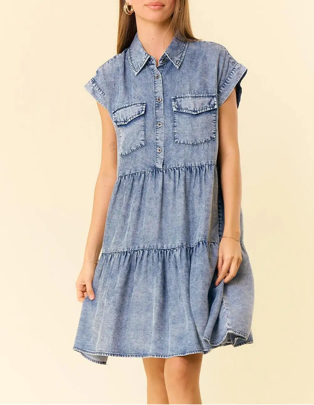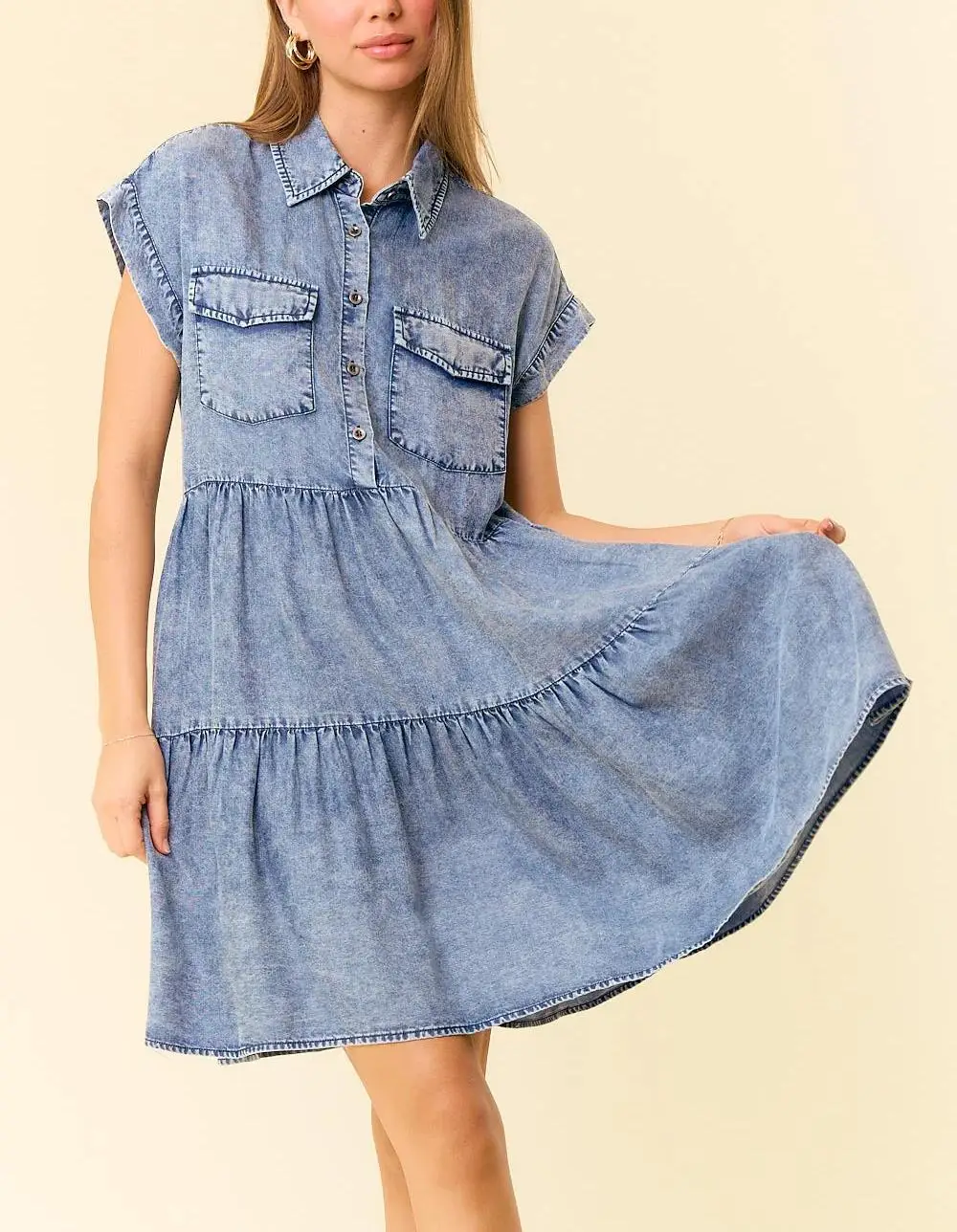 Custom Women's Denim Shirt Mini Dress Vintage Washed Color Elegant Temperament Women Clothing Summer Casual Jeans Dress Ladies