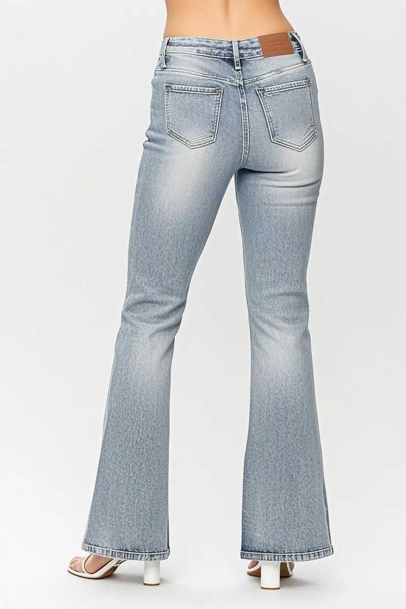 Custom Trendy Women's Jeans Pants Breathable Mineral Washed Bell Bottom Casual Gray Jeans Cargo Pants for Women
