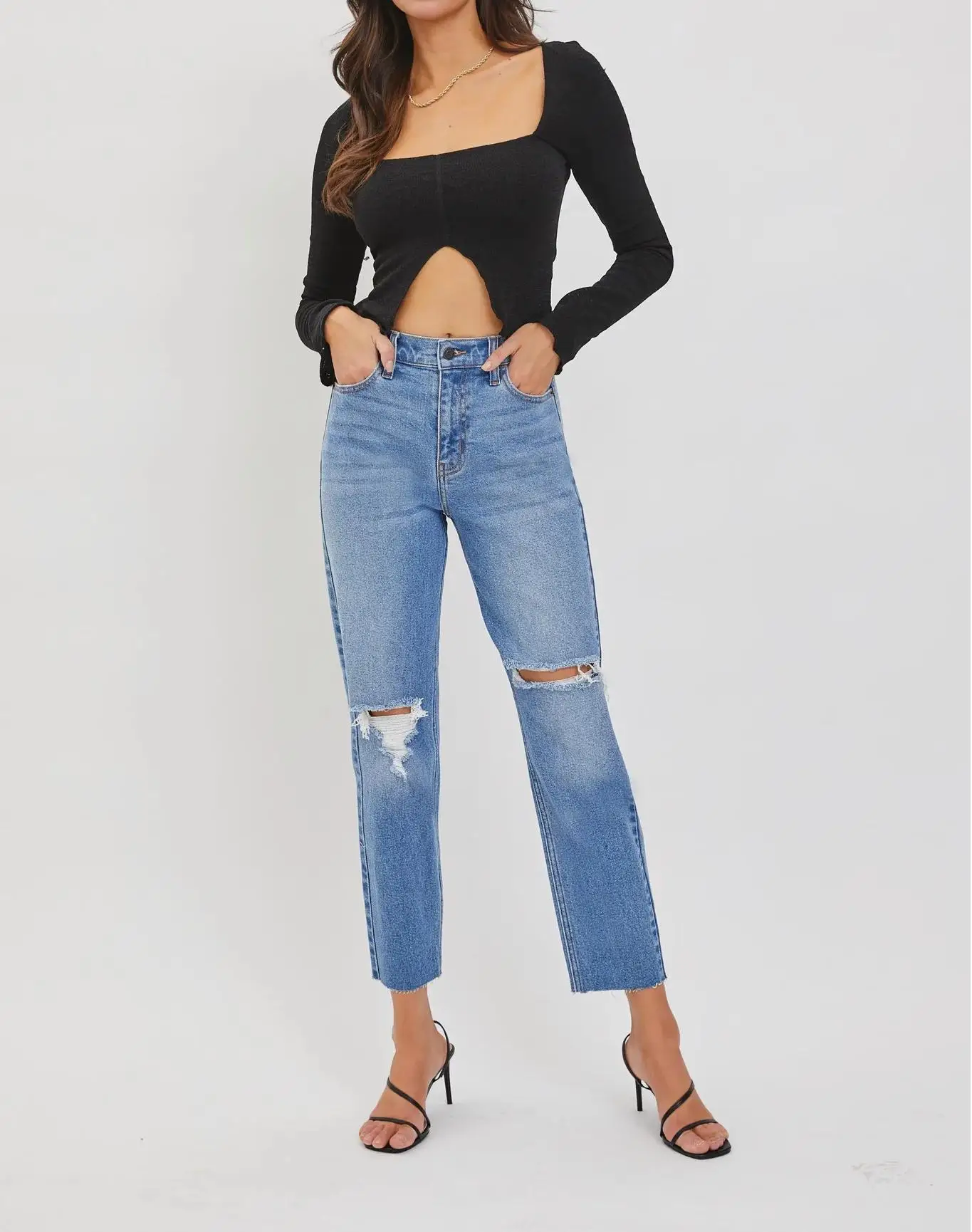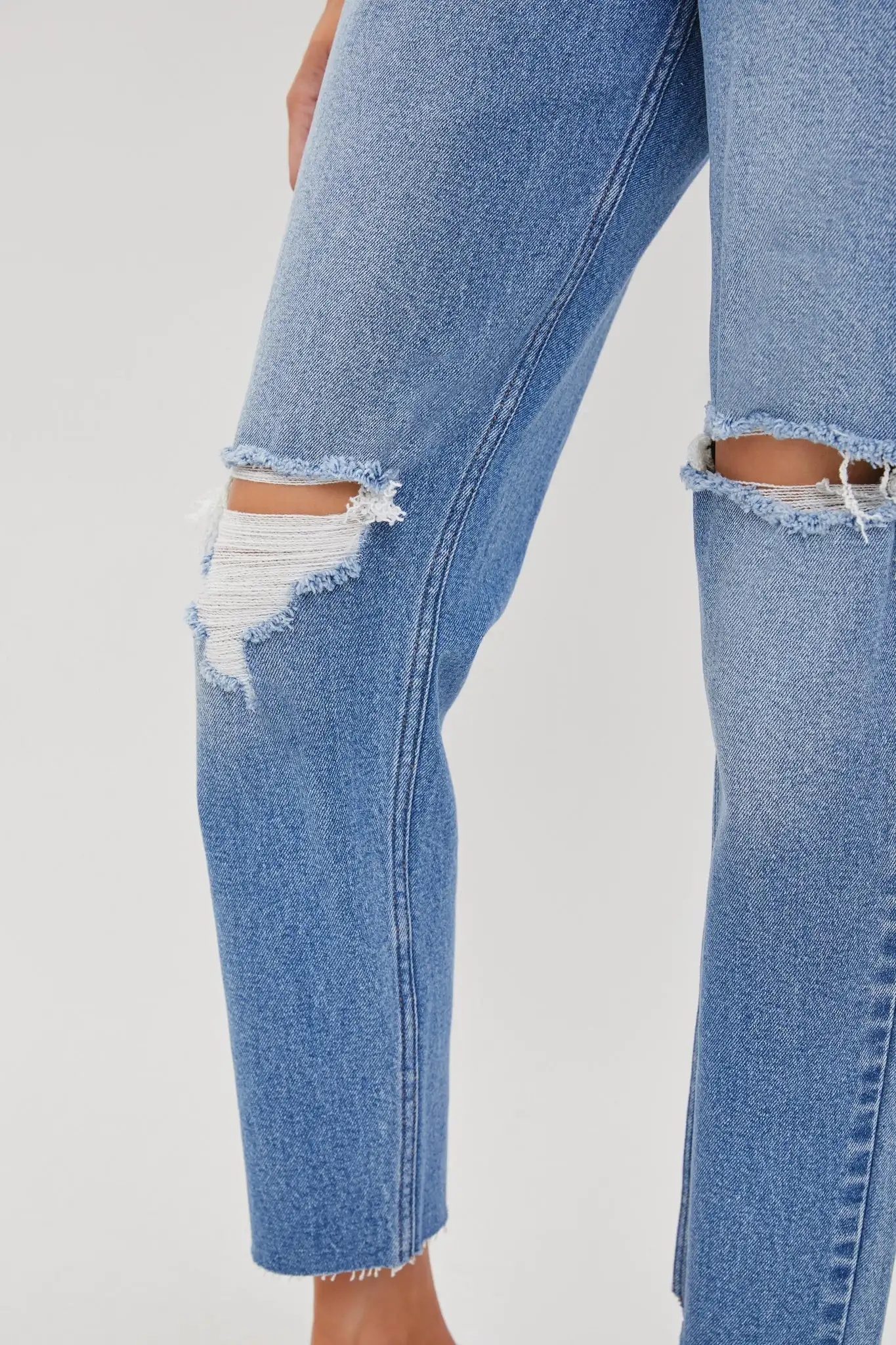 Custom Best Selling Women Jeans Mid Rise Elegant Regular Fit Breathable Ripped Mineral Washed Blue Ladies Jean Waist