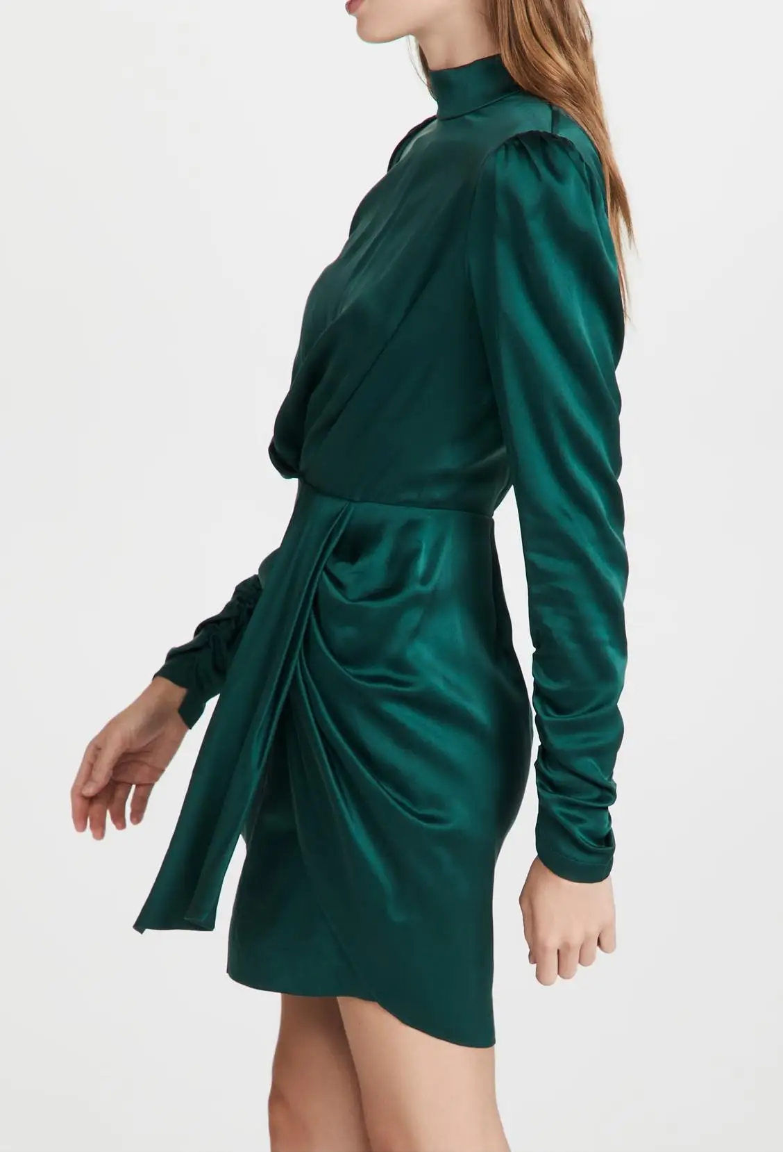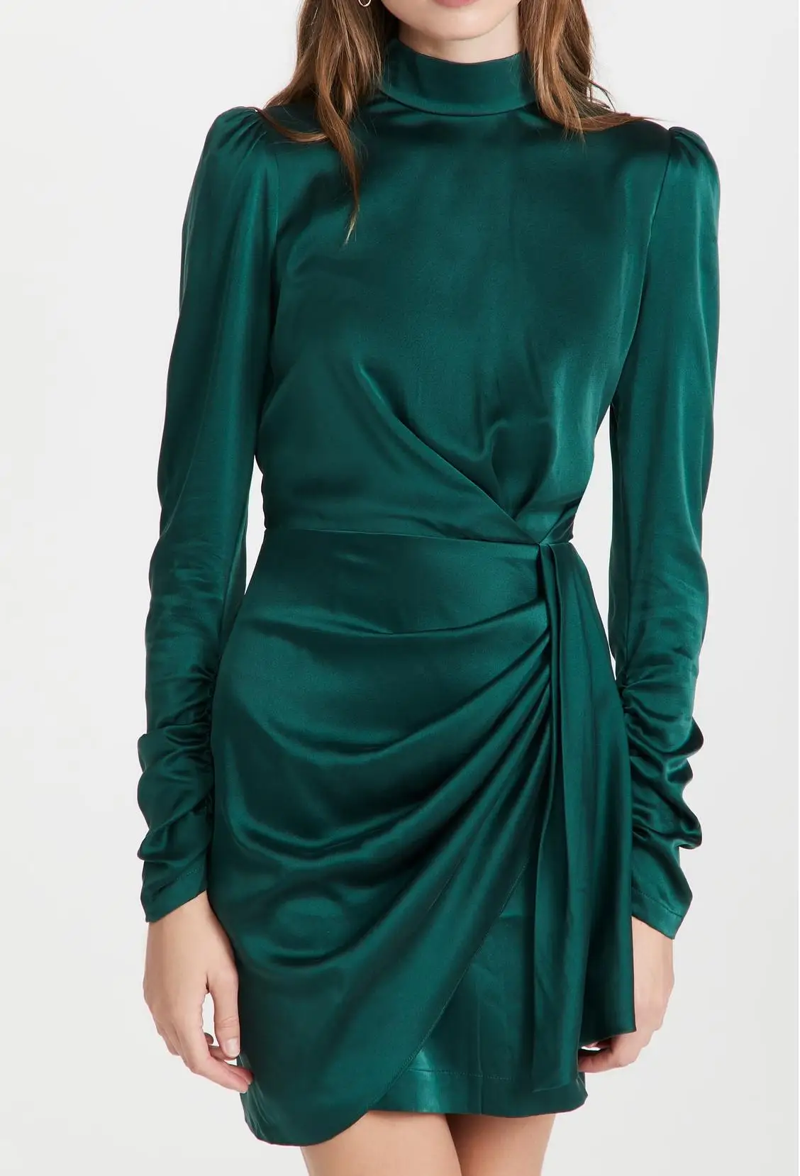 Custom Design Cloth Women's Elegant Formal Dress High Quality Satin Long Sleeves Ruched Bodycon Casual Office Dress Lady