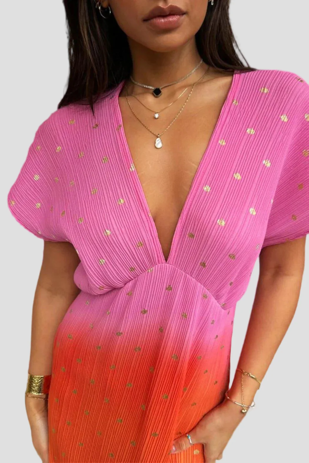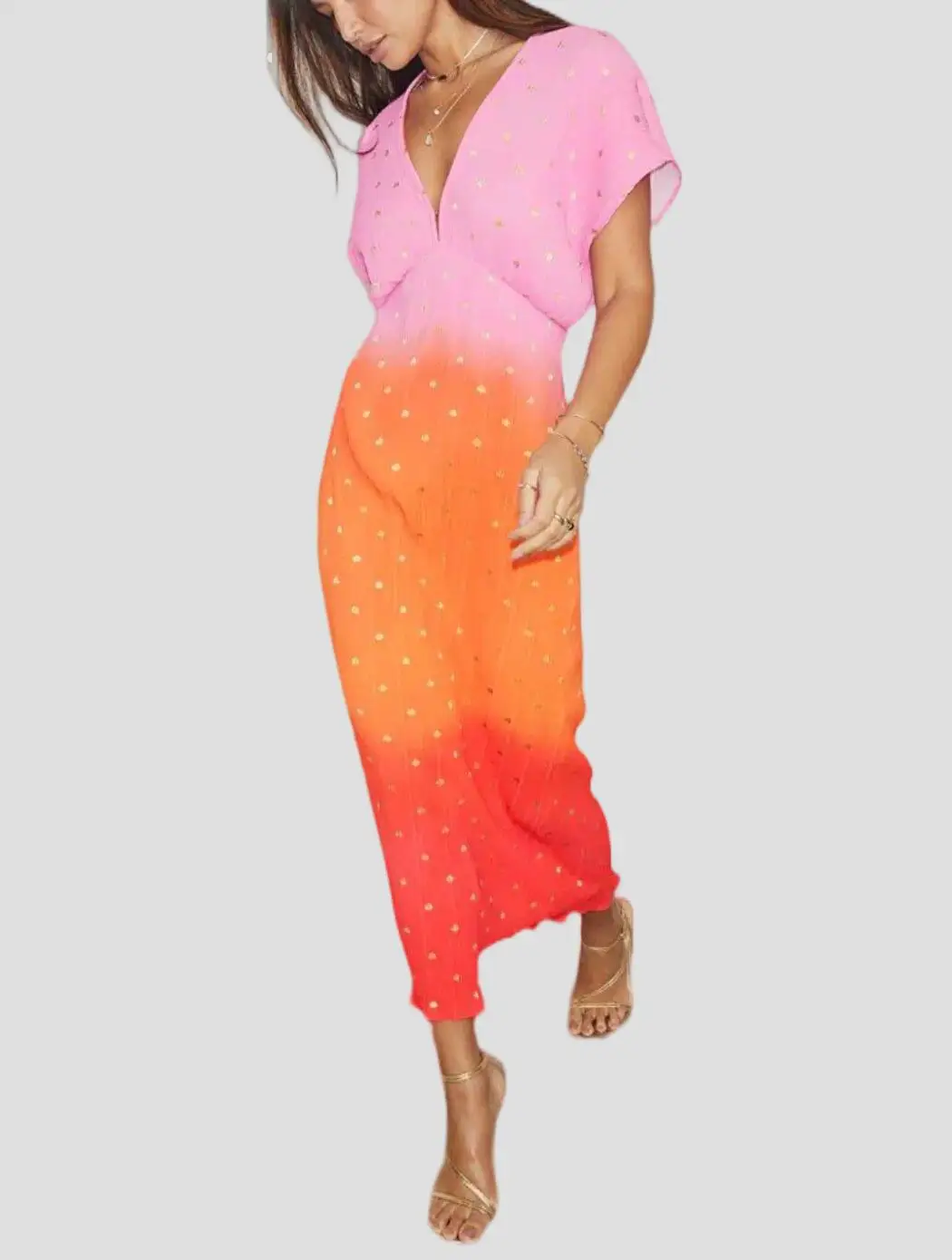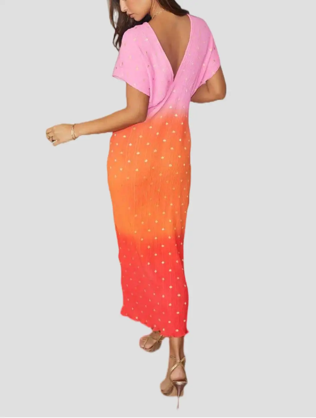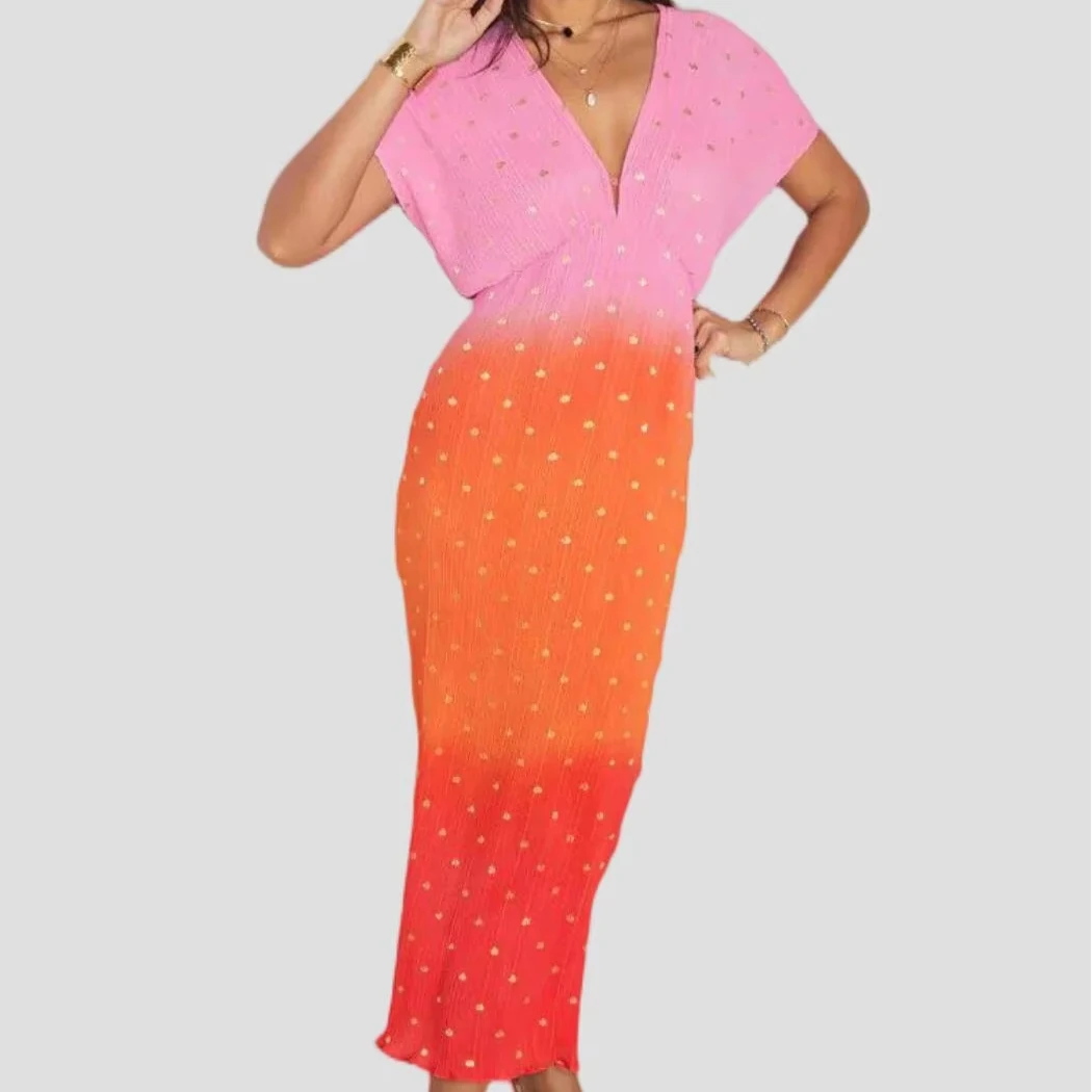 Custom Brand logo Women's Elegant Casual Dress Drop-Shoulder V-Neck Tie Dye Color Blocking Ladies Streetwear Club Party Dress