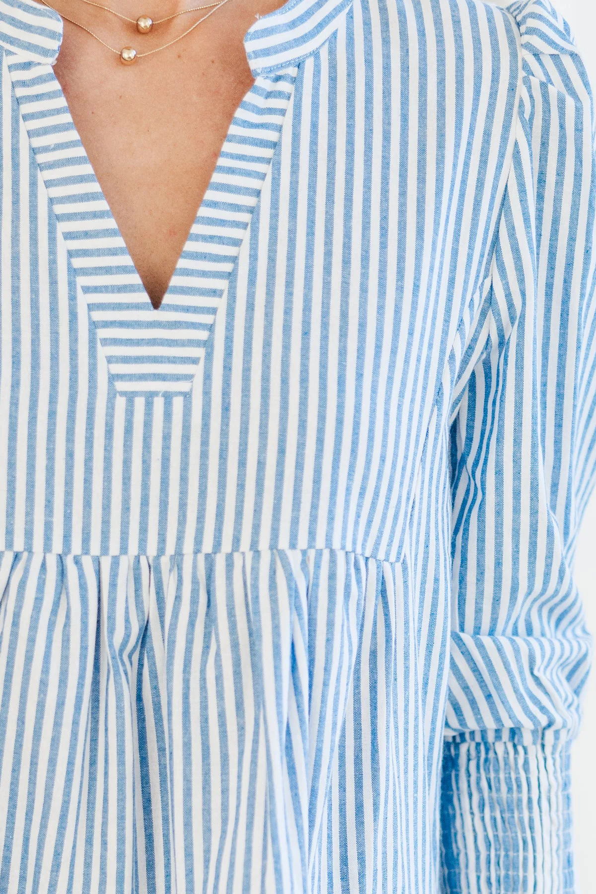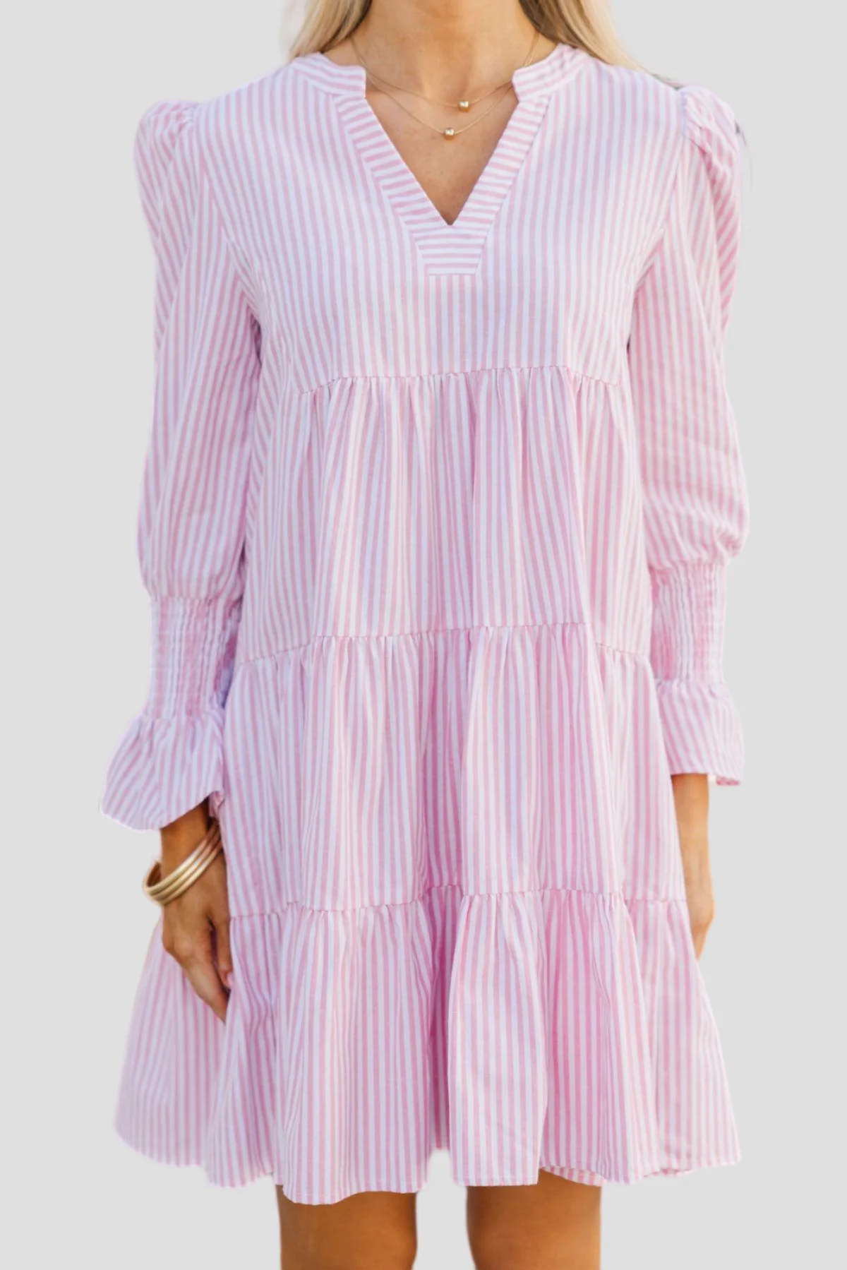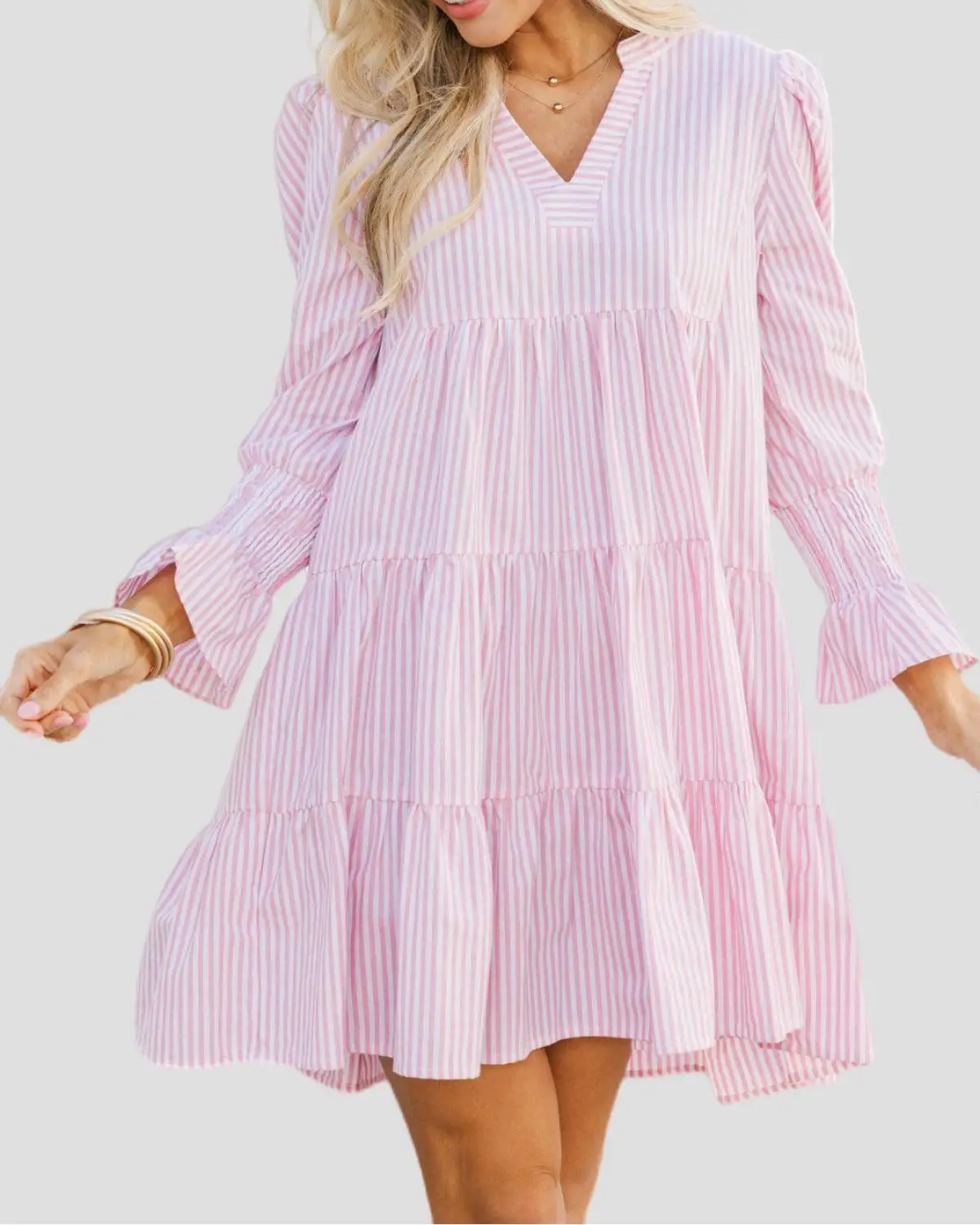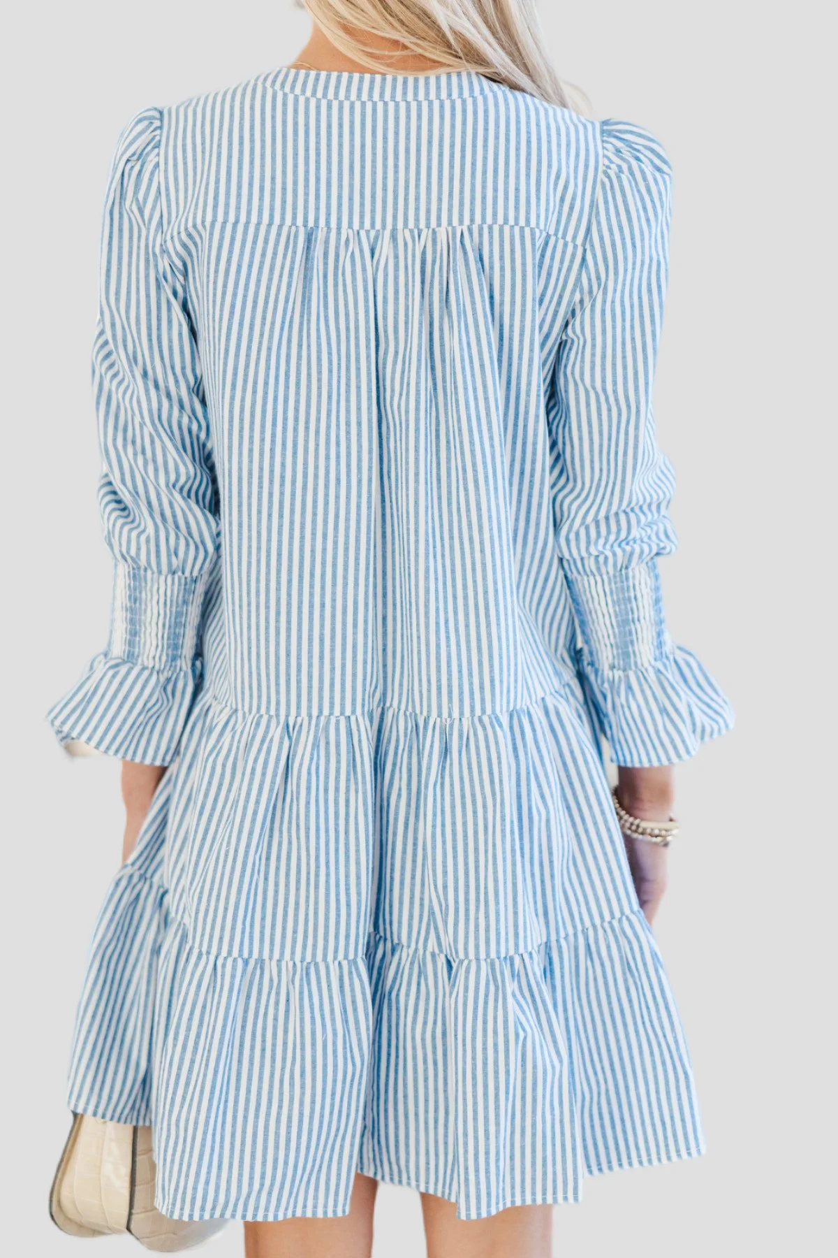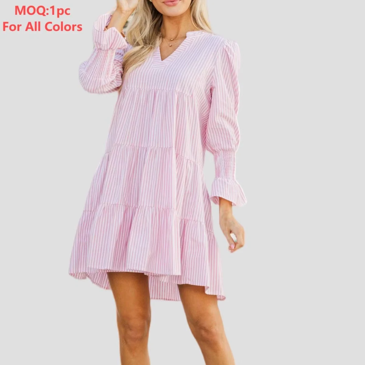 Wholesale Low MOQ Women's Casual Dress Striped Puff 3/4 Sleeve Eco-friendly Oversized Loose Fit Ladies Short Dress for Summer