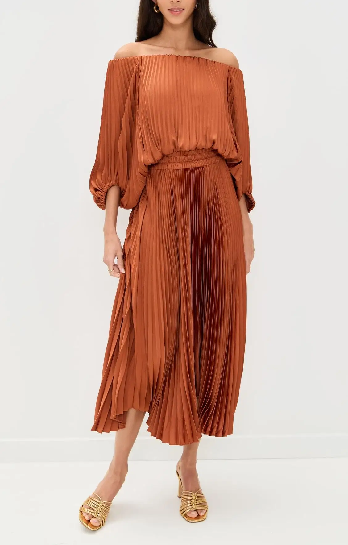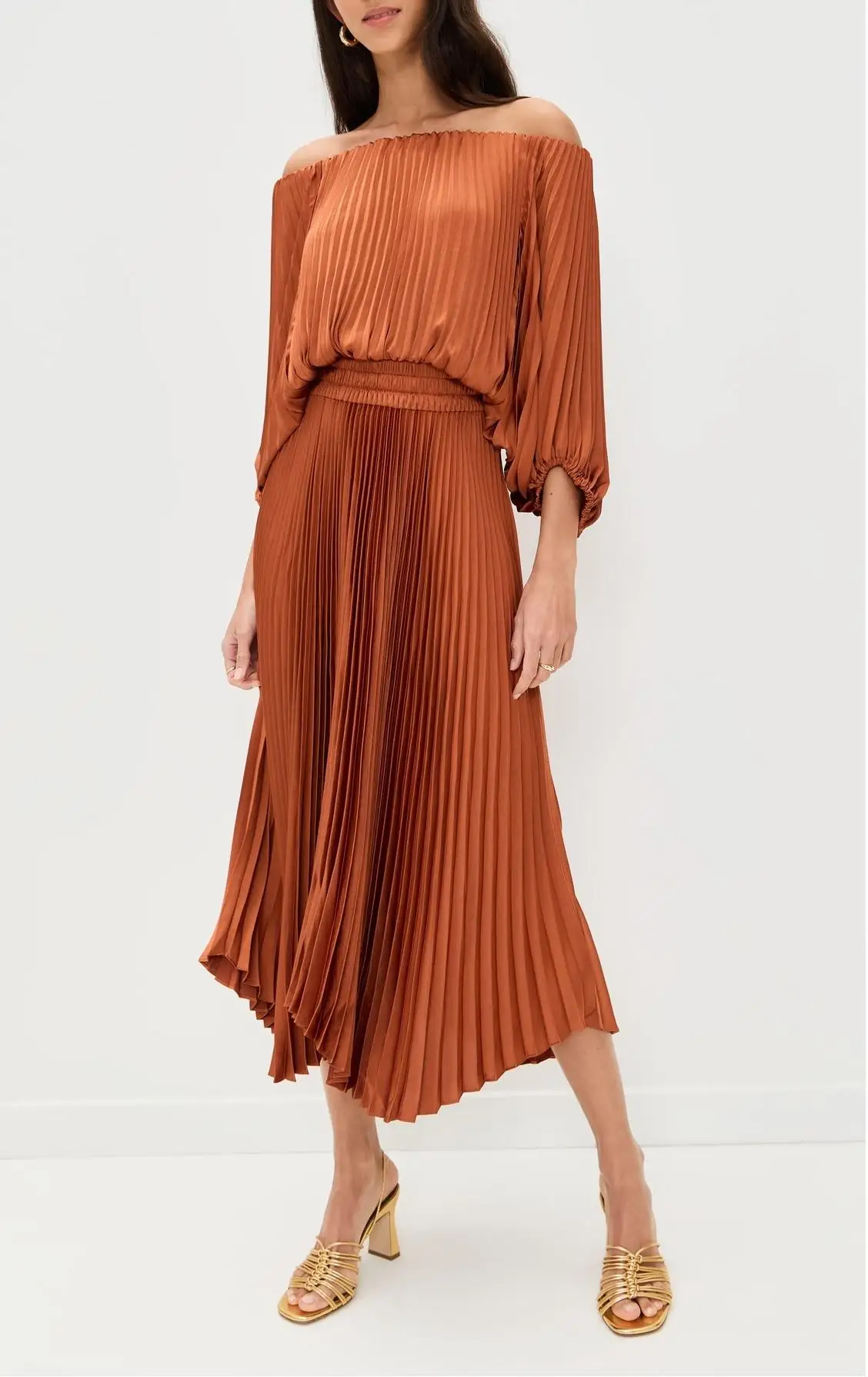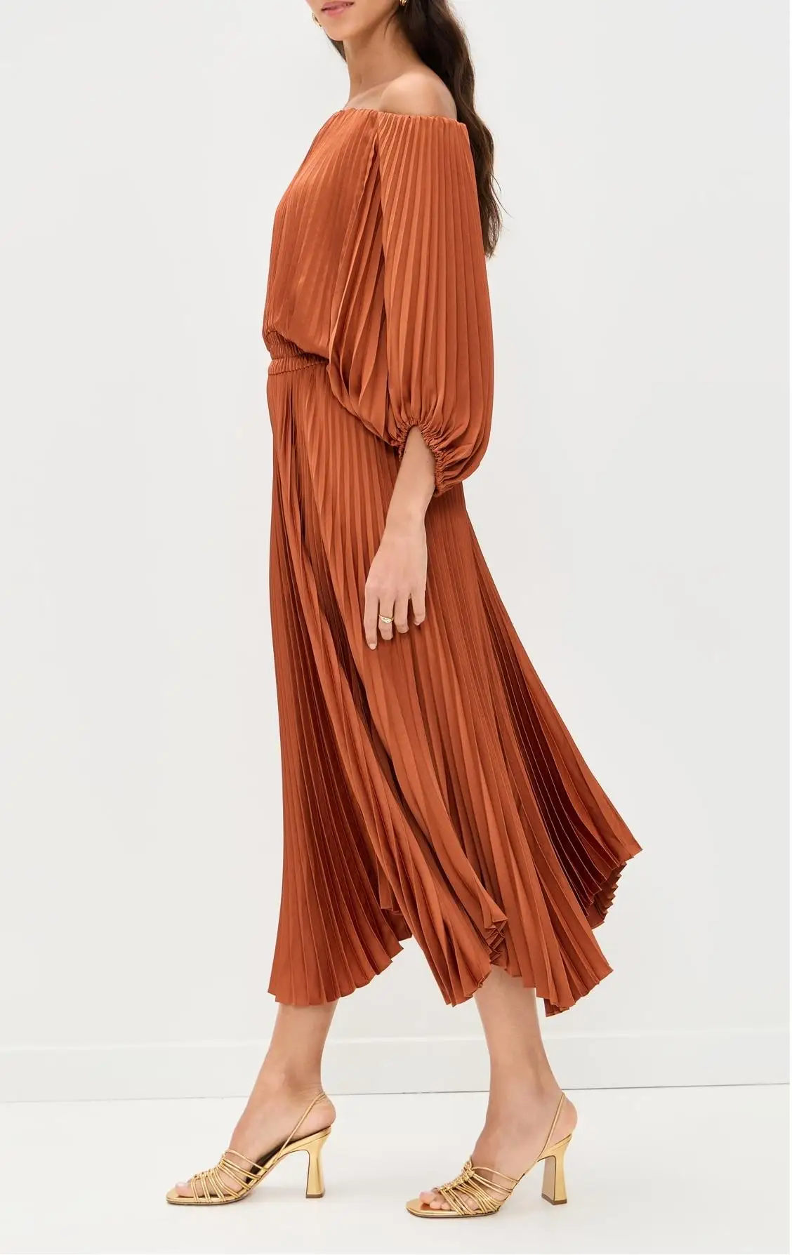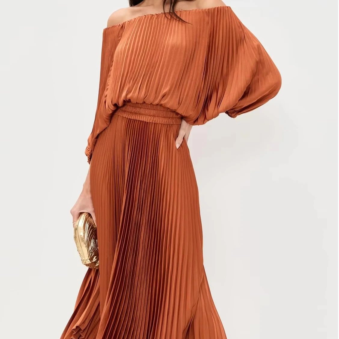Customized Private Label Women Pleated Corset Dress off Shoulder Mercerized Satin Midi Length Casual Long Sleeve Prom Corset