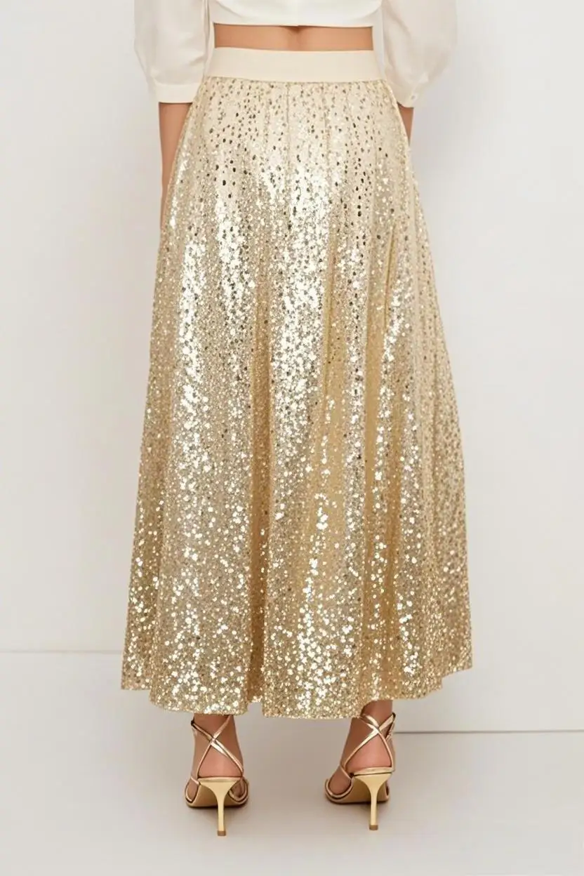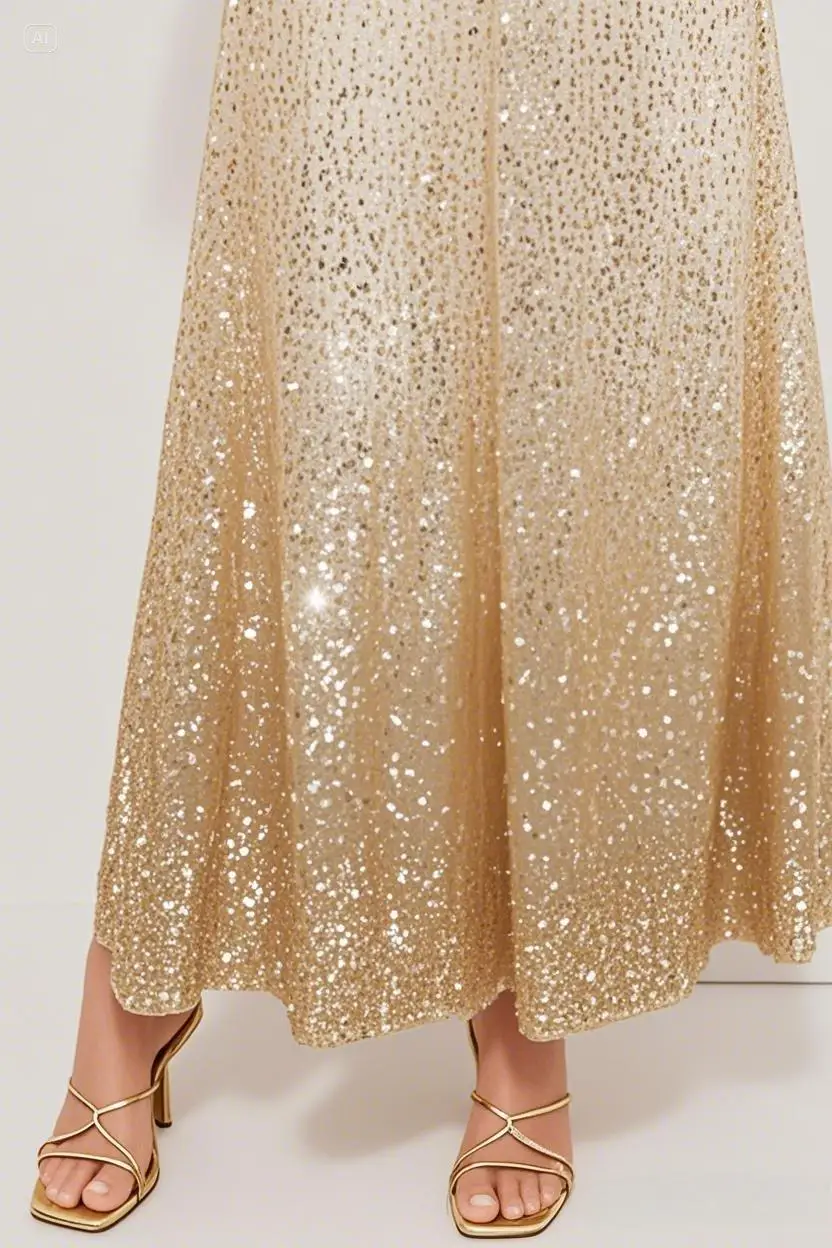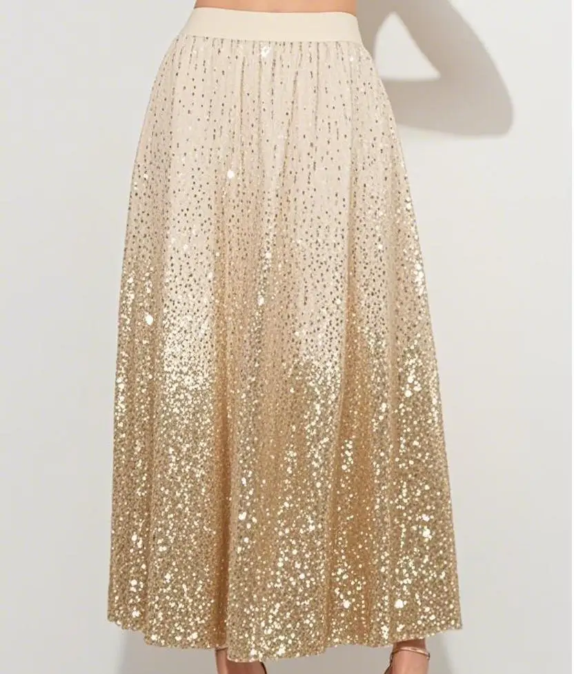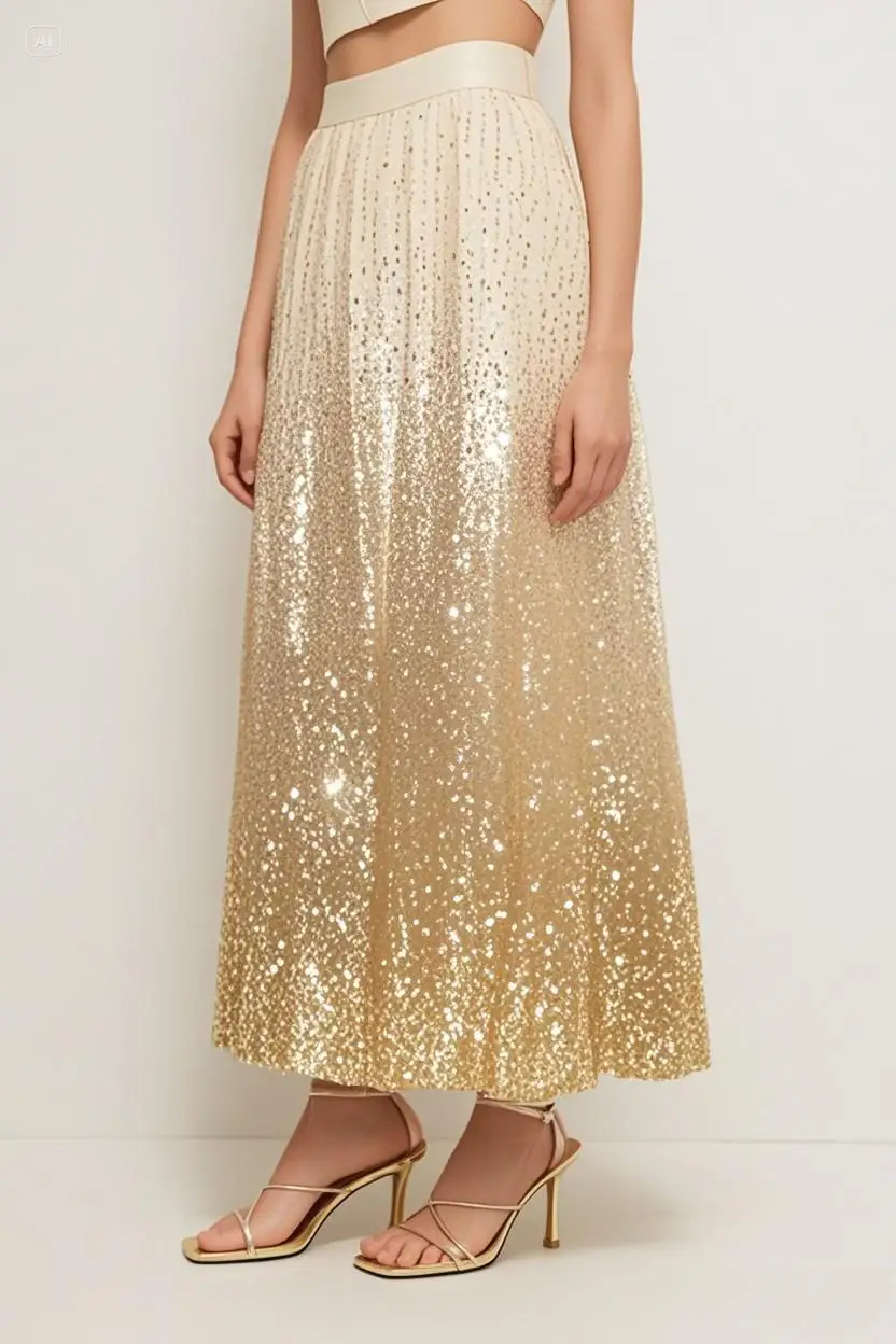 High Quality Women's Gradient Casual Sequin Tulle Maxi Skirt Hot Sale High Waisted with Natural Waistline for Summer