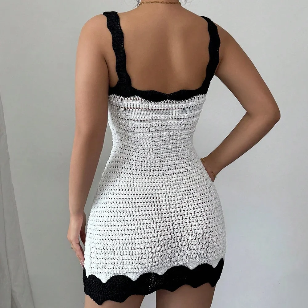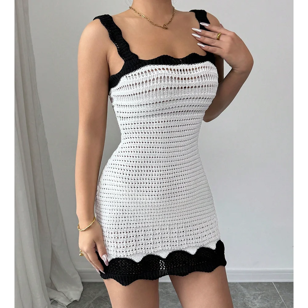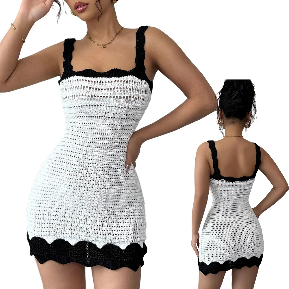 Summer New Arrival Casual Breathable Bodycon Pullover Mini Dress Halter Neck Thin Slim Suspender Knitted Simple Sleeveless